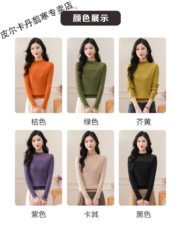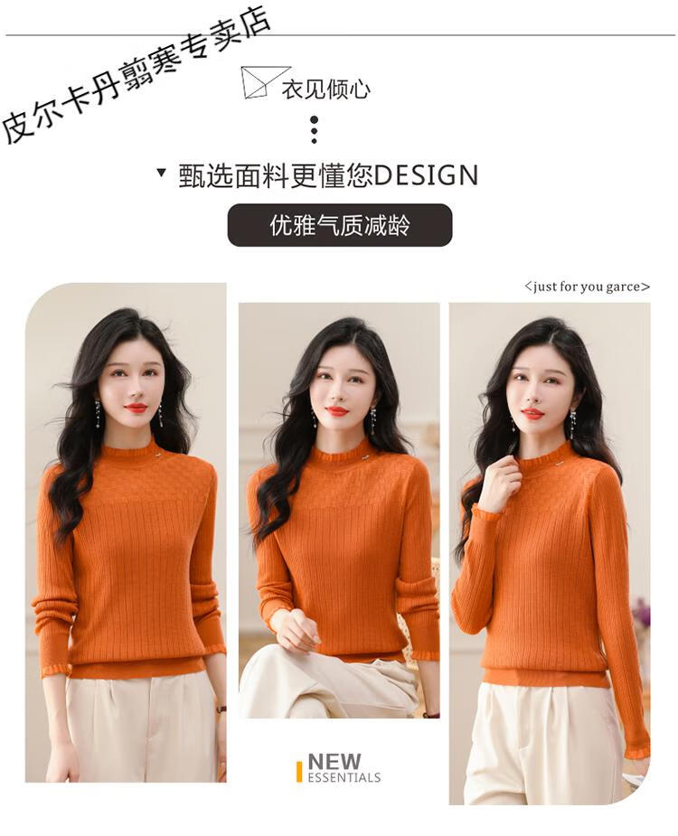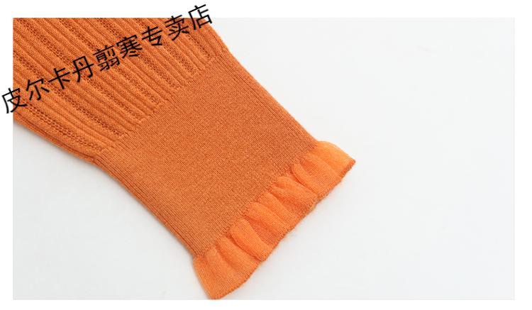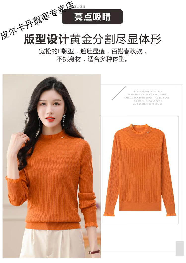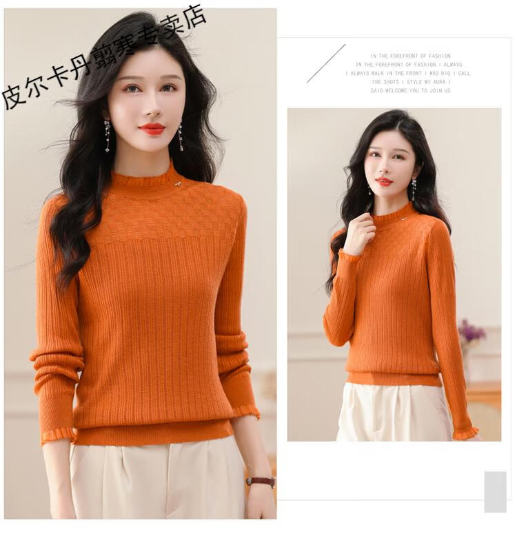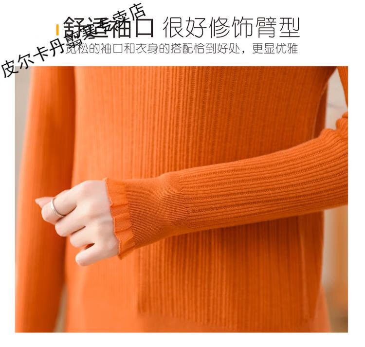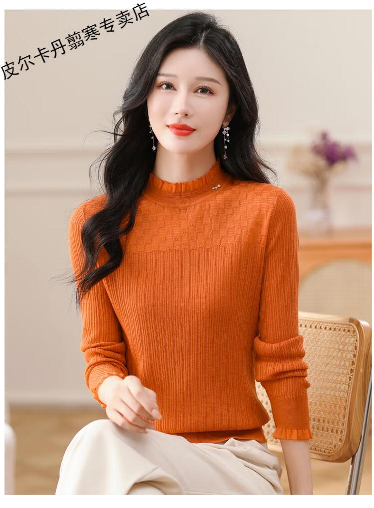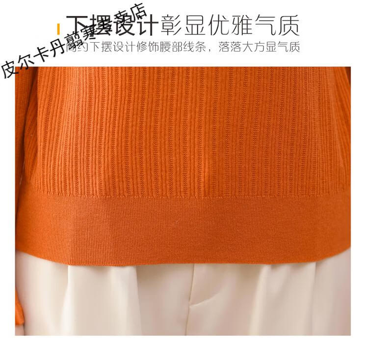 Pierre Cardin lace half turtleneck knitted bottoming sheep | Sweater women's autumn and winter new long-sleeved loose thin knitted sweater Orange S