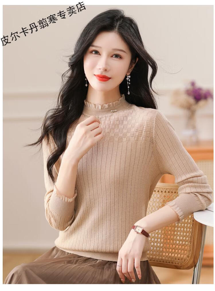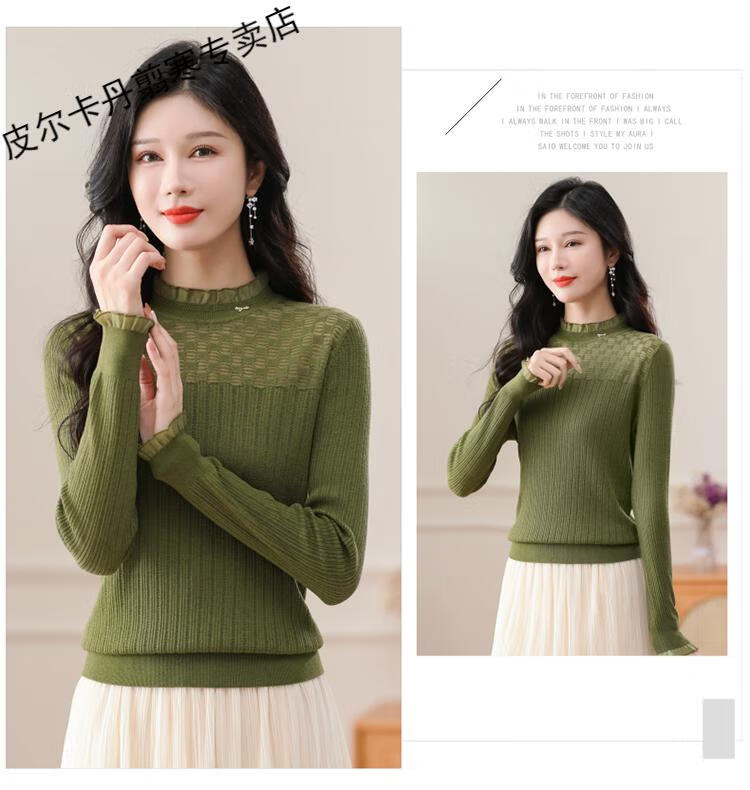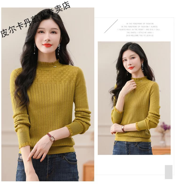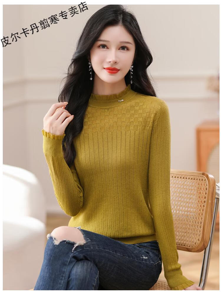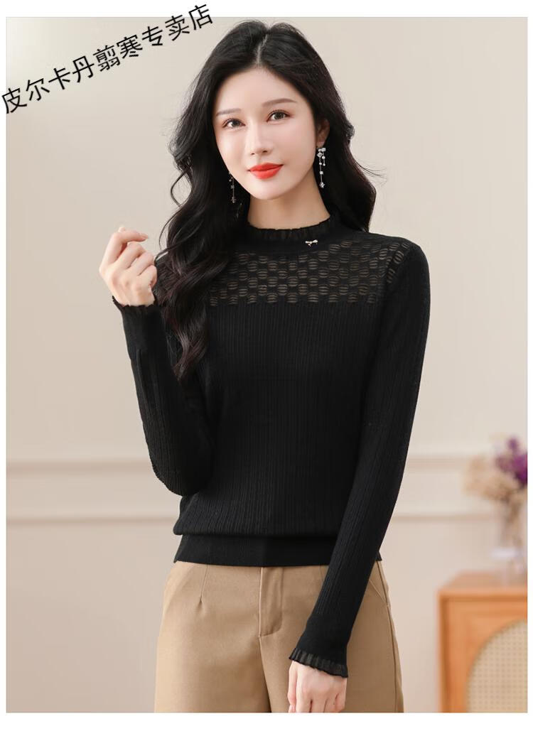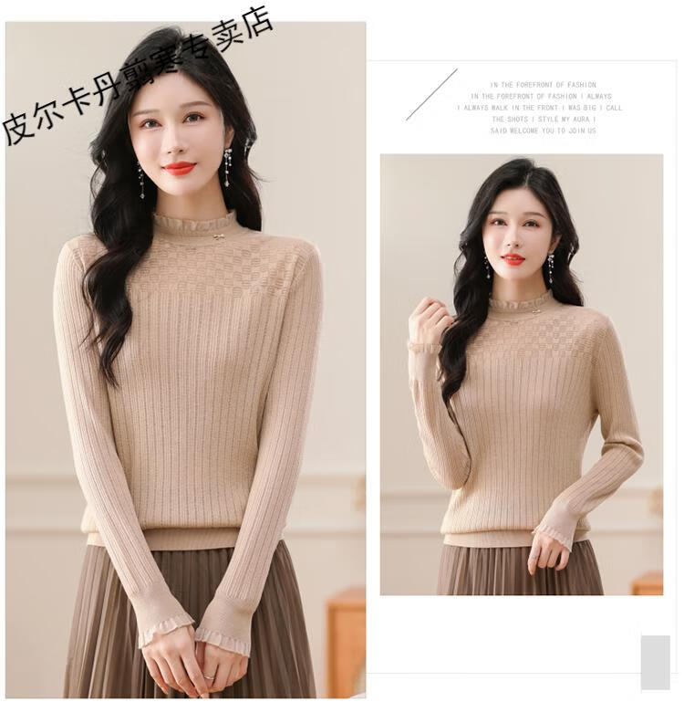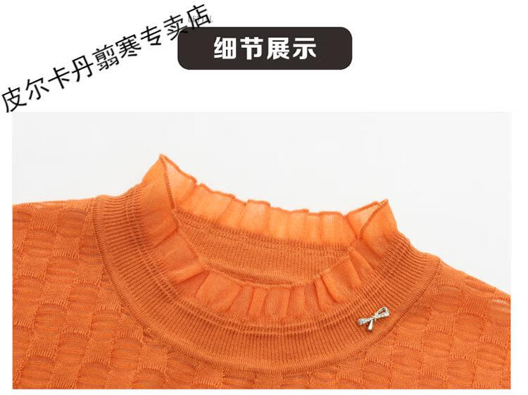Pierre Cardin lace half turtleneck knitted bottoming sheep | Sweater women's autumn and winter new long-sleeved loose thin knitted sweater Orange S