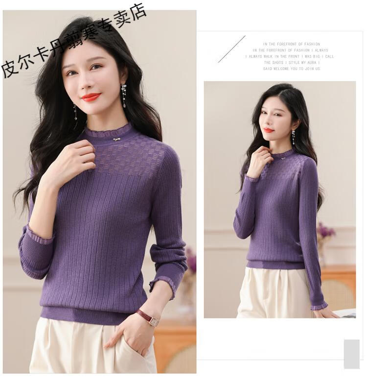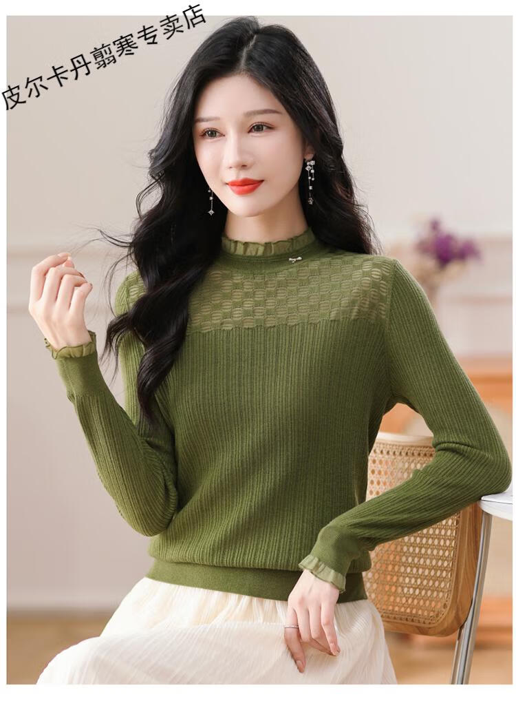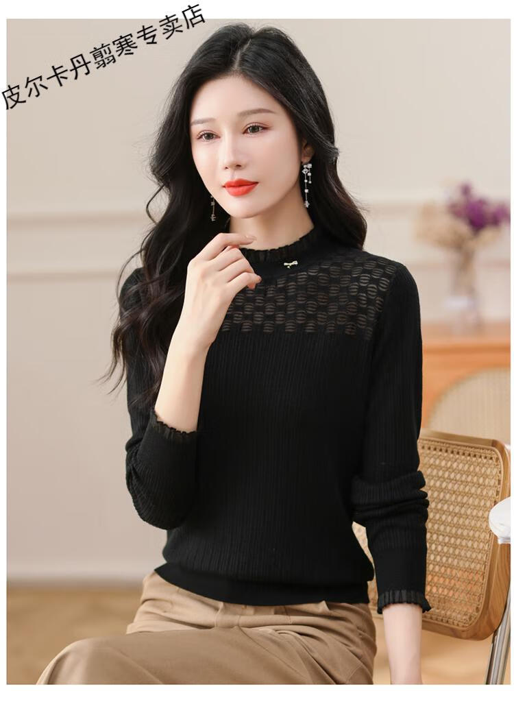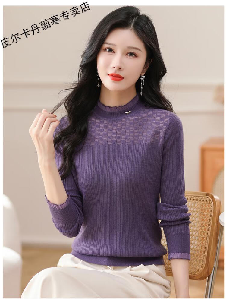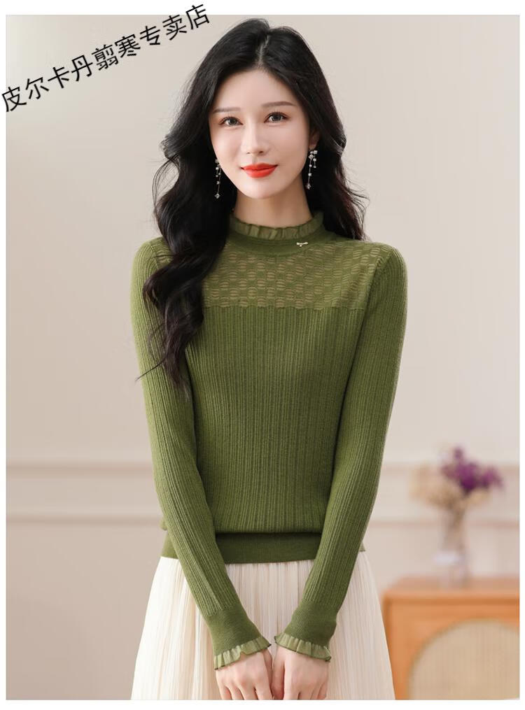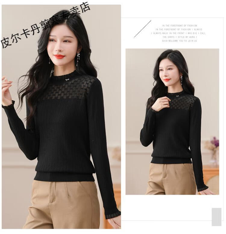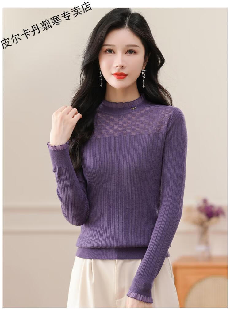 Pierre Cardin lace half turtleneck knitted bottoming sheep | Sweater women's autumn and winter new long-sleeved loose thin knitted sweater Orange S