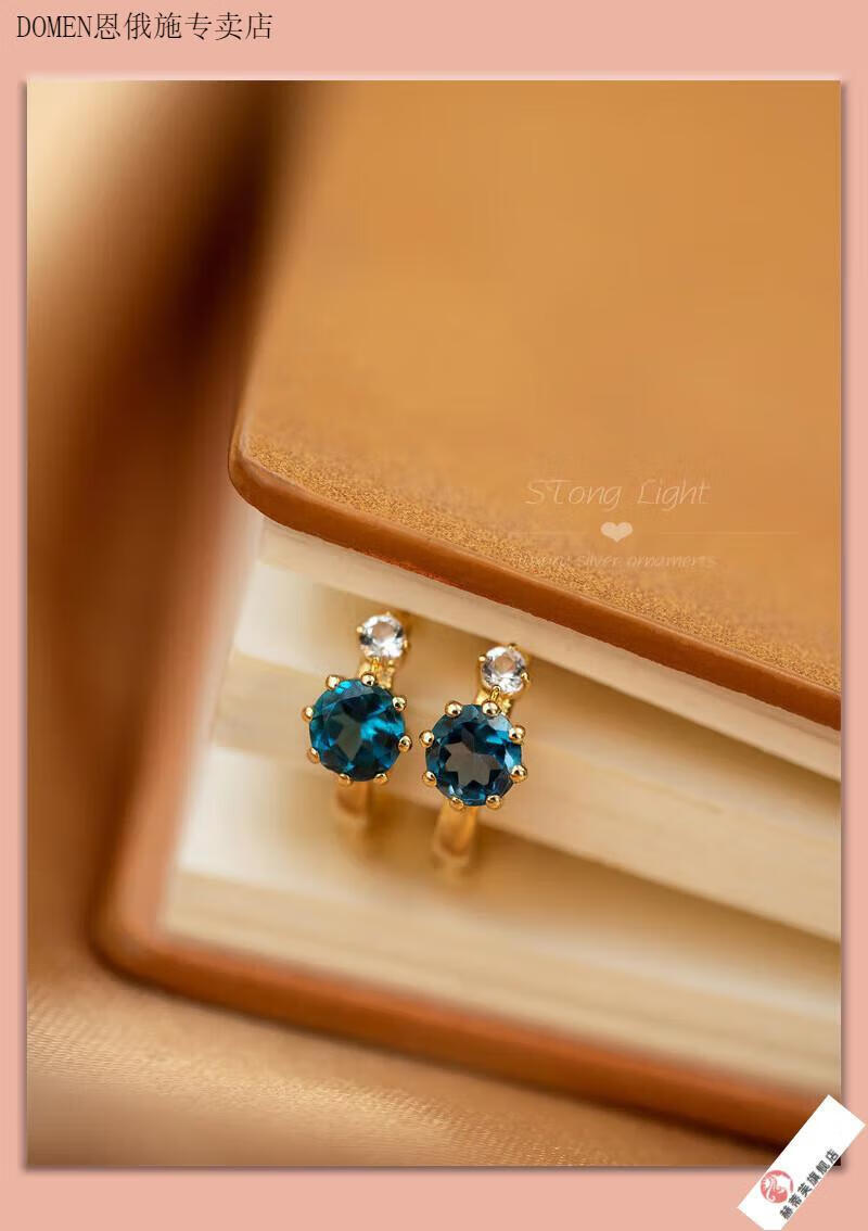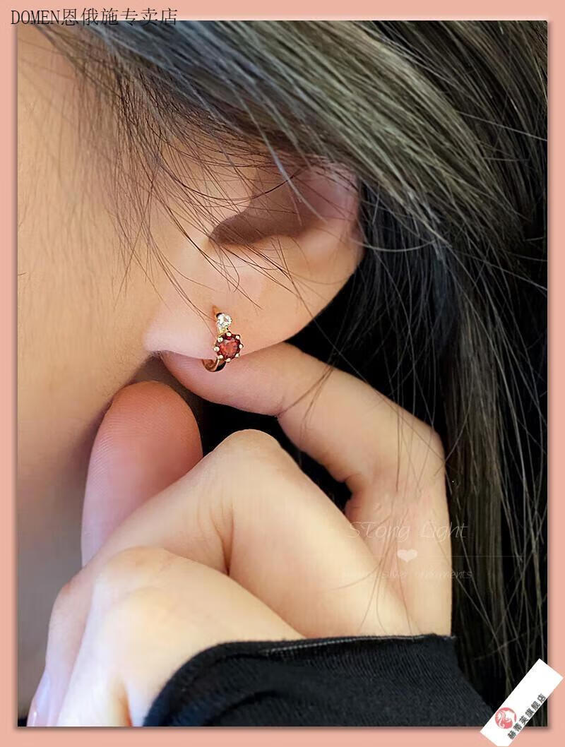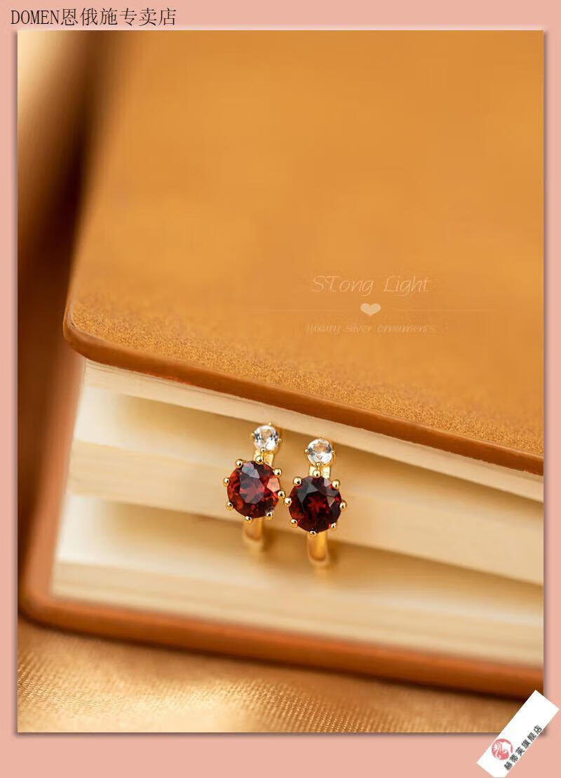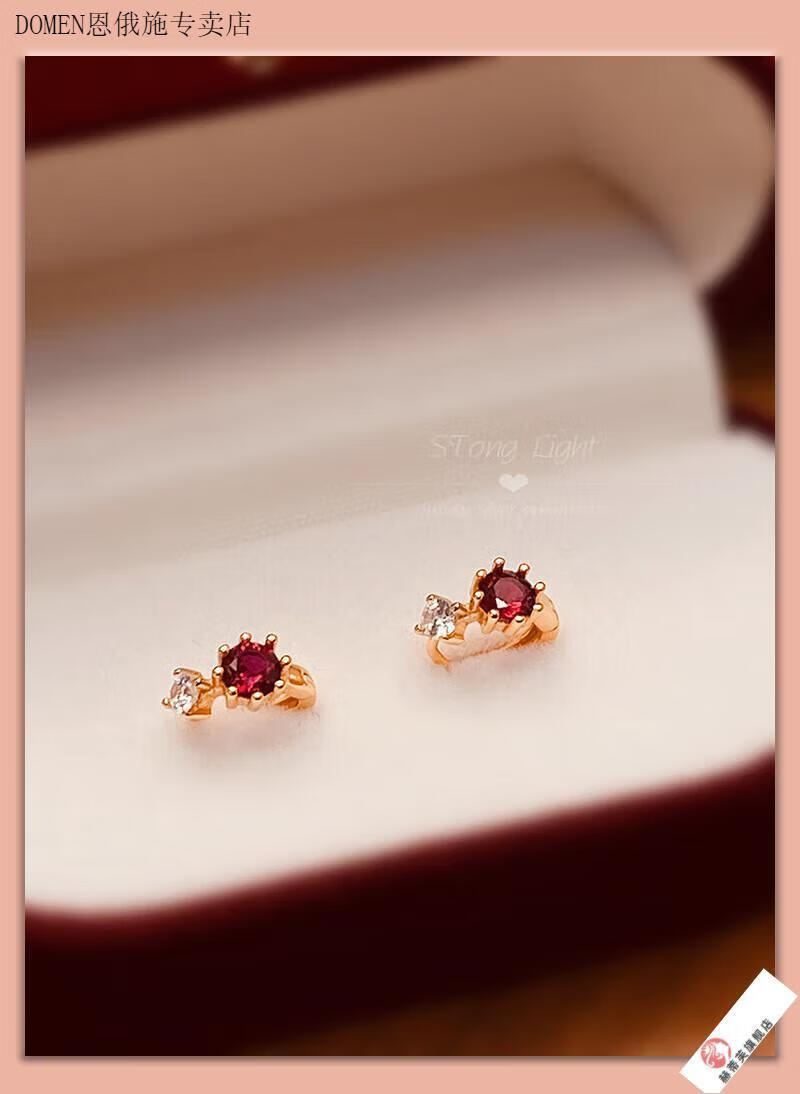 DOMEN Old Phoenix Gold Store Blue Topaz Aquamarine Plated 18K Gold Planet Earrings Earrings Retro Pomegranate Ruby Pomegranate Red (Gold)