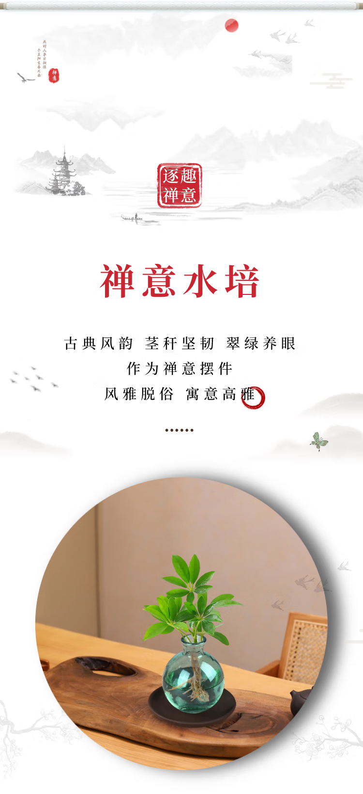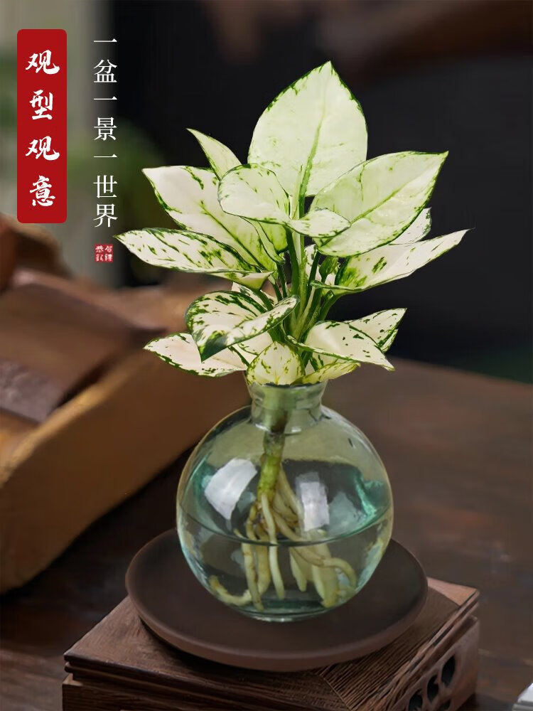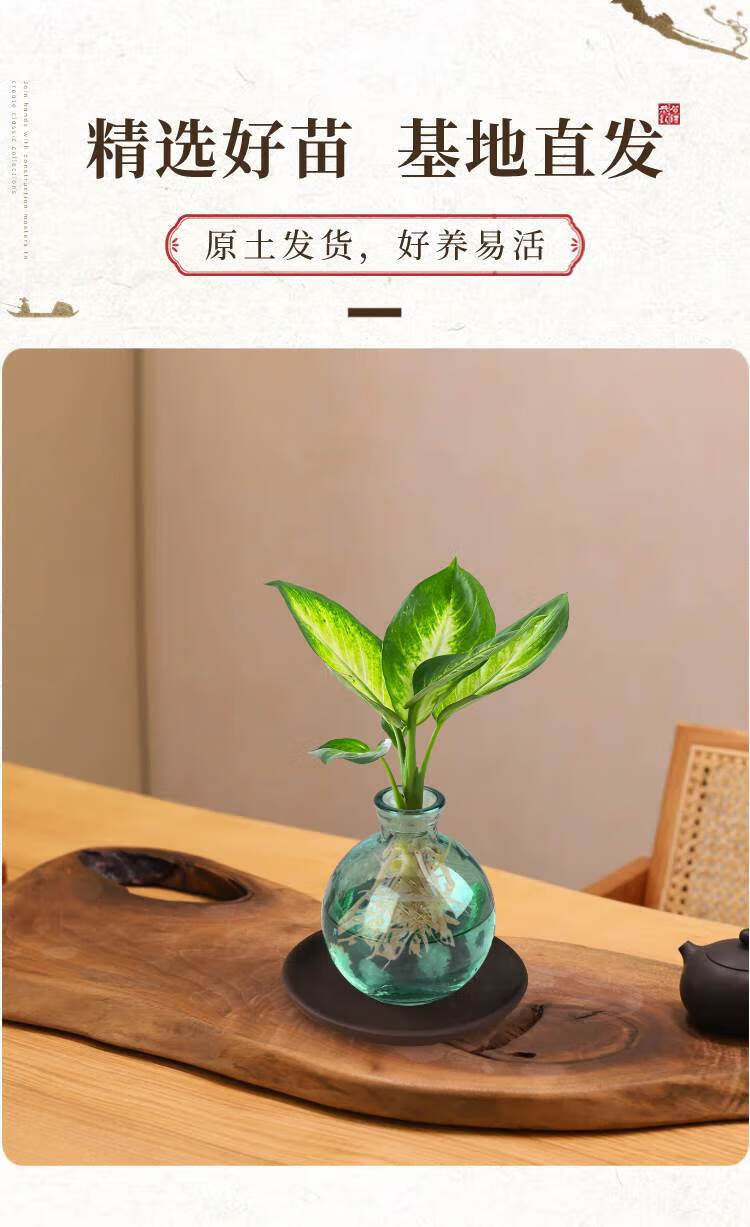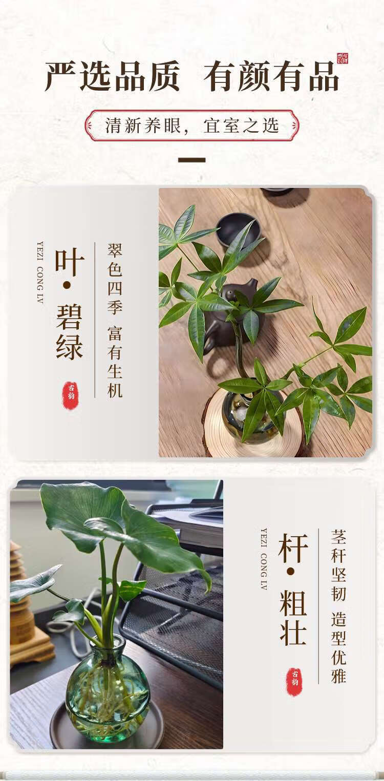 Love You Ten Thousand Years Zen Hydroponic Money Tree Potted Flower Plants in the Office for All Seasons to Recruit Wealth Lotus Bamboo Bamboo Cypress Chinese Smoked Green Bottle Purple Sand Tray
