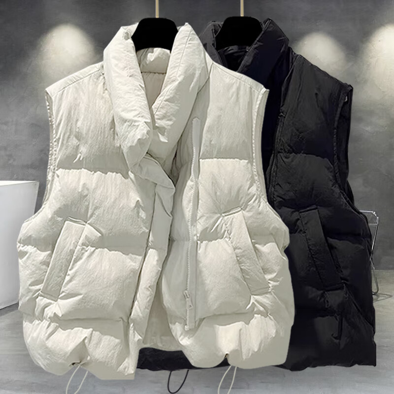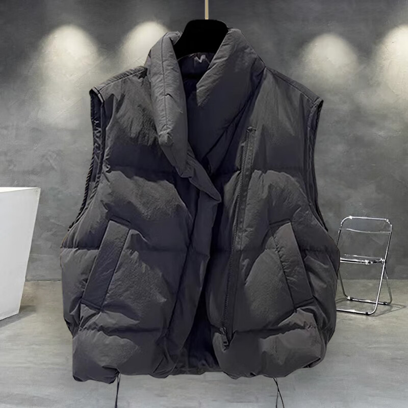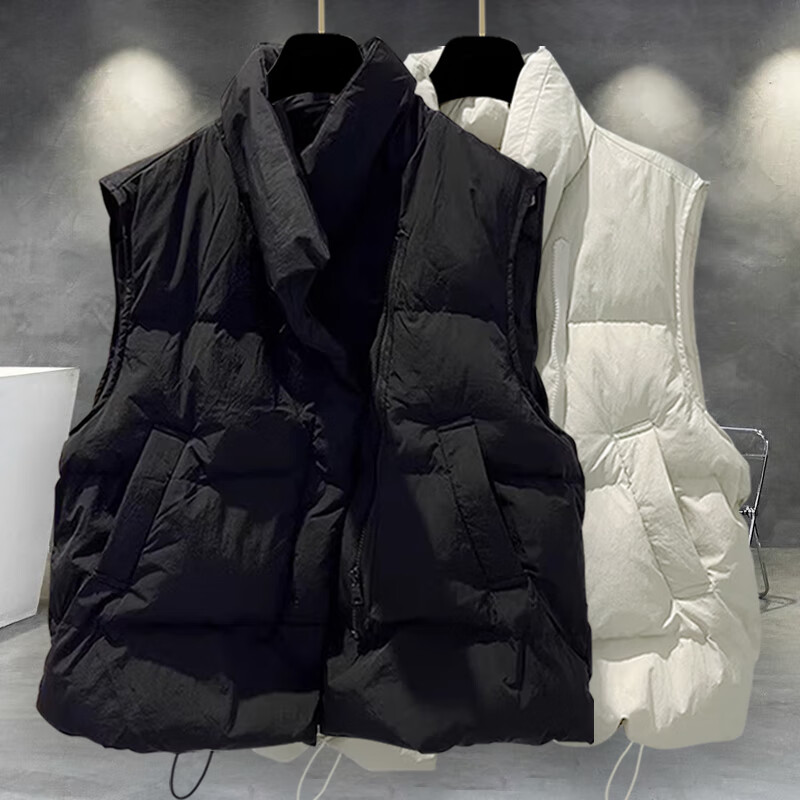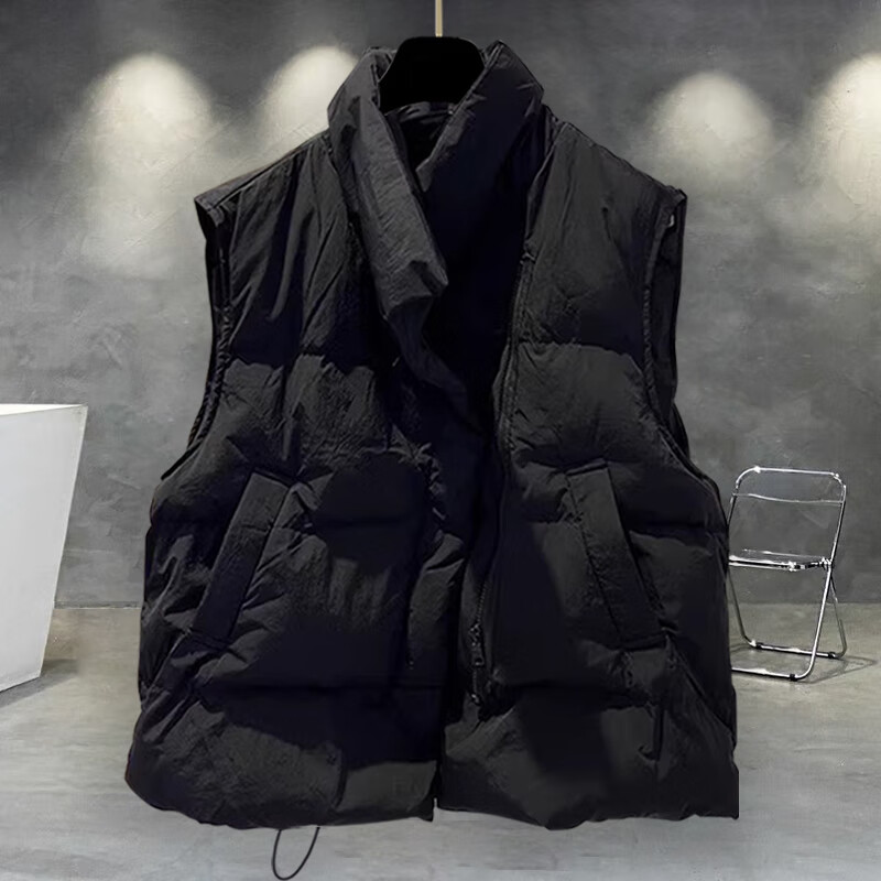 JEEP SPIRIT solid color stand-up collar cotton vest jacket men's winter thickened trendy workwear youth casual cotton jacket trendy brand loose black 2XL suitable for 150-180Jin Jin equals 0.5 kg