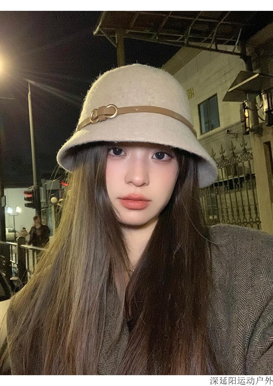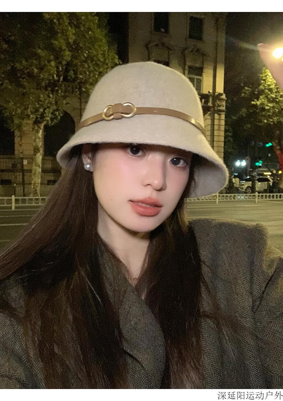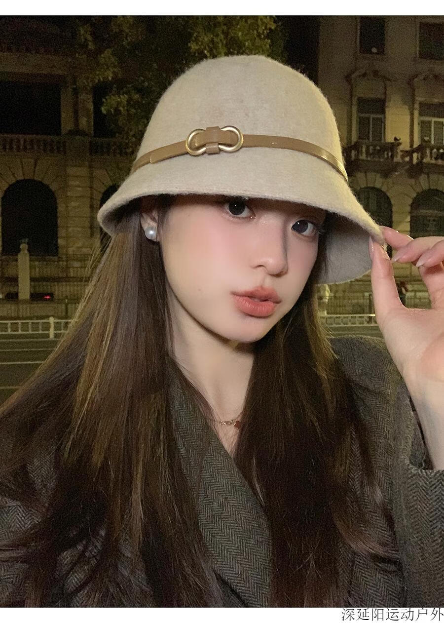 Chuangjingyi selected hats for women, autumn hats, belt buckles, woolen hats, French hats, women's autumn and winter fisherman hats, basin hats, oatmeal color, wool blended, one size fits all (54-59cm)