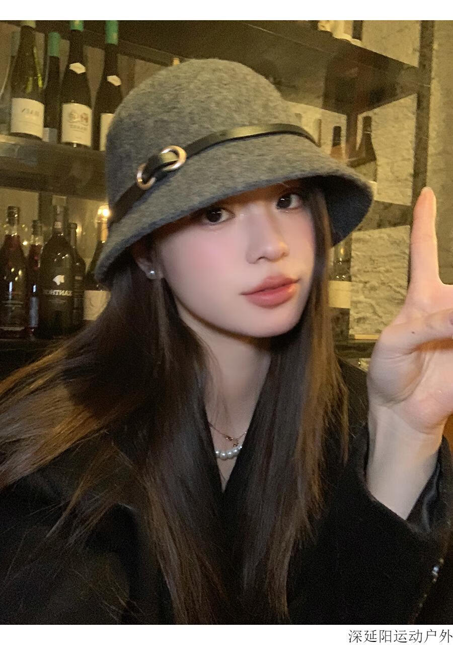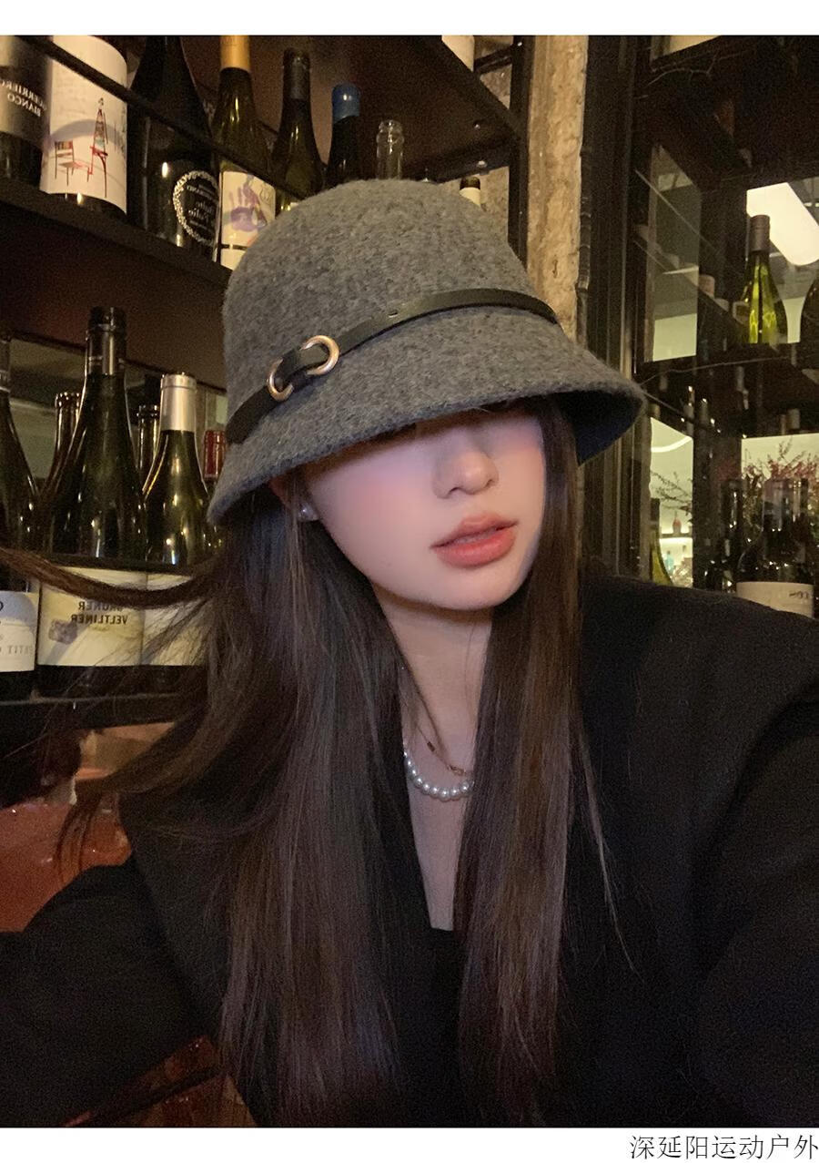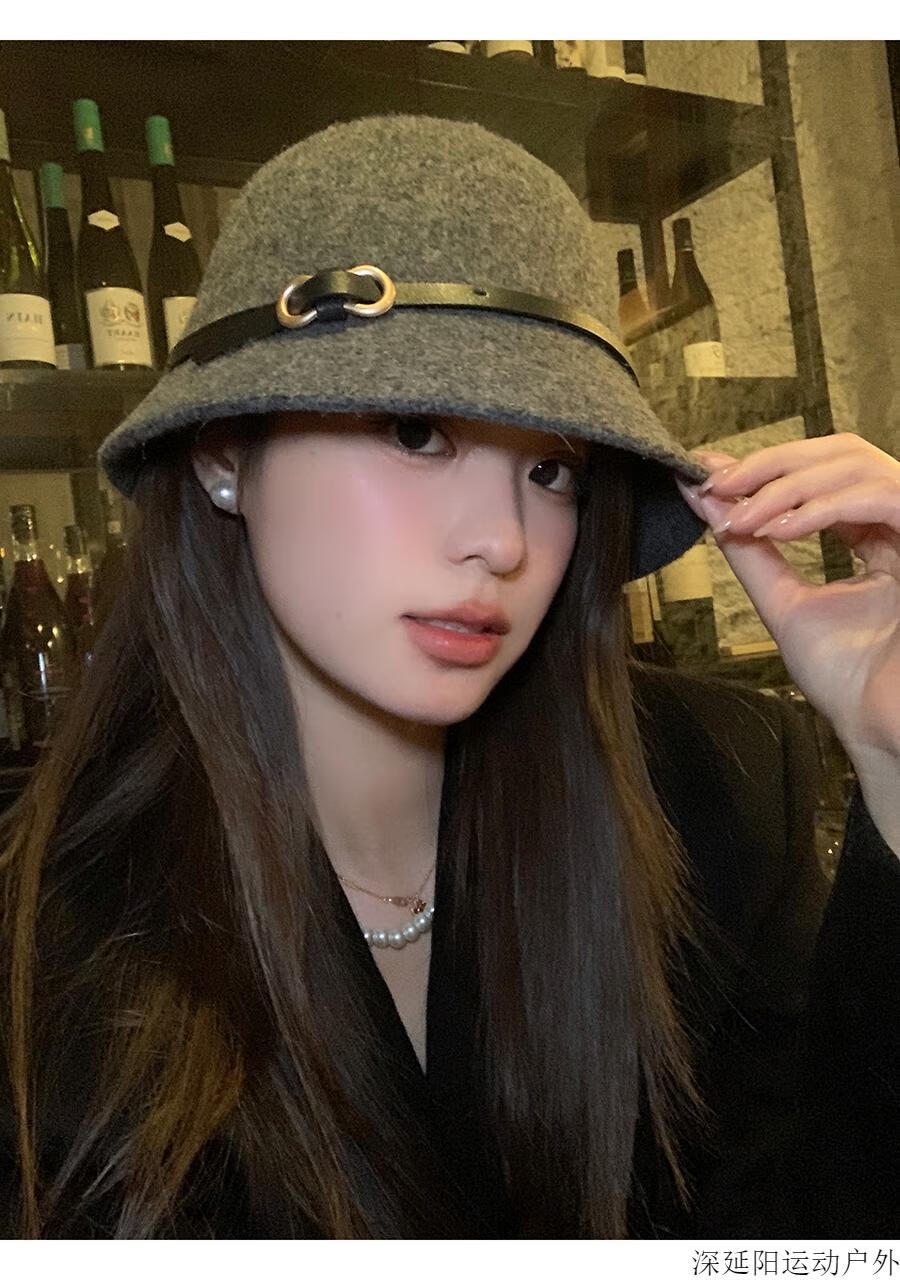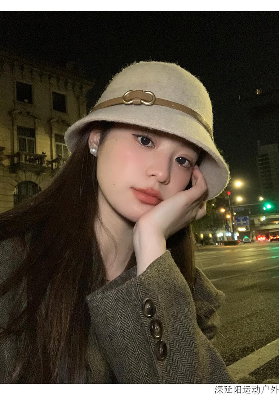 Chuangjingyi selected hats for women, autumn hats, belt buckles, woolen hats, French hats, women's autumn and winter fisherman hats, basin hats, oatmeal color, wool blended, one size fits all (54-59cm)