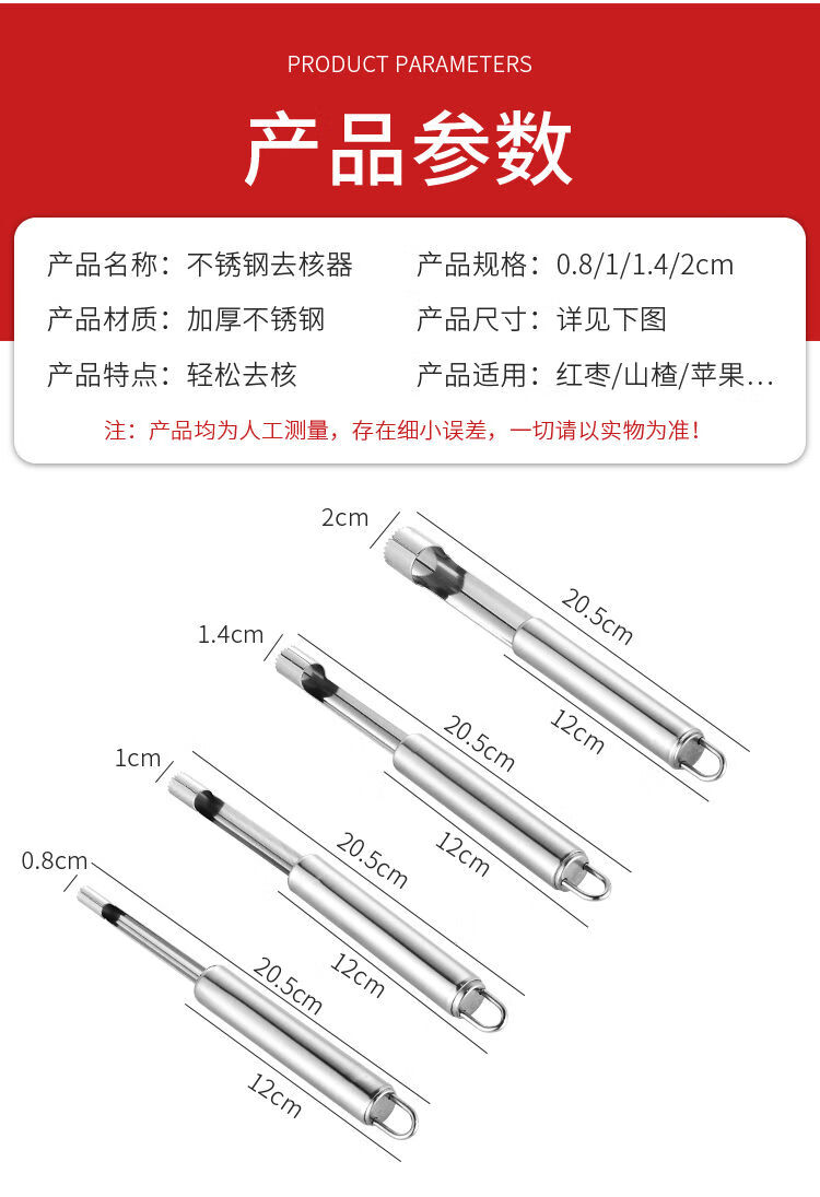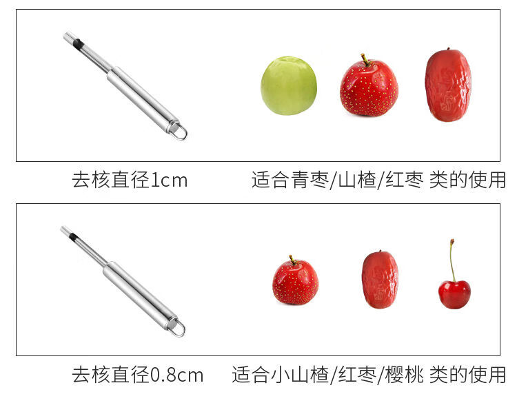 Runhuanian Household Multifunctional Red Date Core Remover Stainless Steel Hawthorn Apple Seed Removal Tool Fruit Core Core Remover One Piece Hawthorn/Large Red Date Core Removal 1.0cm