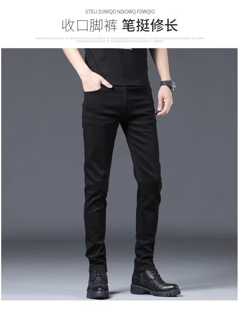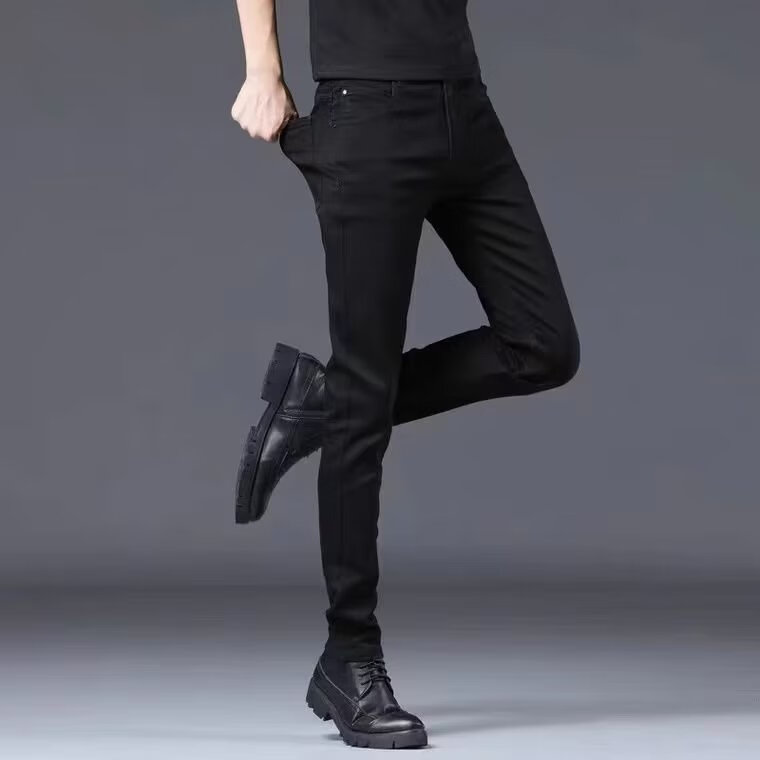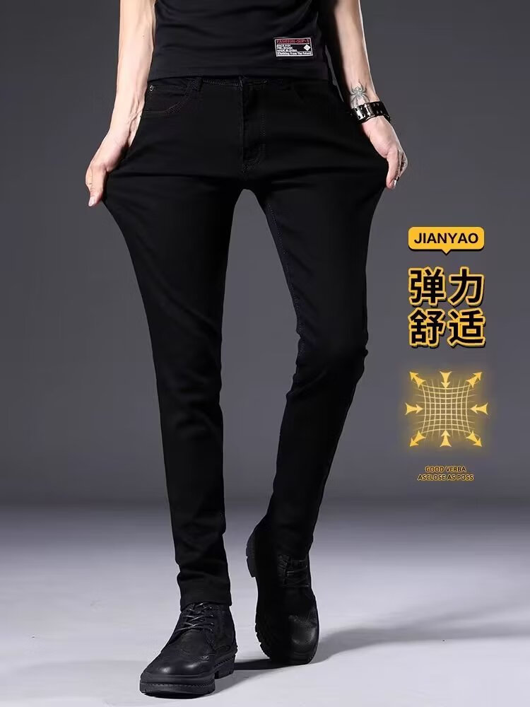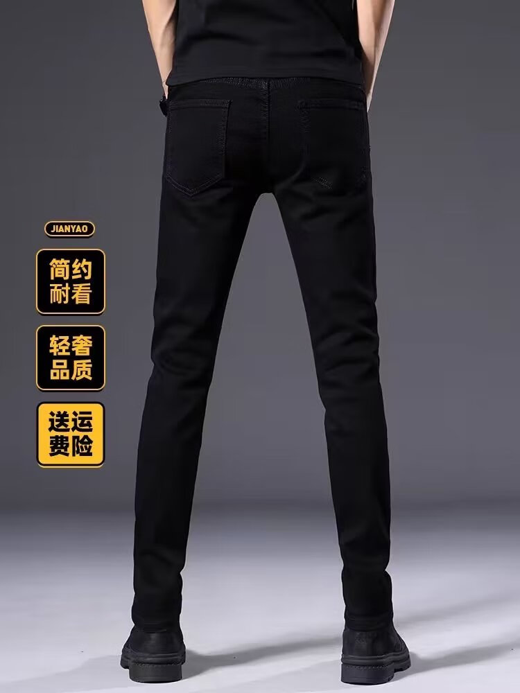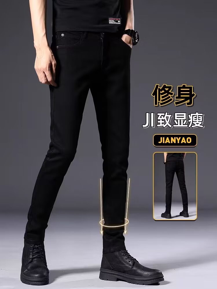 益帛黑色牛仔裤男冬季新款加绒韩版修身弹性显瘦时尚休闲小脚长裤子男 黑色 31 【建议115-125斤】