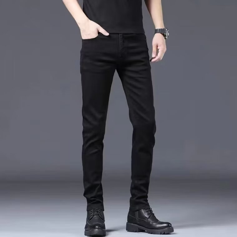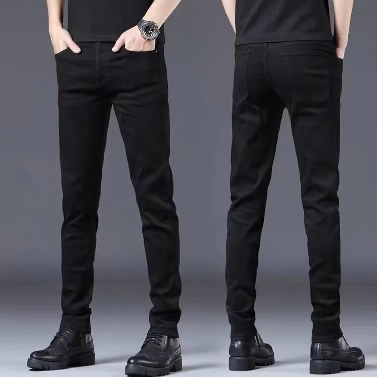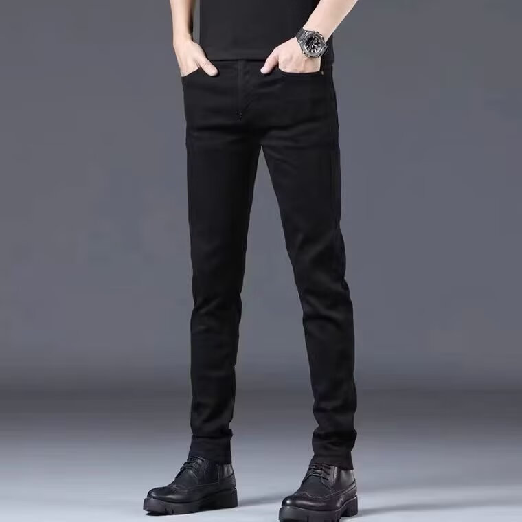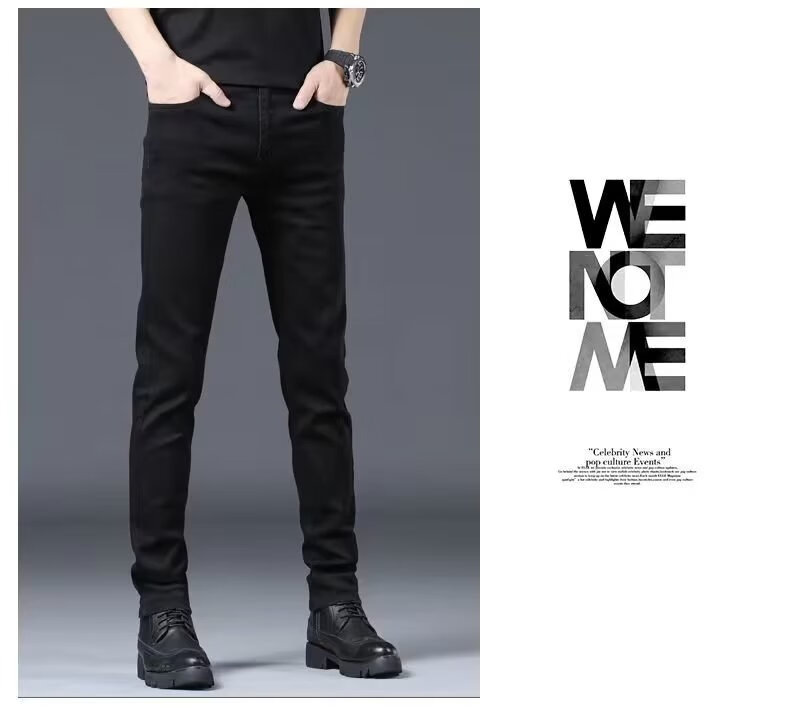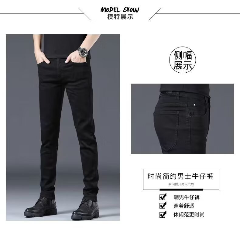 益帛黑色牛仔裤男冬季新款加绒韩版修身弹性显瘦时尚休闲小脚长裤子男 黑色 31 【建议115-125斤】