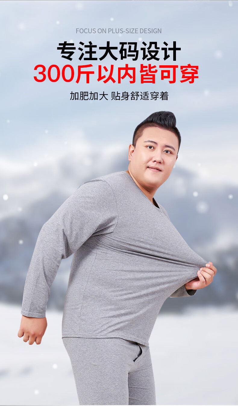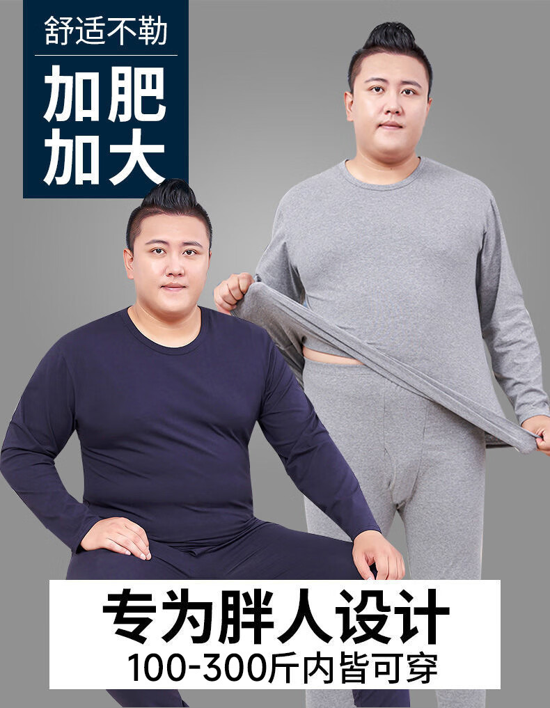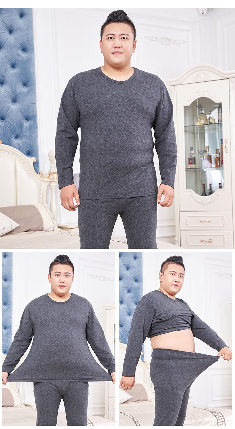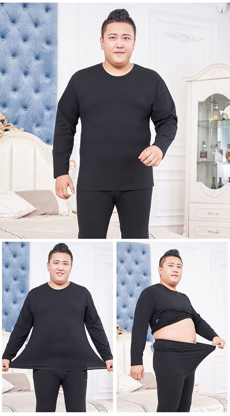LangSha autumn clothes and long trousers men's suit plus fat plus fat boy fat man fat man pure cotton thermal underwear men's large size black 5XL recommended 200-240Jin Jin equals 0.5 kg
