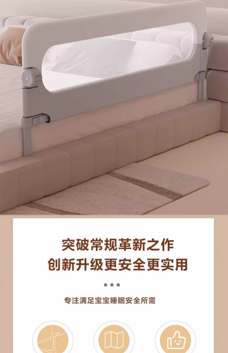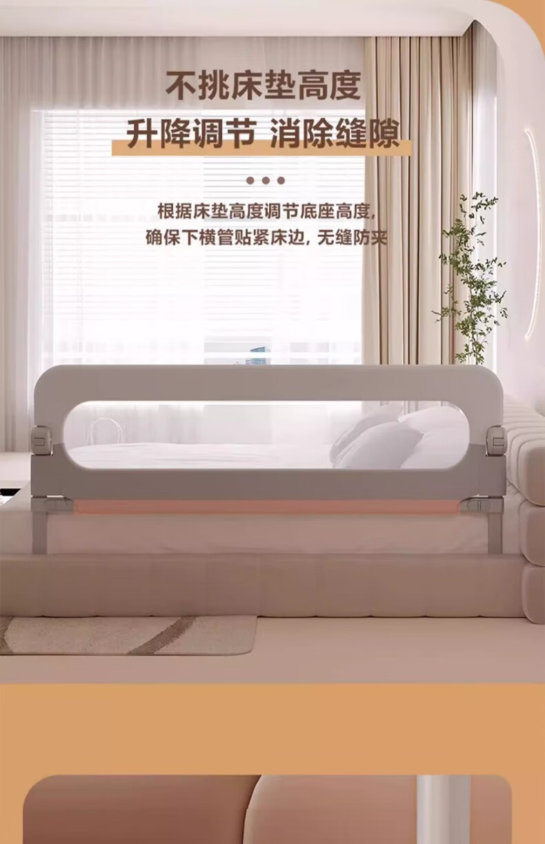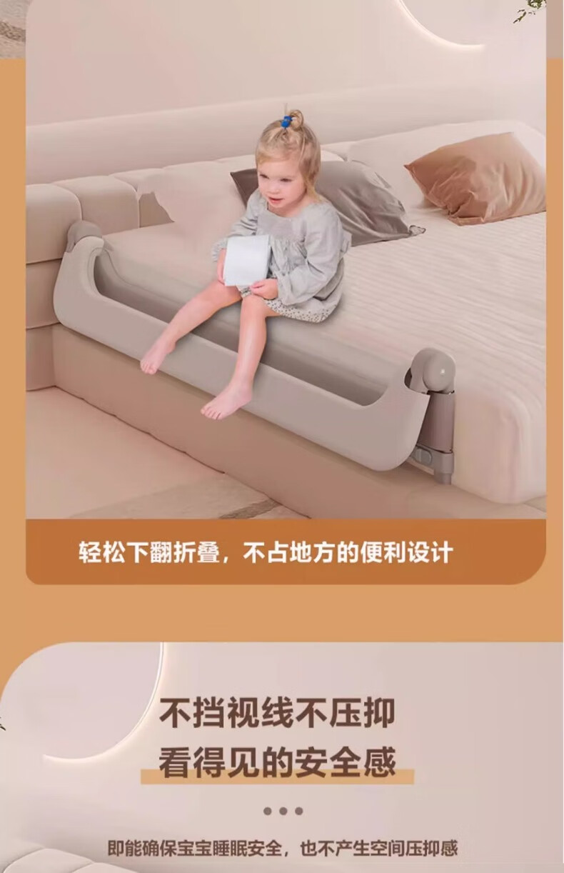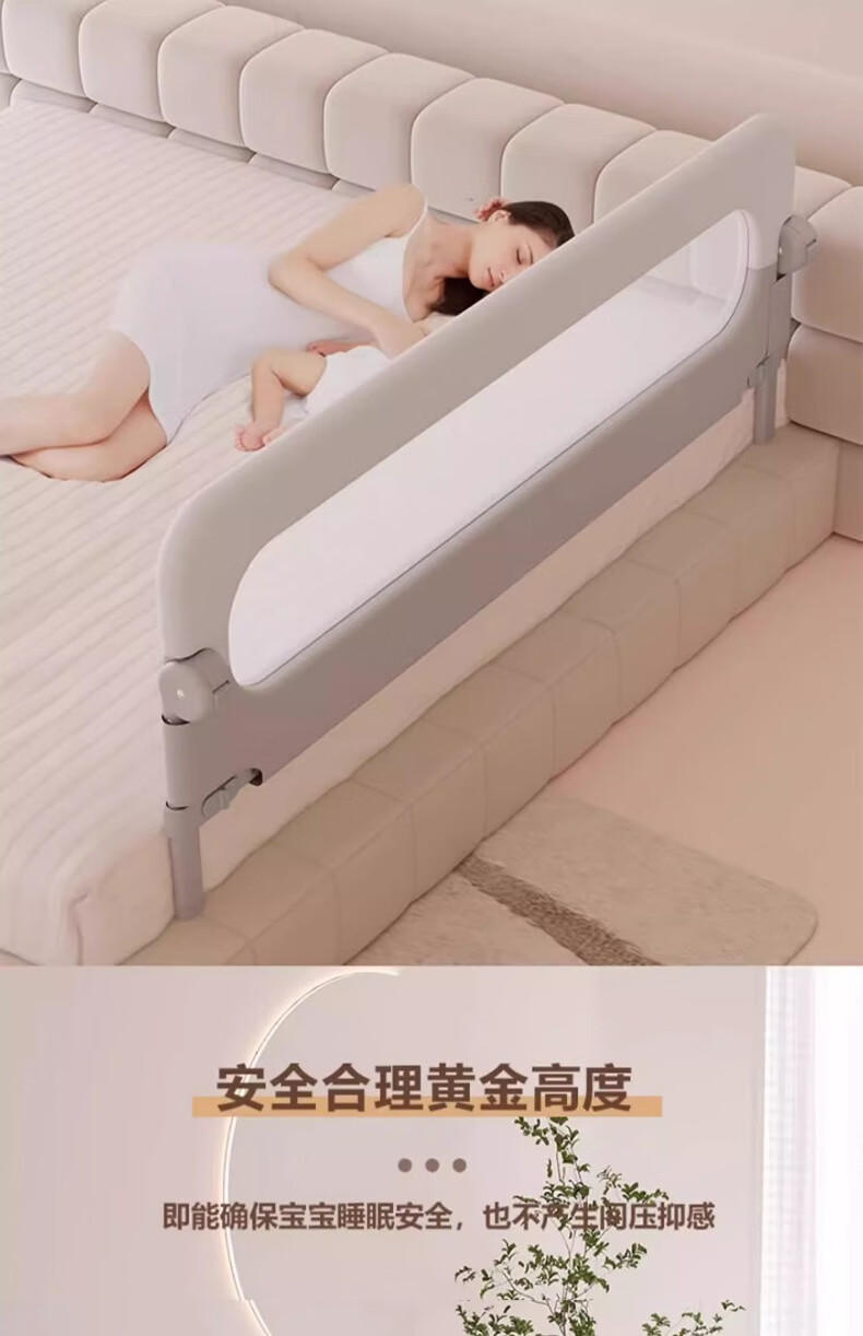 ZBENSER bed fence for infants, punch-free guardrail, anti-fall bedside baffle, folding baby bed fence safety guardrail, upper and lower color matching rock gray, punch-free large U-shaped base, 1.8 meters, 180 buttons, folding bed design