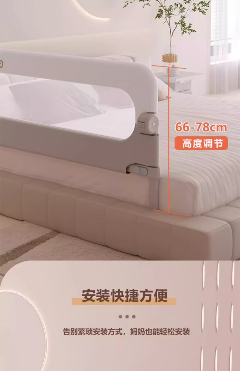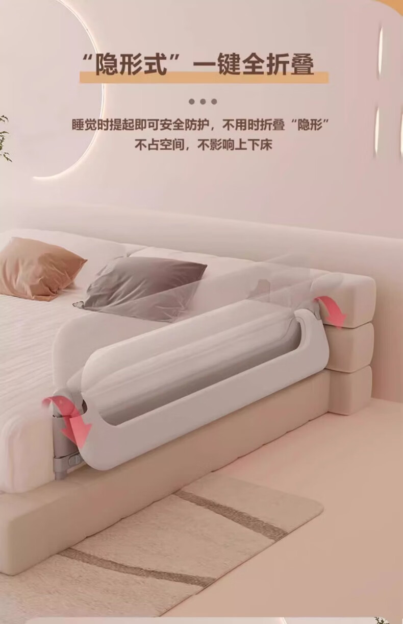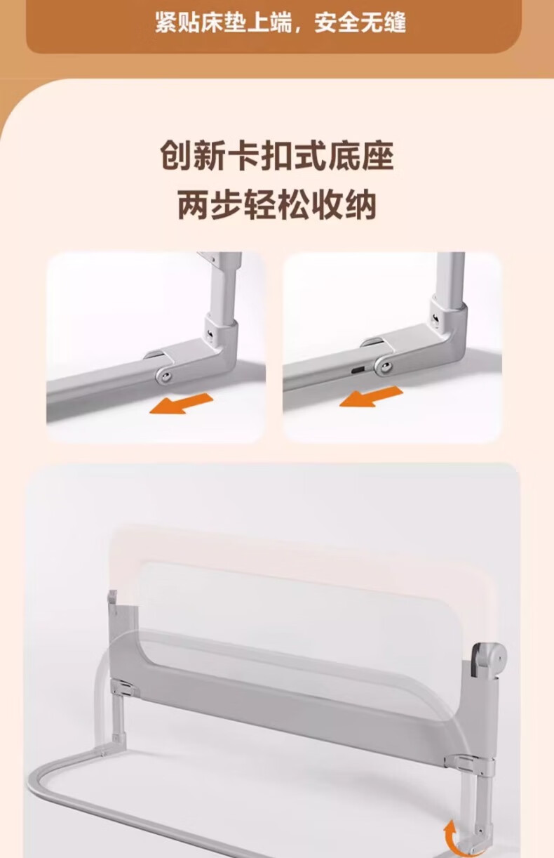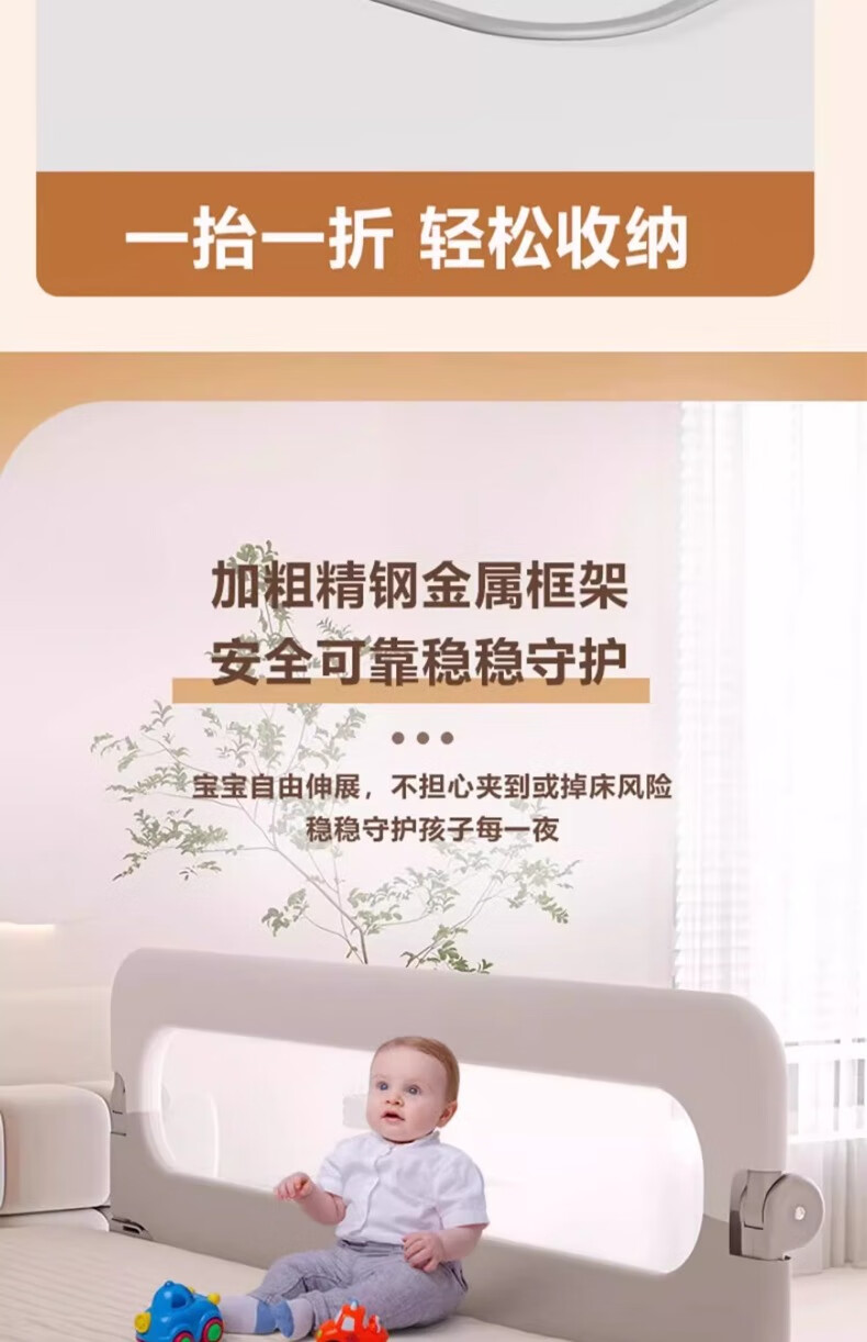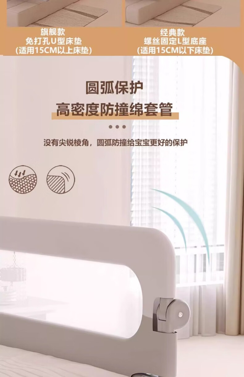 ZBENSER bed fence for infants, punch-free guardrail, anti-fall bedside baffle, folding baby bed fence safety guardrail, upper and lower color matching rock gray, punch-free large U-shaped base, 1.8 meters, 180 buttons, folding bed design