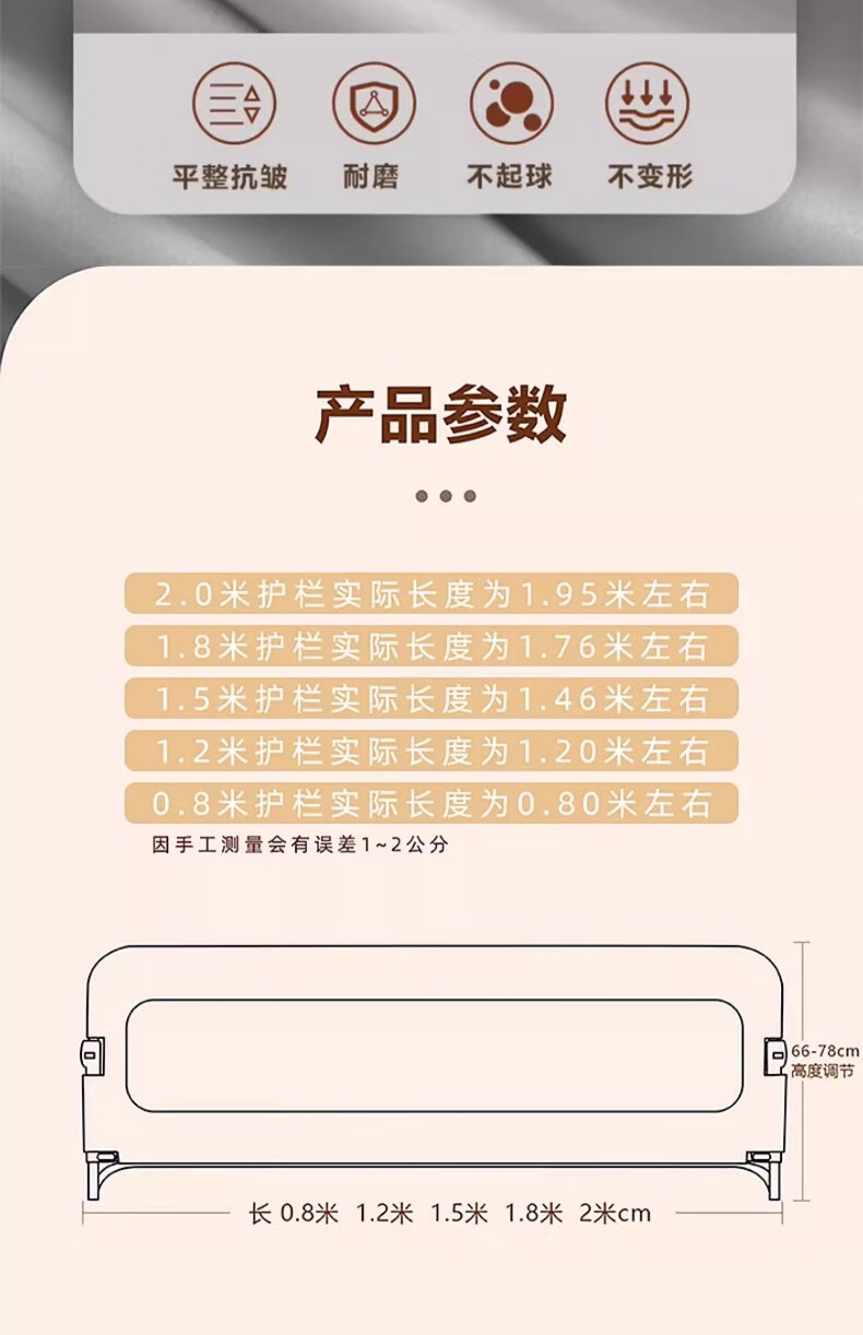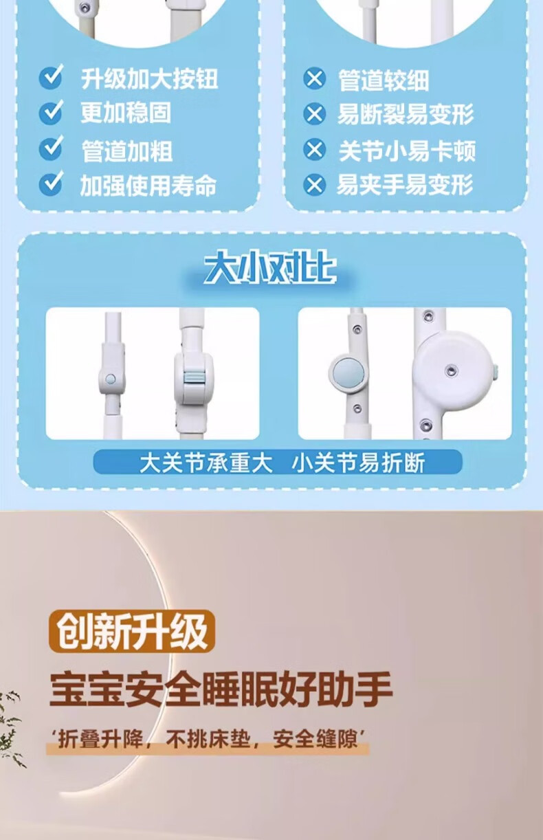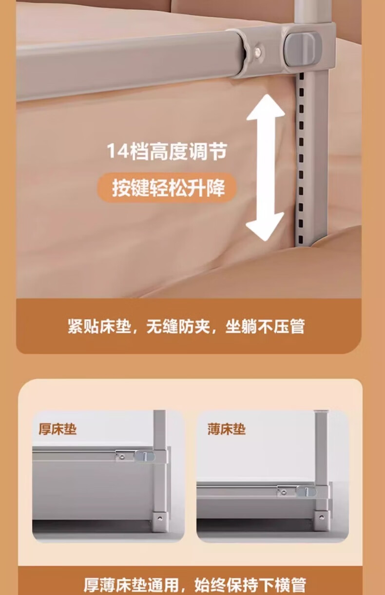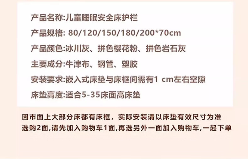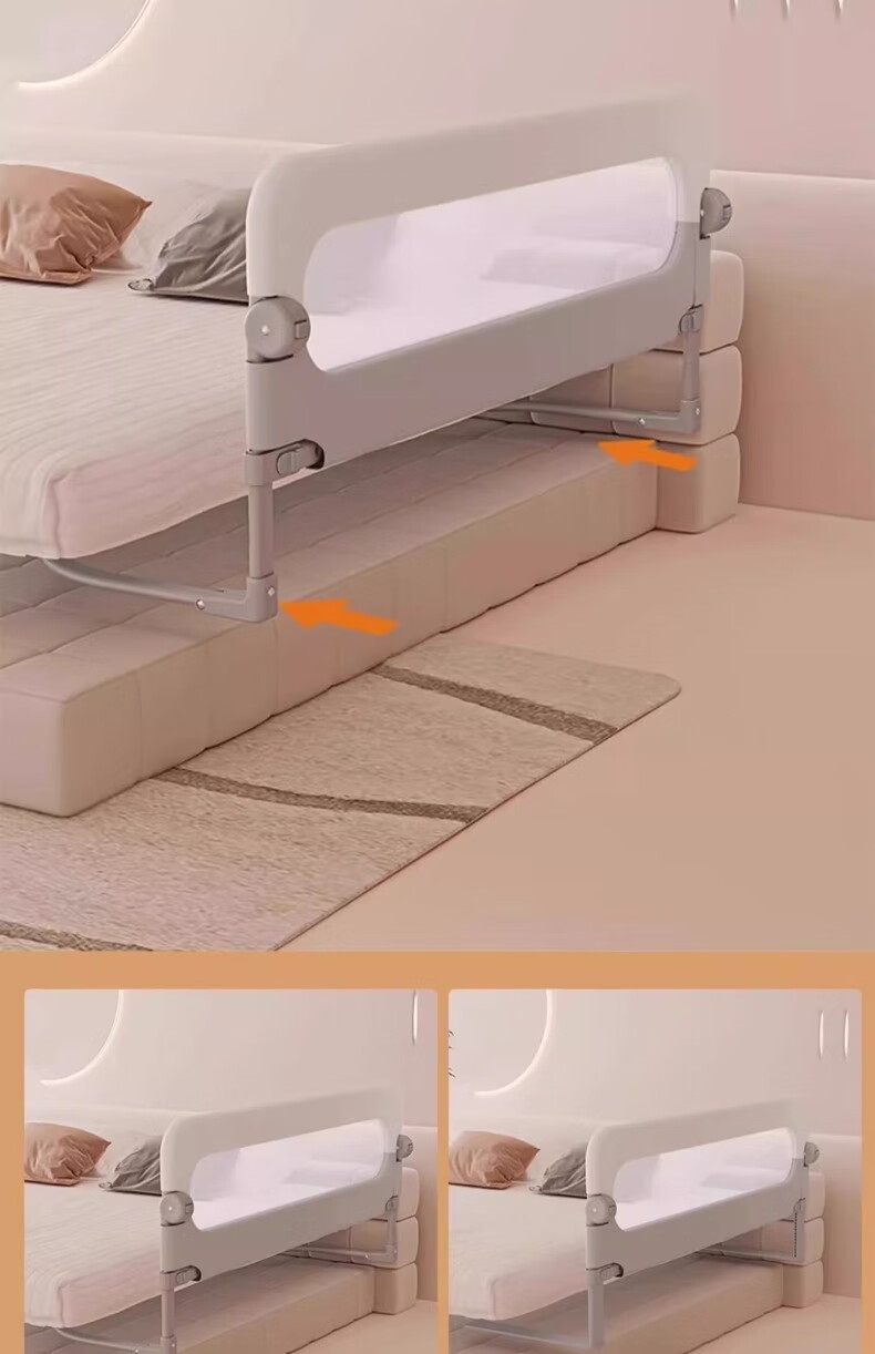 ZBENSER bed fence for infants, punch-free guardrail, anti-fall bedside baffle, folding baby bed fence safety guardrail, upper and lower color matching rock gray, punch-free large U-shaped base, 1.8 meters, 180 buttons, folding bed design