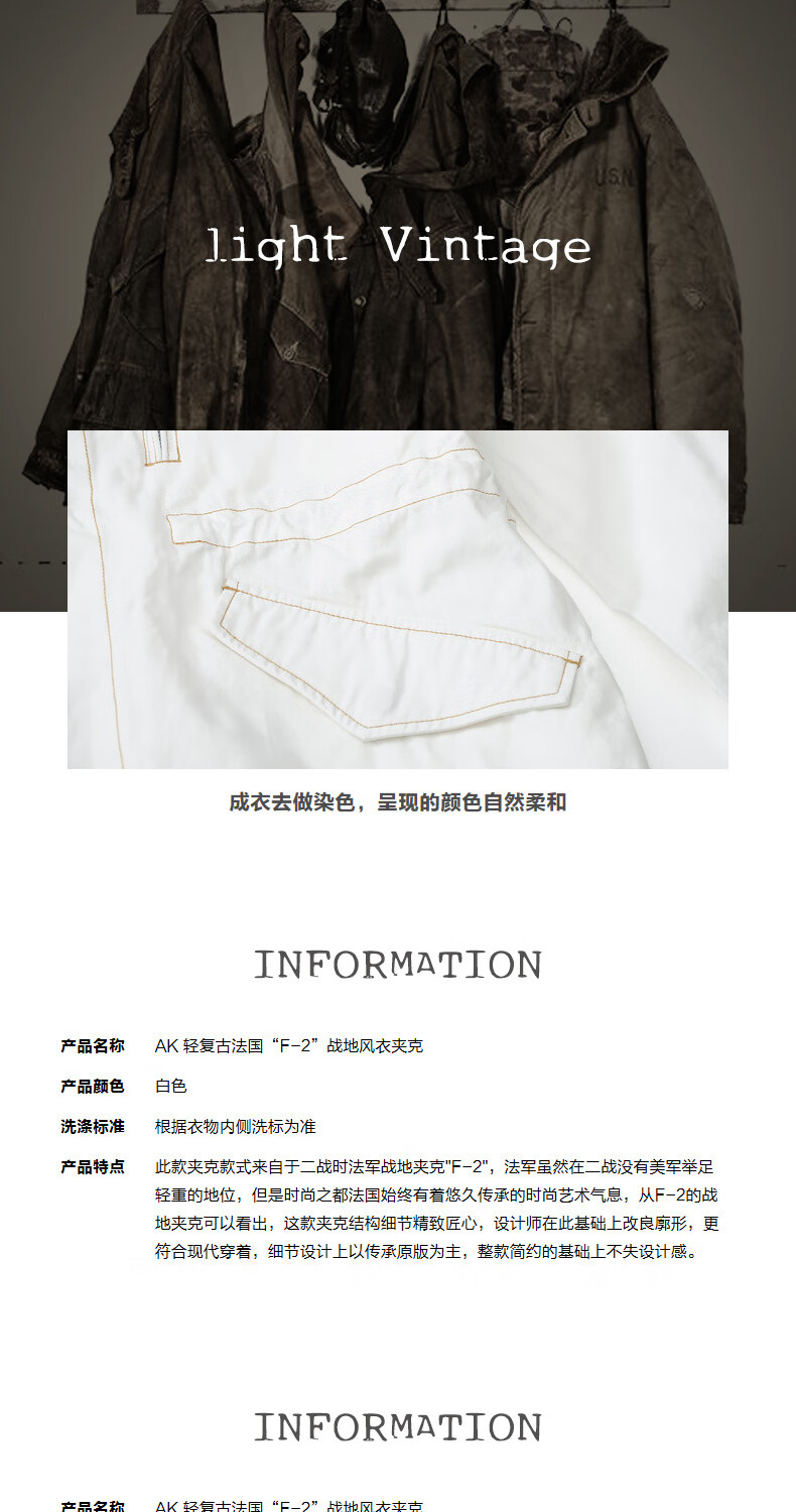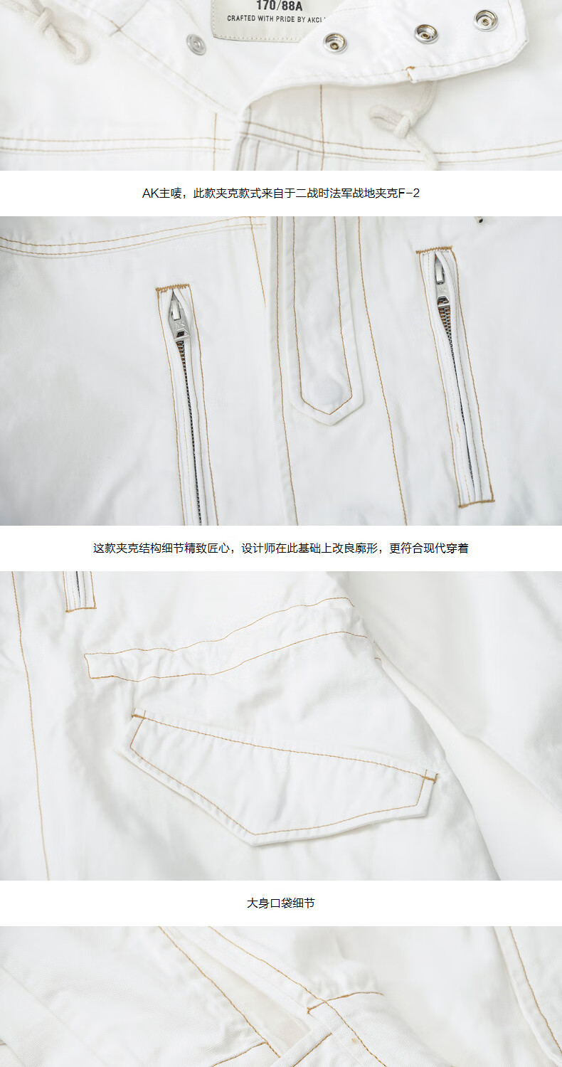 AKCLUBAK Men's Light Retro French F-2 Field Windbreaker Jacket 2106923 White XL