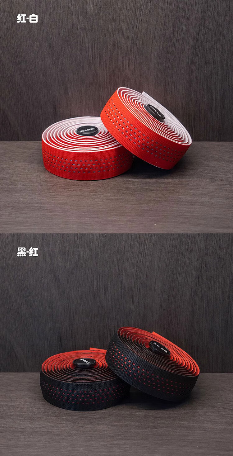 TKHE road handlebar with bicycle handlebar wrapping strap, non-slip, breathable, friction-resistant and corrosion-resistant strap, black-red dot