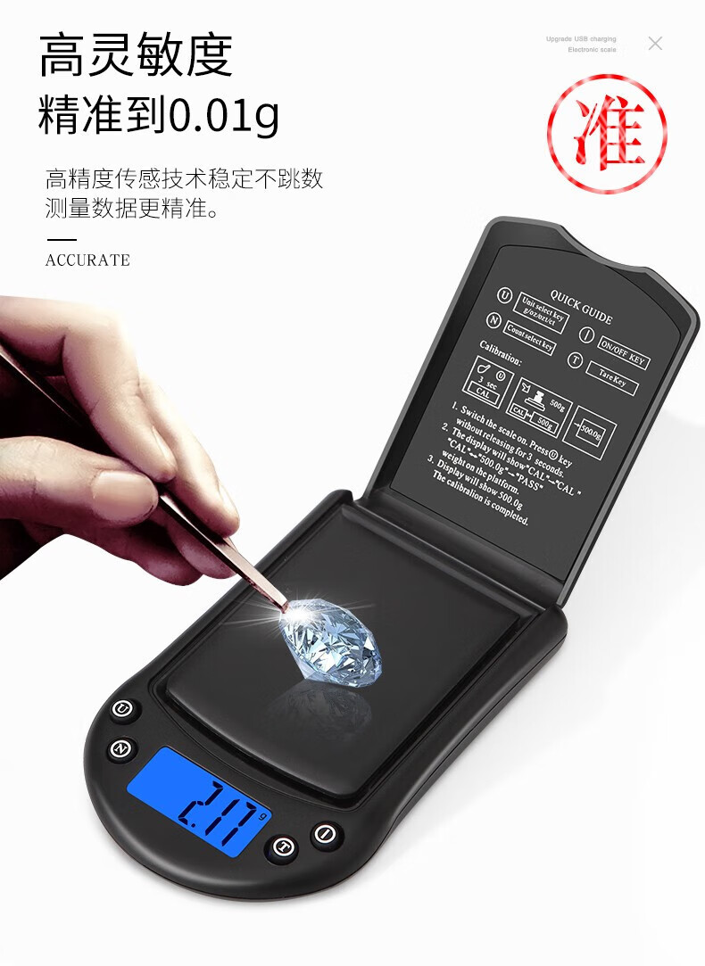 DIHENG Precision Portable Jewelry Scale 0.01g High-Precision Electronic Scale Small Scale Mini Balance Electronic Scale Gold Rechargeable Version /+Calibration Weight 0.01g 300g