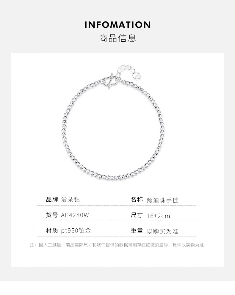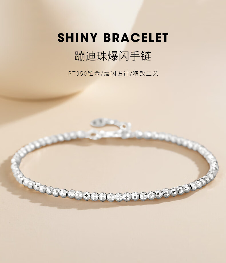 Aido Diamond Super Flash Platinum Bracelet Women's pt950 Platinum Disco Beads Laser Ball Bracelet Weight 5.4-5.6g Length 16+3cm