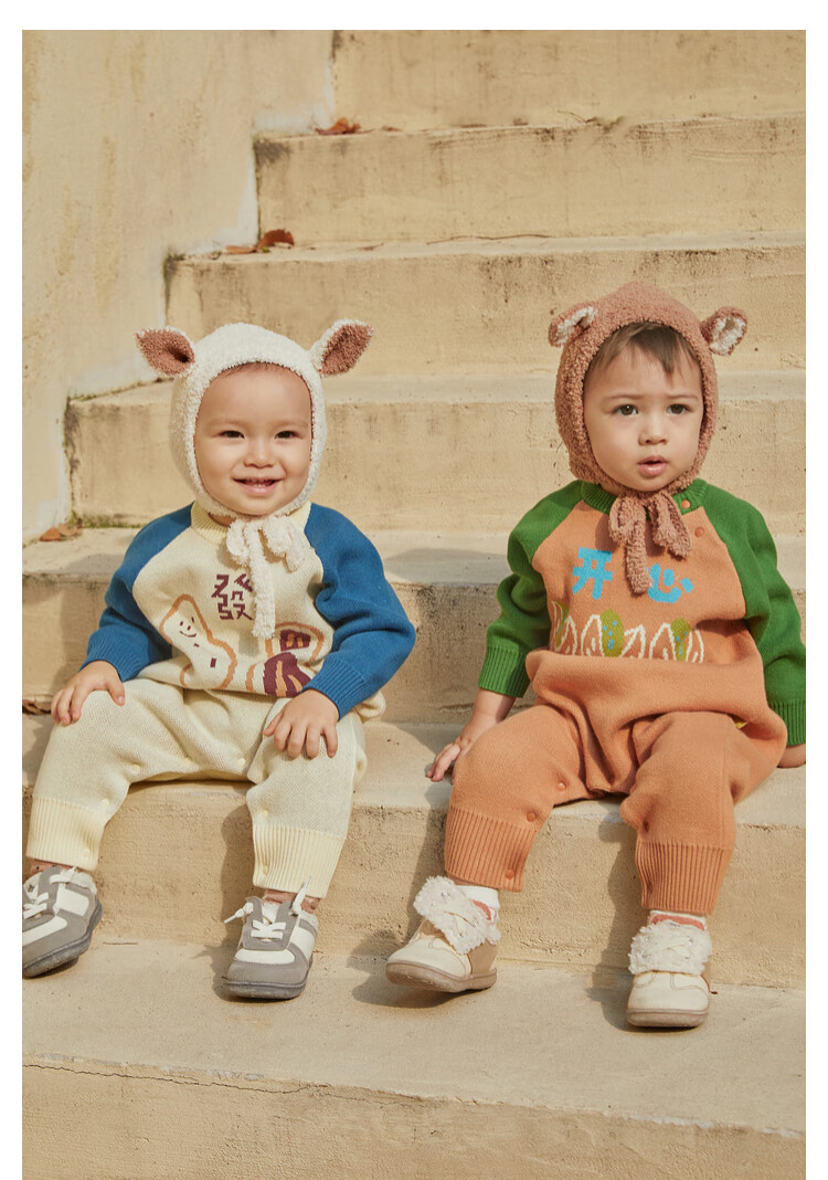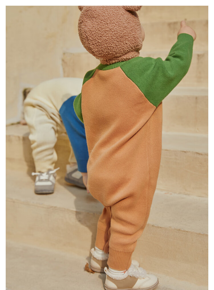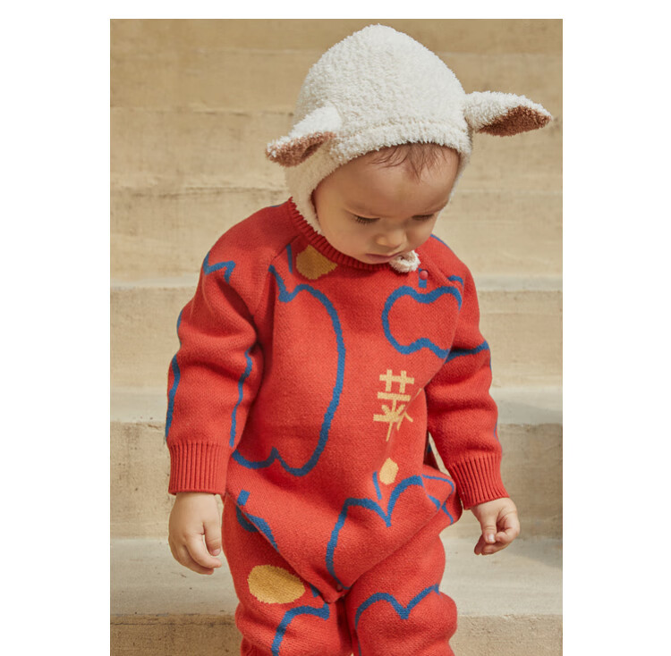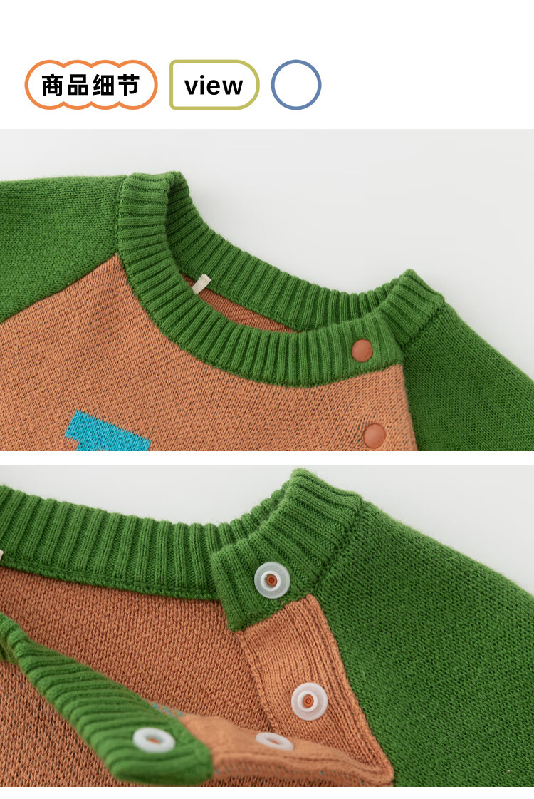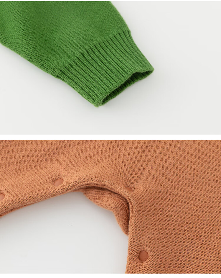 Papa crawling autumn and winter clothing baby sweater jumpsuit for men and women baby knitted crawling clothing New Year's outing warm pure cotton green 80cm