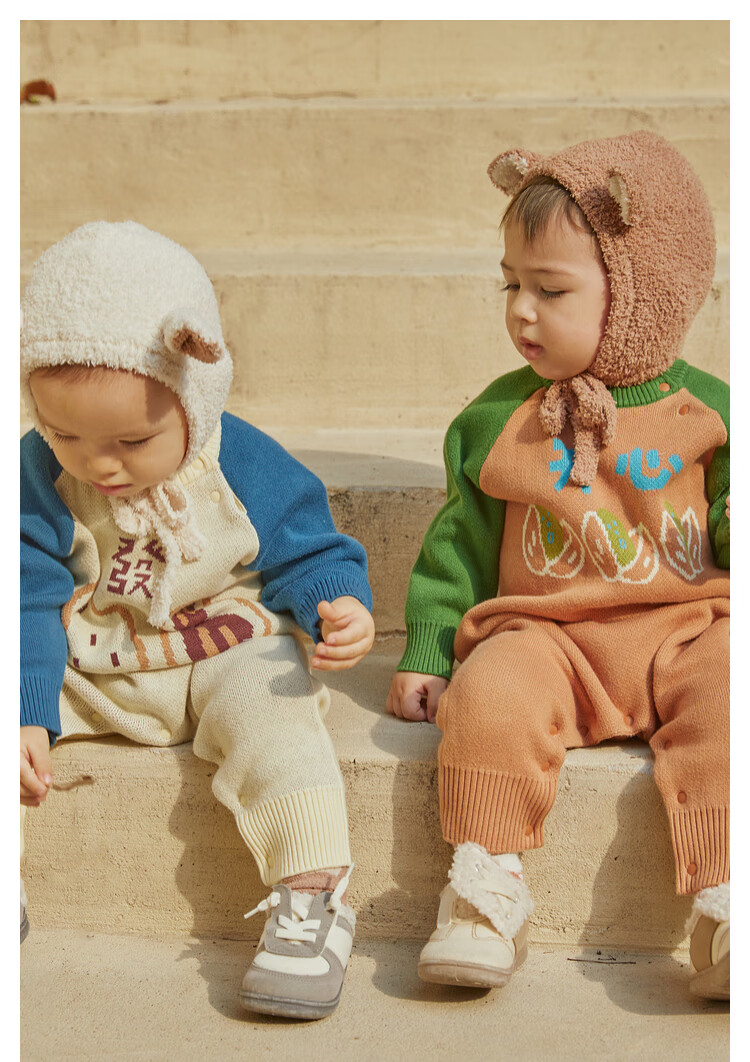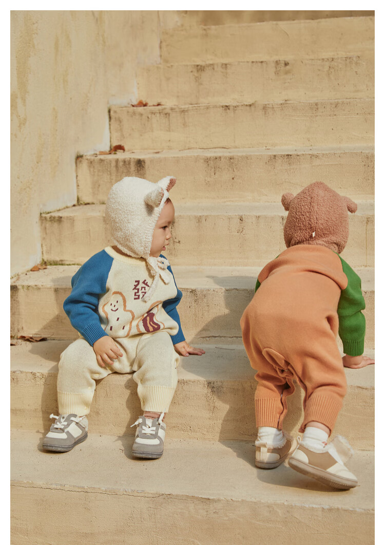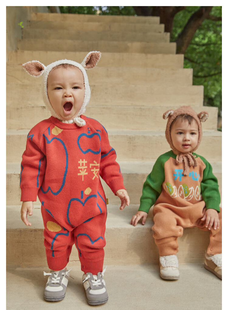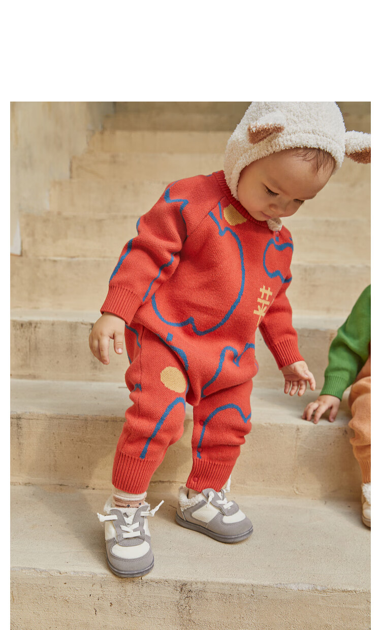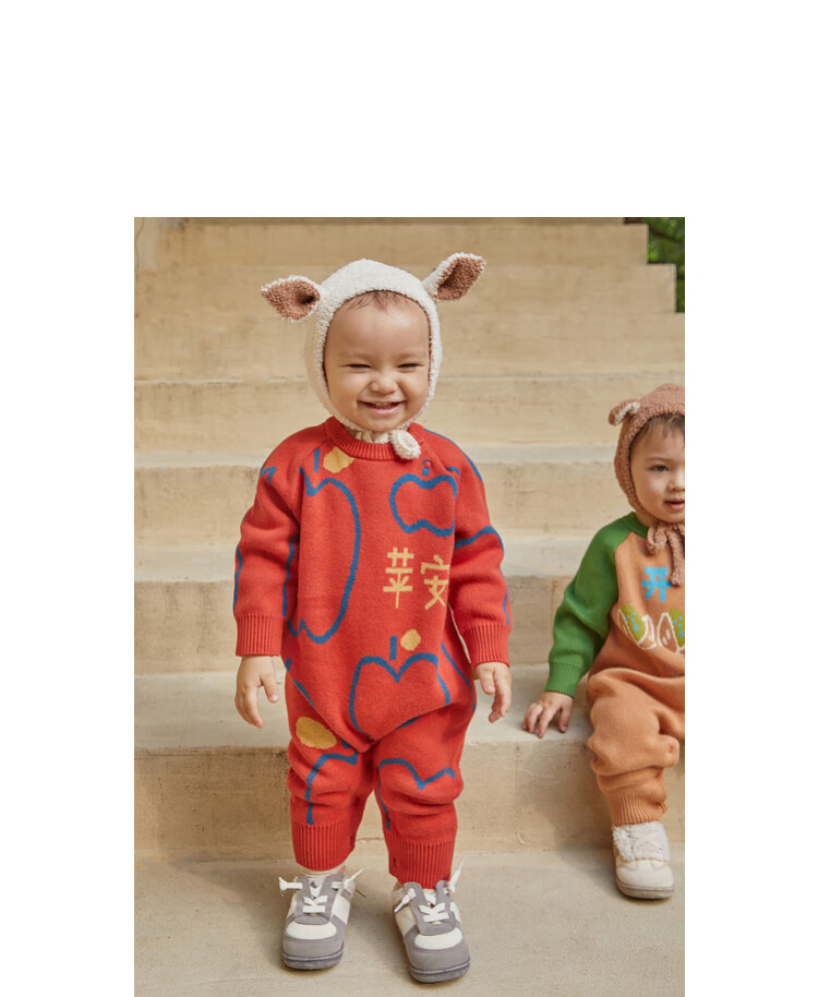 Papa crawling autumn and winter clothing baby sweater jumpsuit for men and women baby knitted crawling clothing New Year's outing warm pure cotton green 80cm