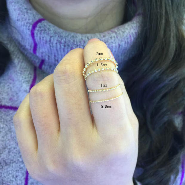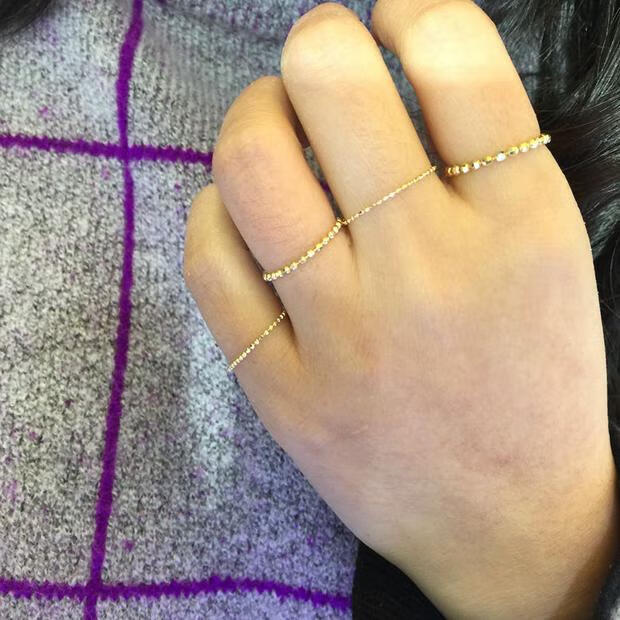Changcai 14K gold ring, women's rice bead soft ring, fashionable, super shiny, simple and elegant, Valentine's Day, Birthday and Chinese Valentine's Day gift, 1.2mm thick, size 20