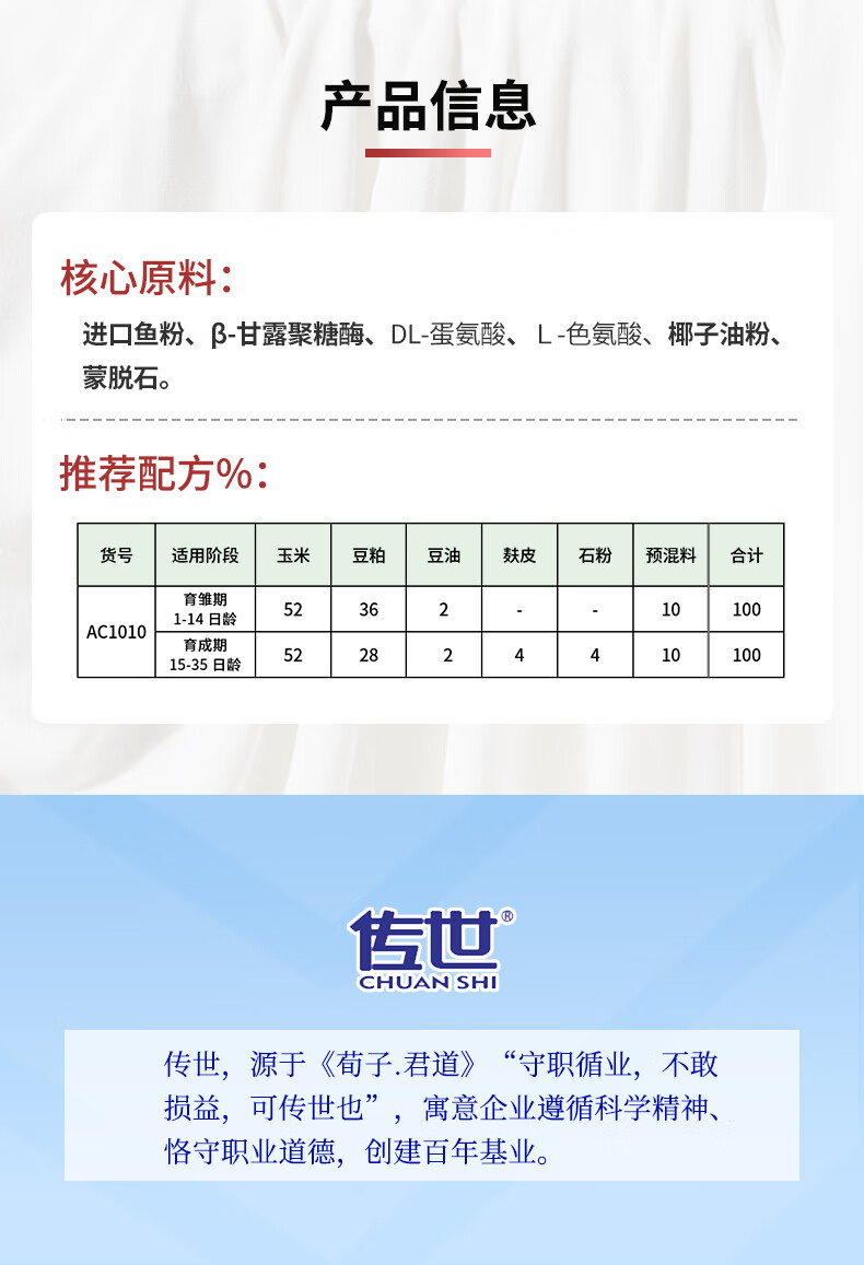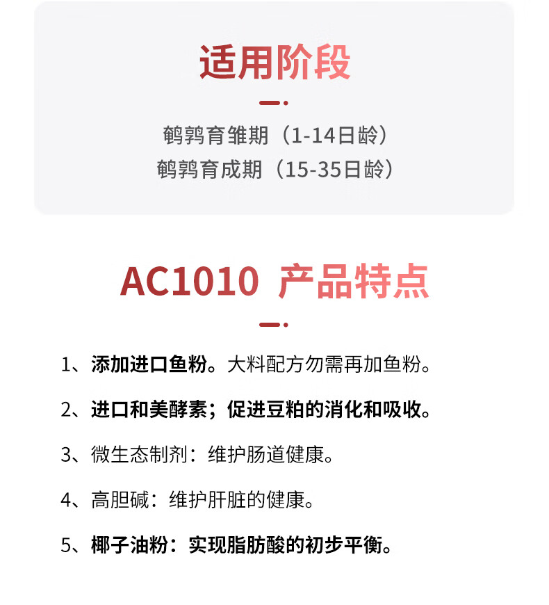 Chuanshi AC1010 10% quail growth period compound premixed feed poultry feed quail net weight 20kg 20kg