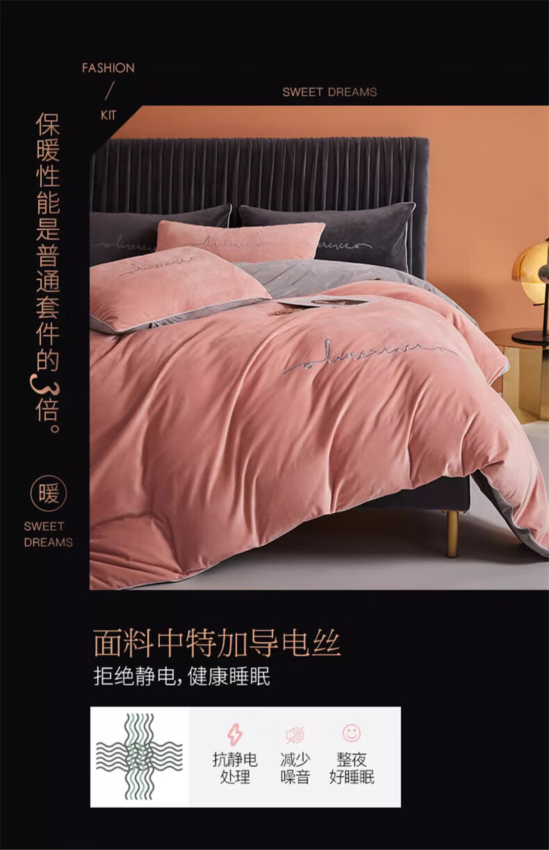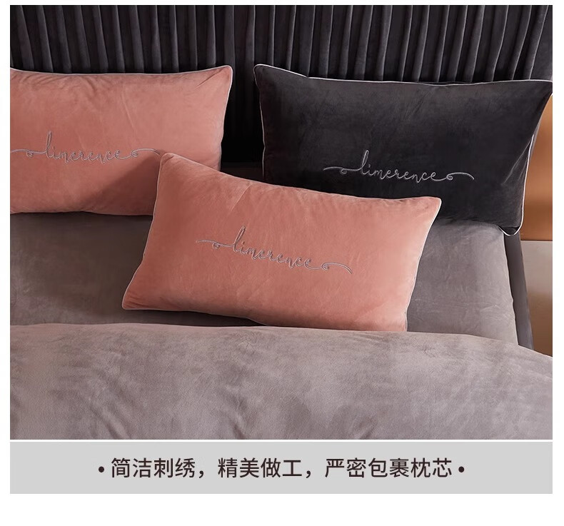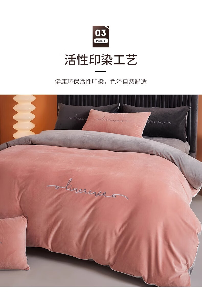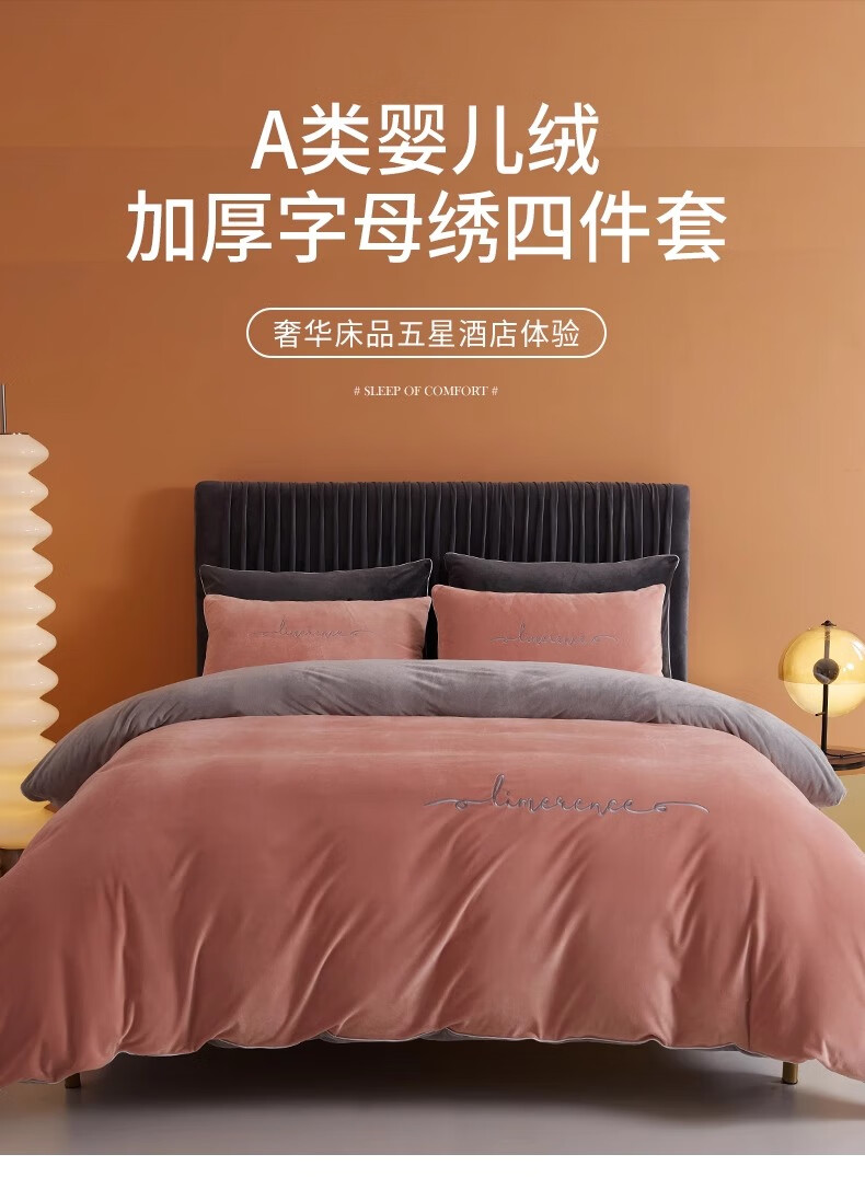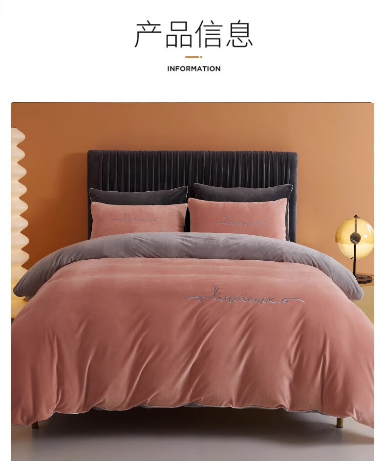 MUJI Class A baby milk velvet four-piece set winter double-sided velvet sheet quilt cover flannel quilt cover sheet bedding Class A baby velvet Allure Pink + Modern Gray 1.8m bed sheet style four-piece set - quilt cover 200*230cm