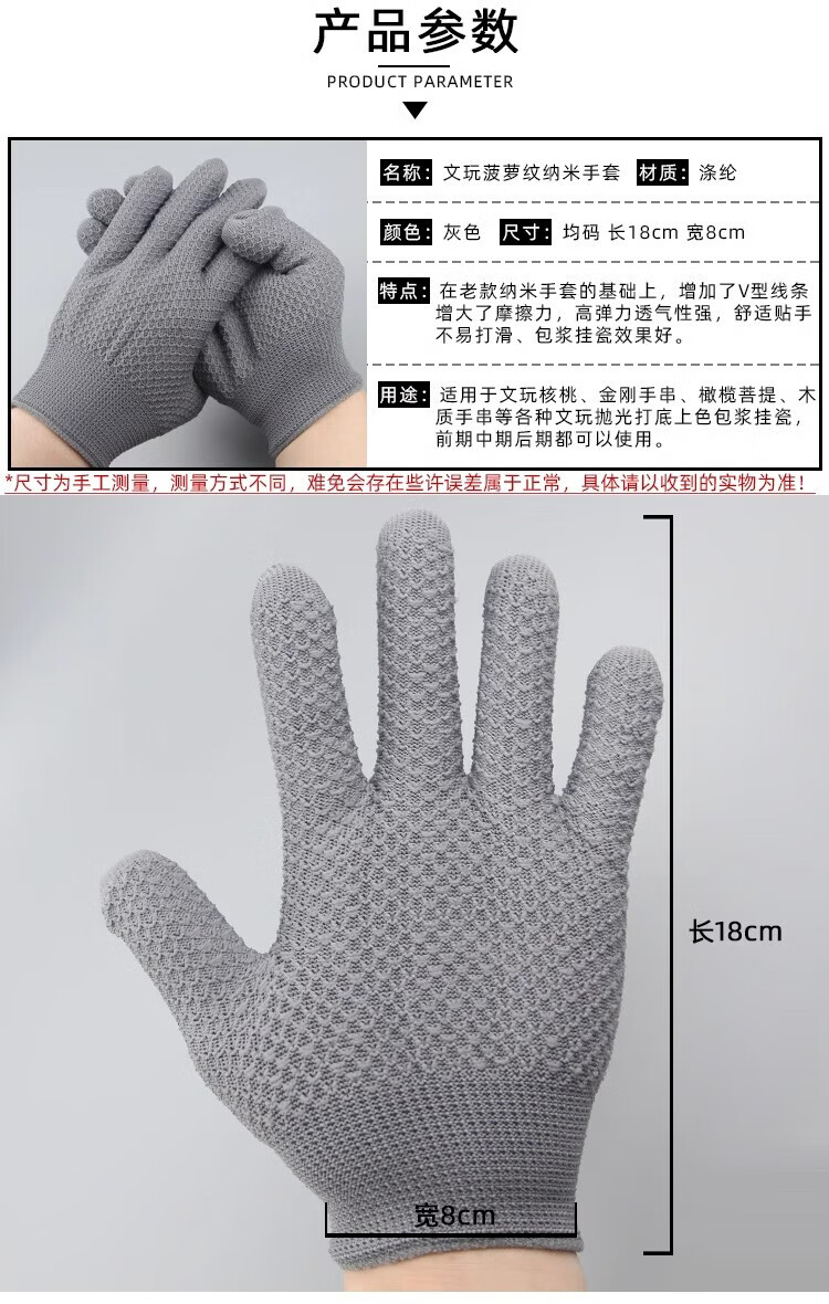 Maimi Devin nano gloves for playing with bead strings, special gloves with pulp, polished walnut, star and moon, Bodhi leaflet and red sandalwood gloves, thickened white 10-pack, pineapple pattern nano gloves