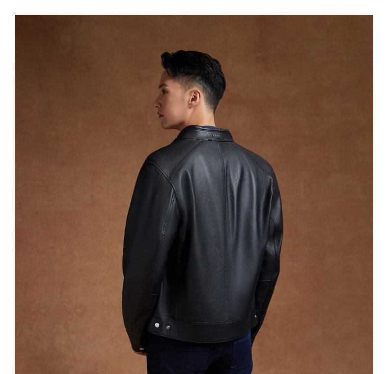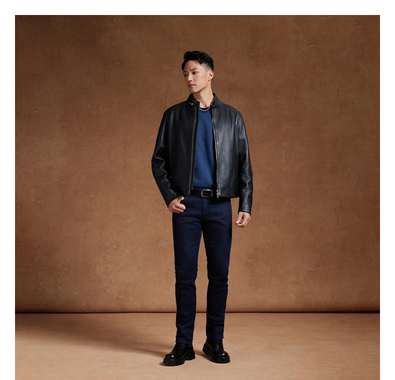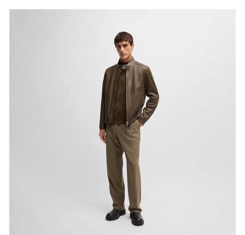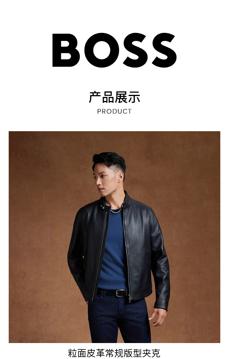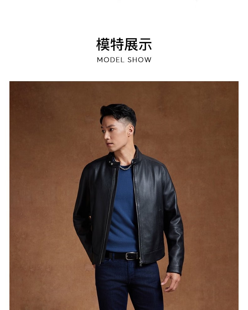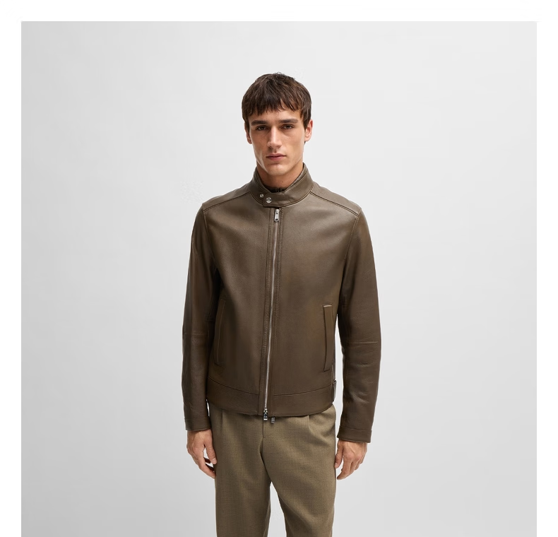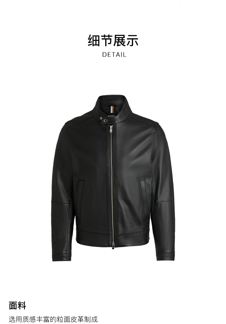 BOSS Motorcycle Style Sheepskin BOSS Men's Autumn 2024 New Stand Collar Double Zipper Retro Style Leather Jacket 001-Black 48