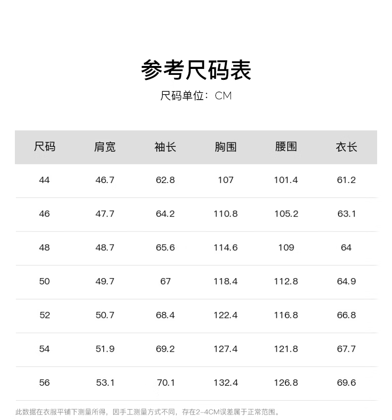 Size (cm) 42 44 46 48 50