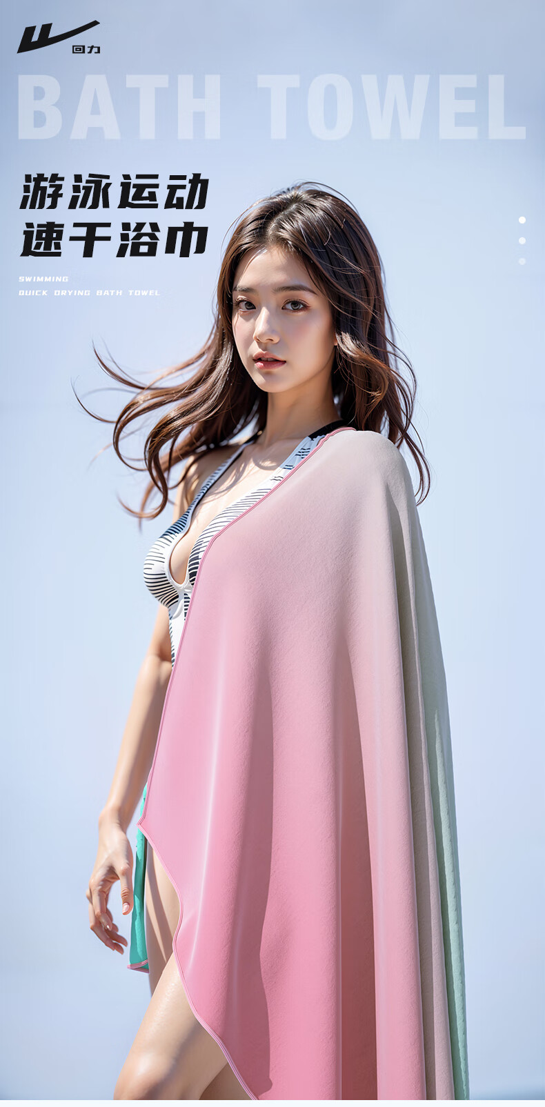 Pull back quick-drying bath towel swimming towel women's absorbent sports beach outdoor adult hot spring gym bath shawl 95100H pink cyan size 42*60cm