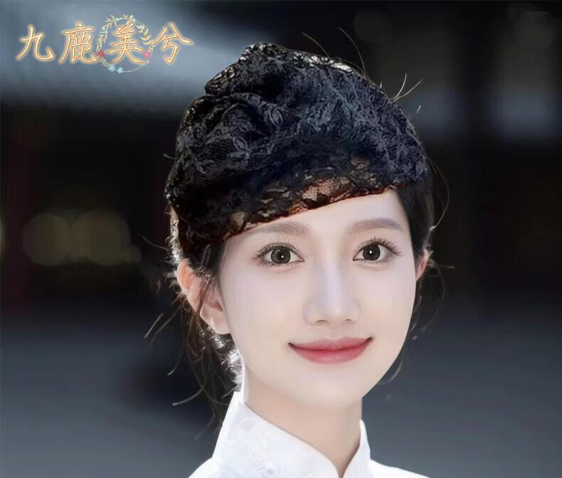 Jiulu Meixi's new lace wide-brimmed headband to cover white hair, French half hat, breathable hair pressure artifact, retro hairpin headwear for women, coffee