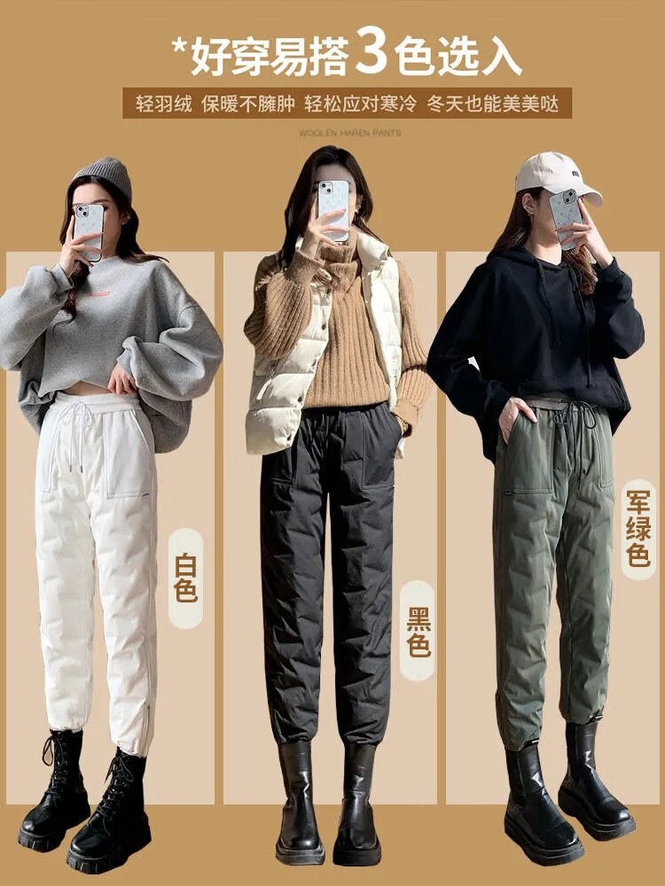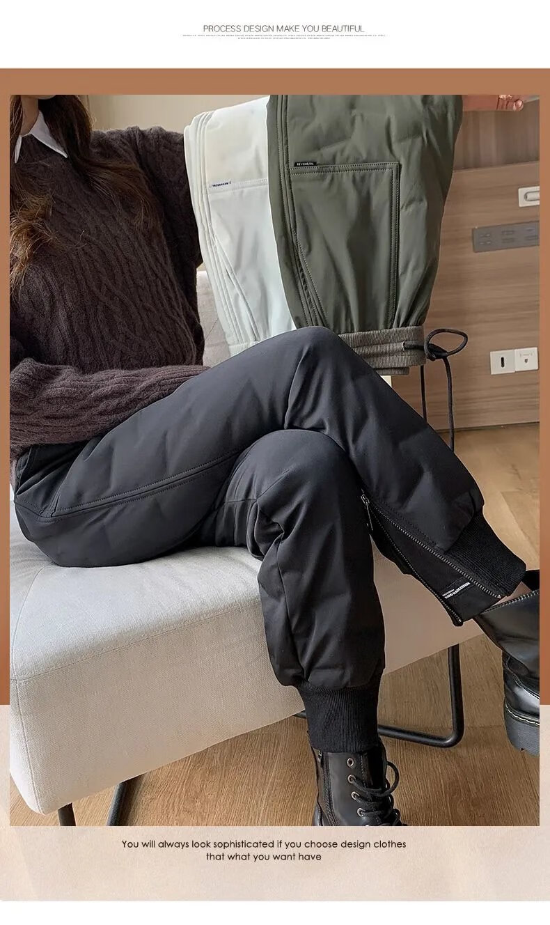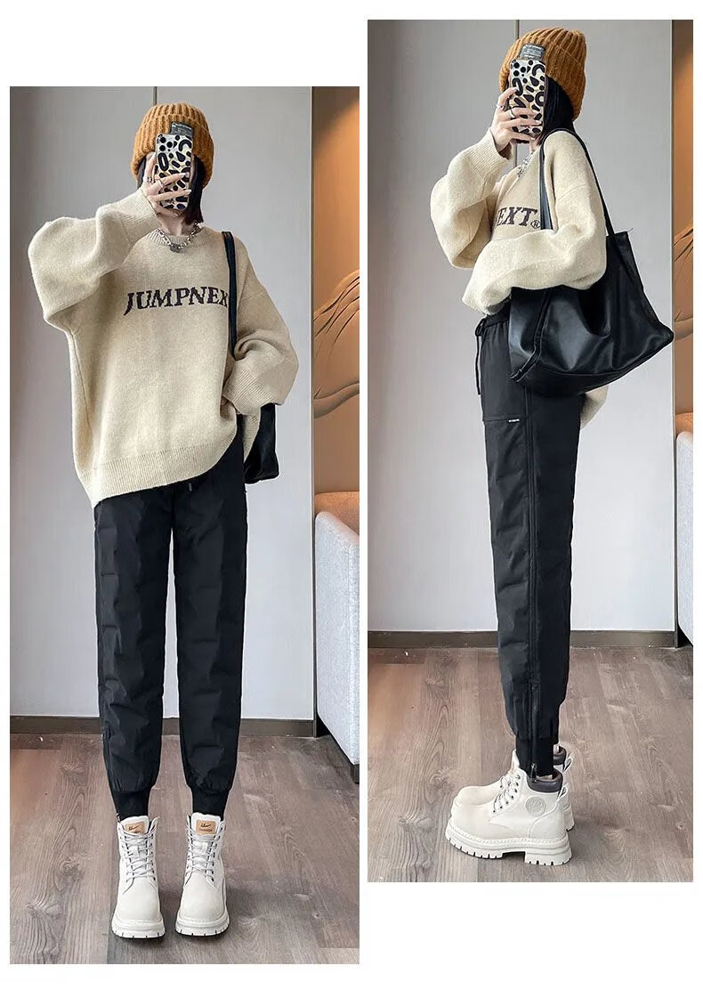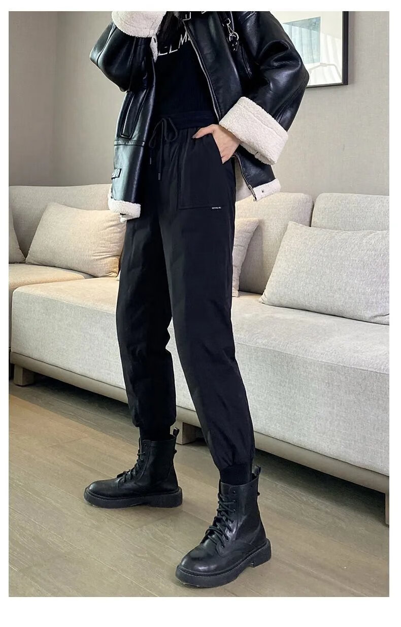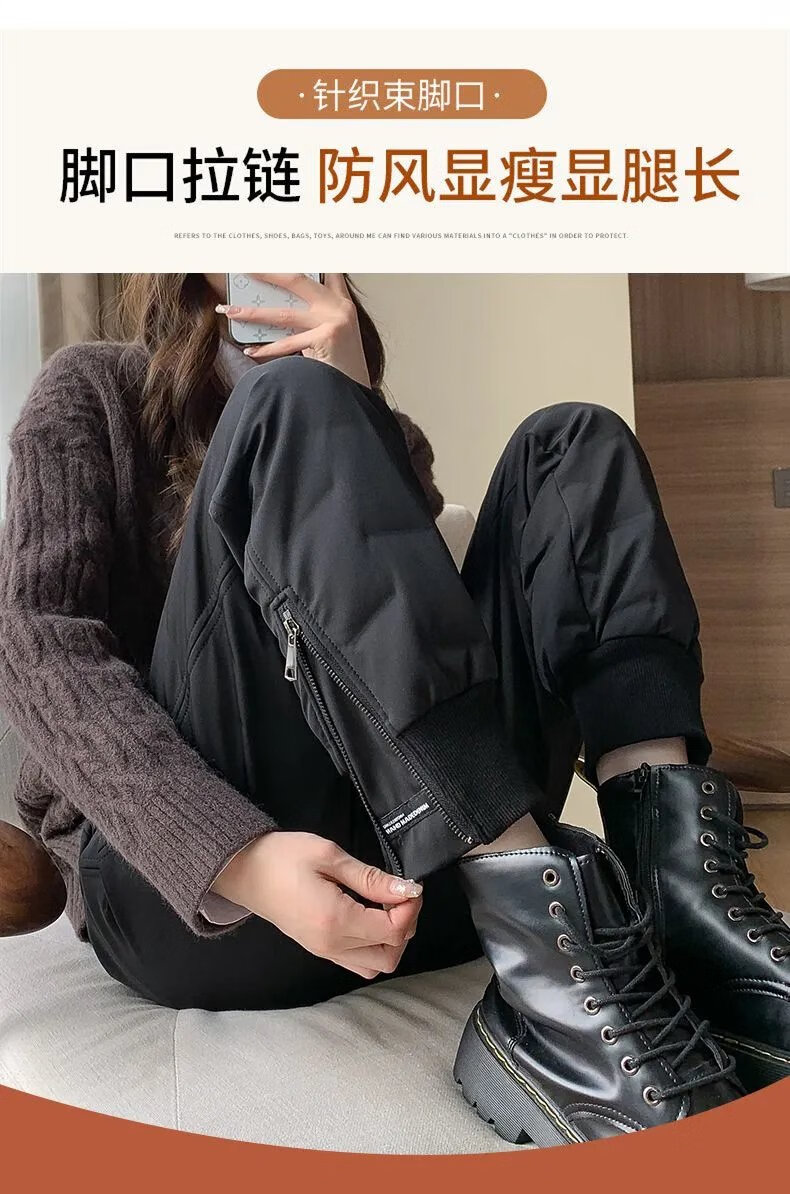 ROMON high-end winter outerwear fashion 2024 new cold-proof minus 40 degree long cotton pants warm down pants for women black 239# 2XL recommended 130-145Jin Jin equals 0.5 kg