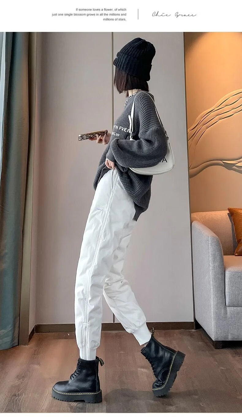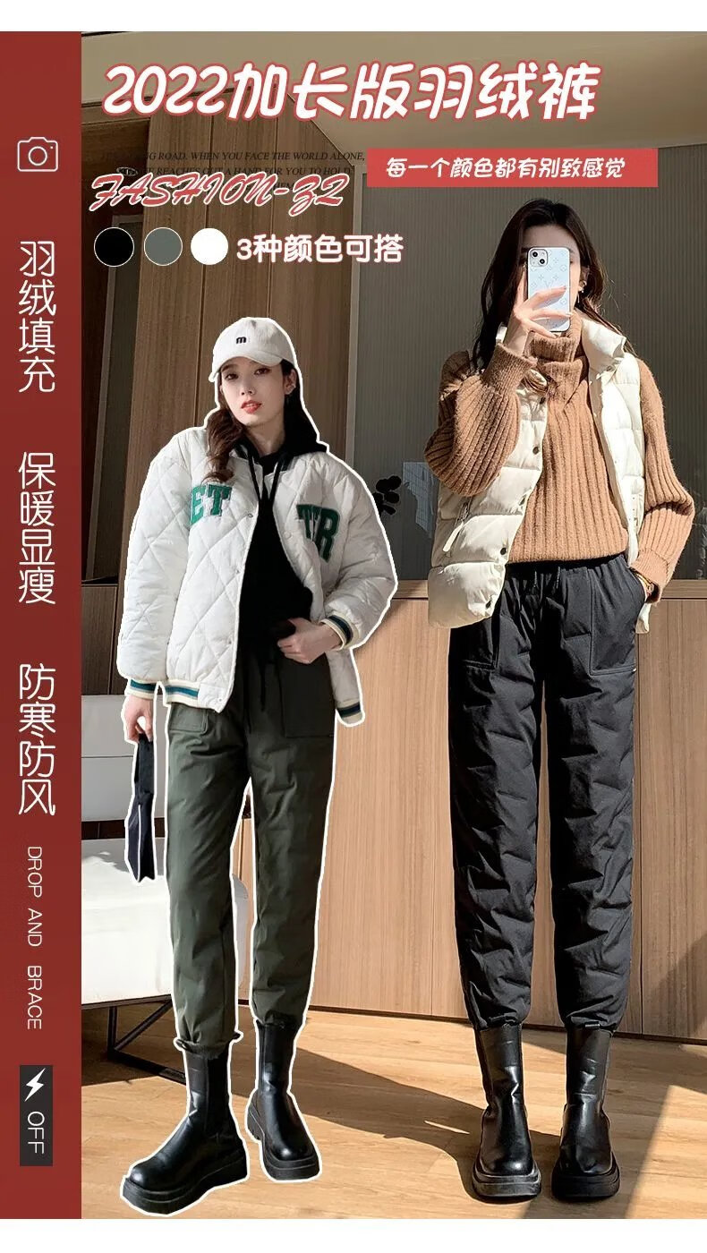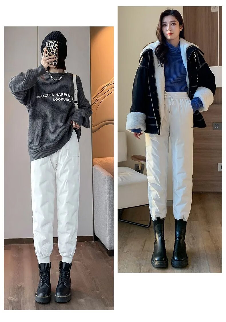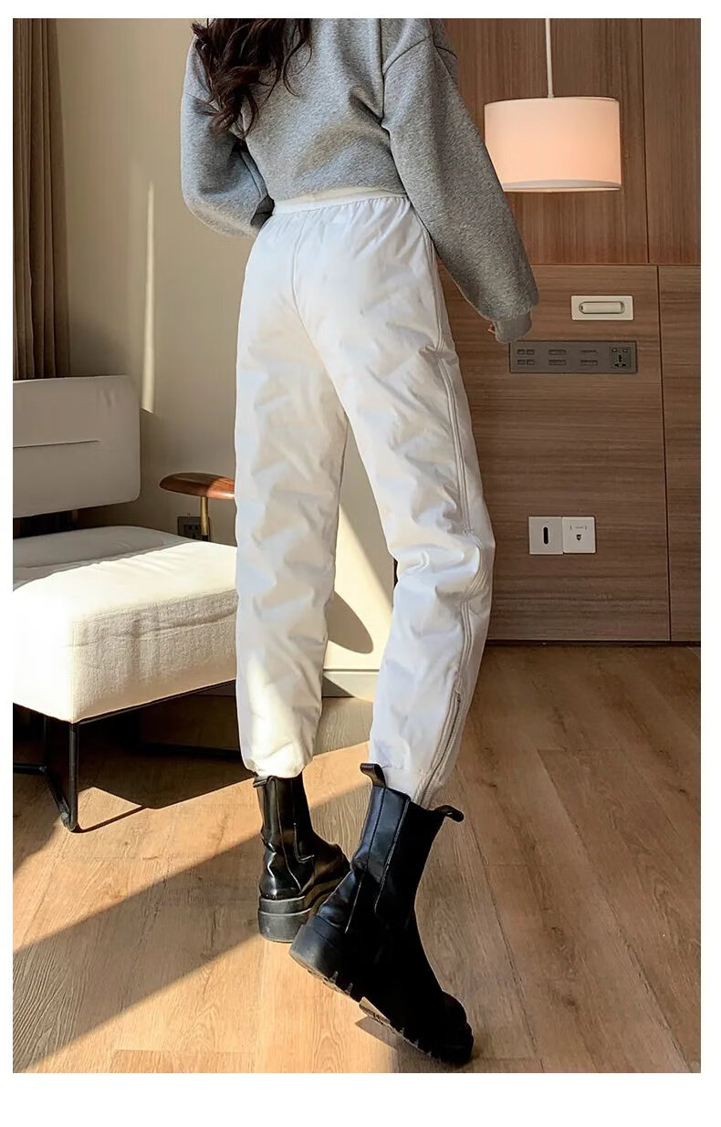 ROMON high-end winter outerwear fashion 2024 new cold-proof minus 40 degree long cotton pants warm down pants for women black 239# 2XL recommended 130-145Jin Jin equals 0.5 kg