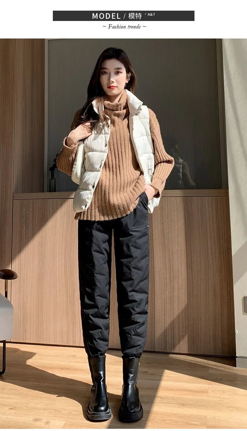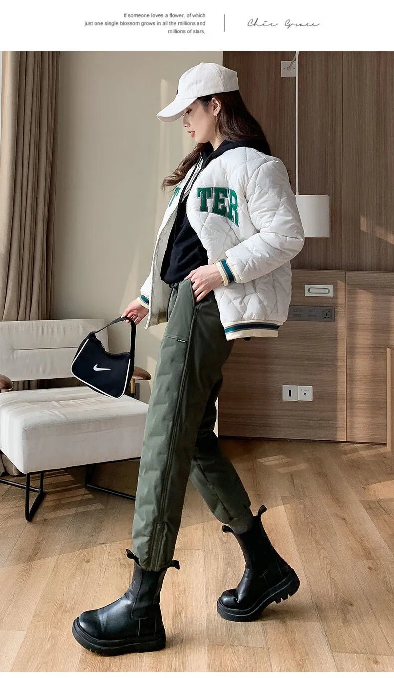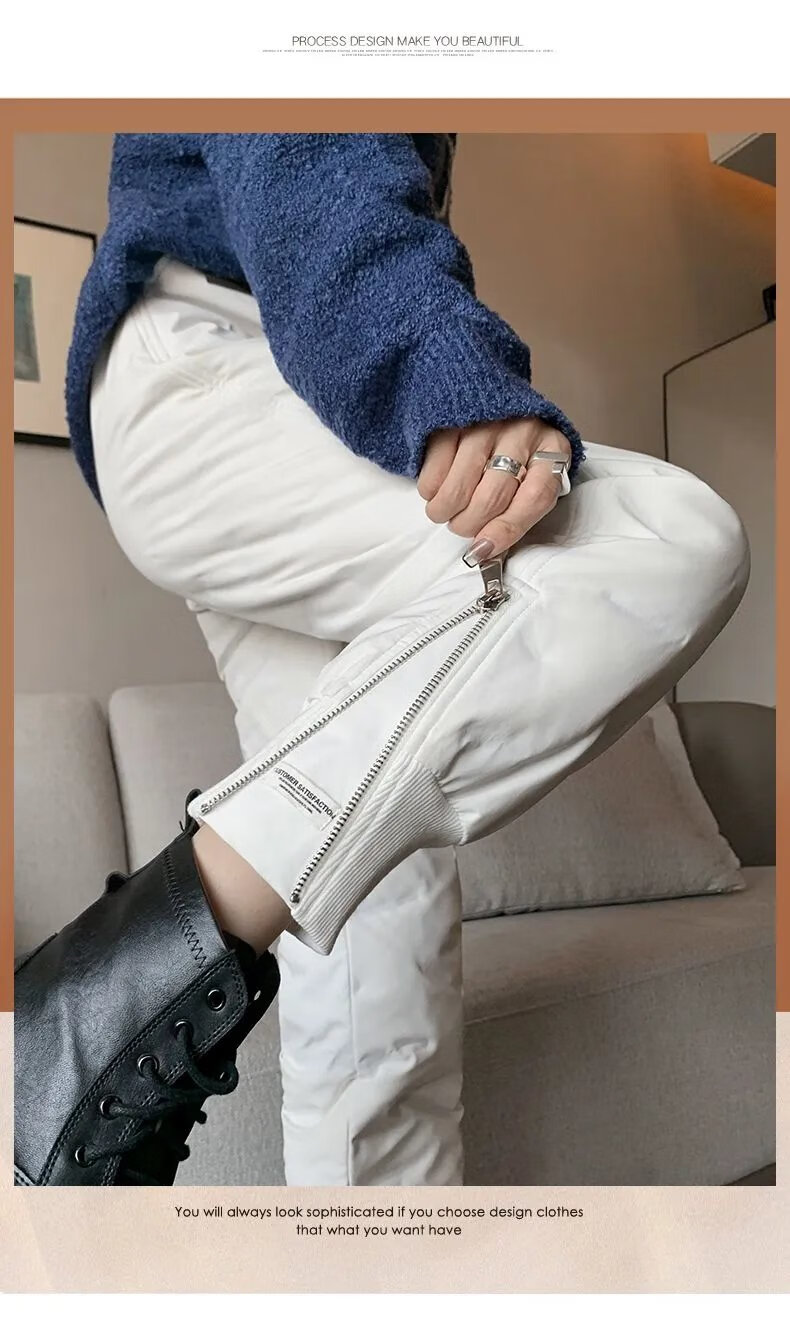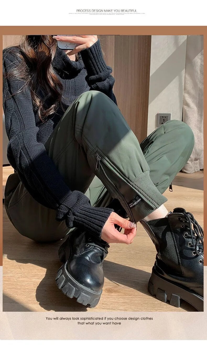 ROMON high-end winter outerwear fashion 2024 new cold-proof minus 40 degree long cotton pants warm down pants for women black 239# 2XL recommended 130-145Jin Jin equals 0.5 kg