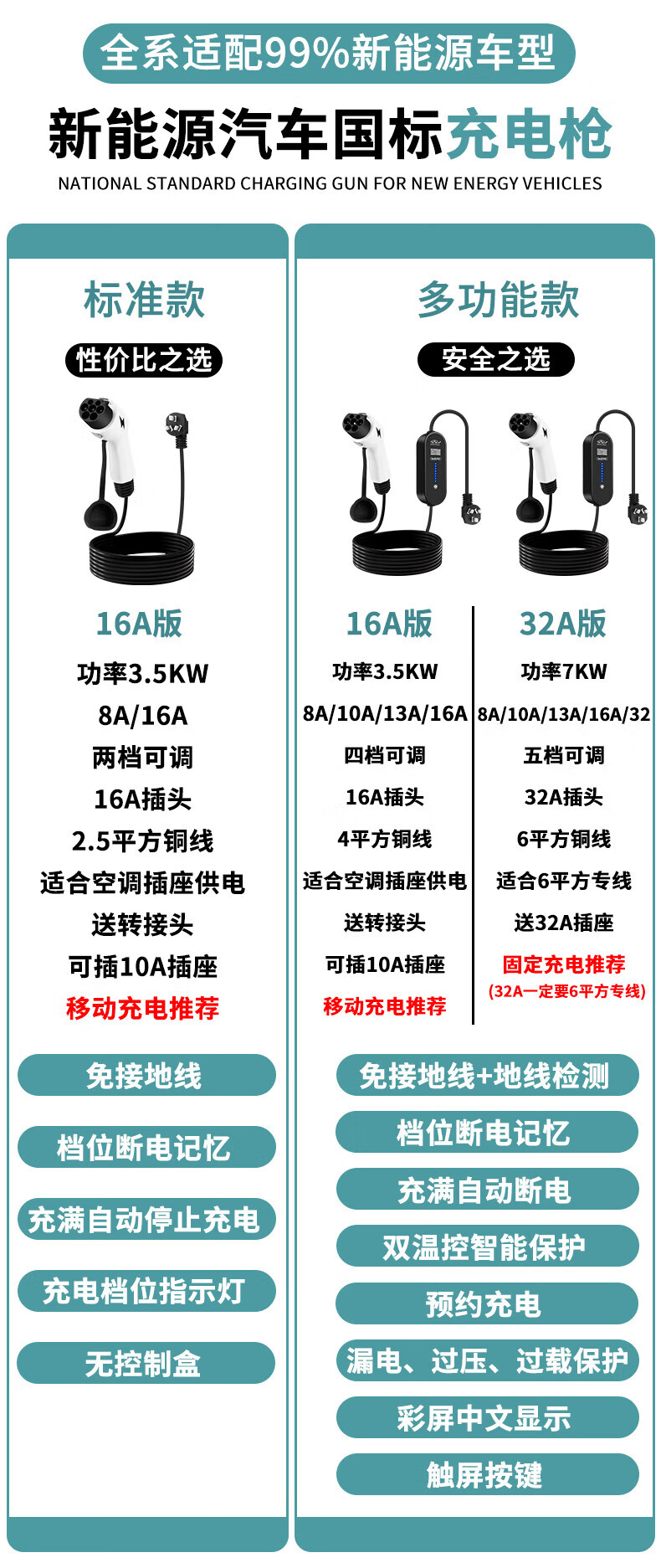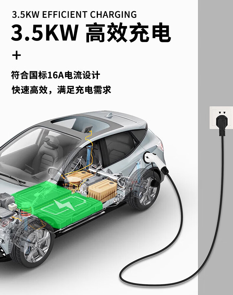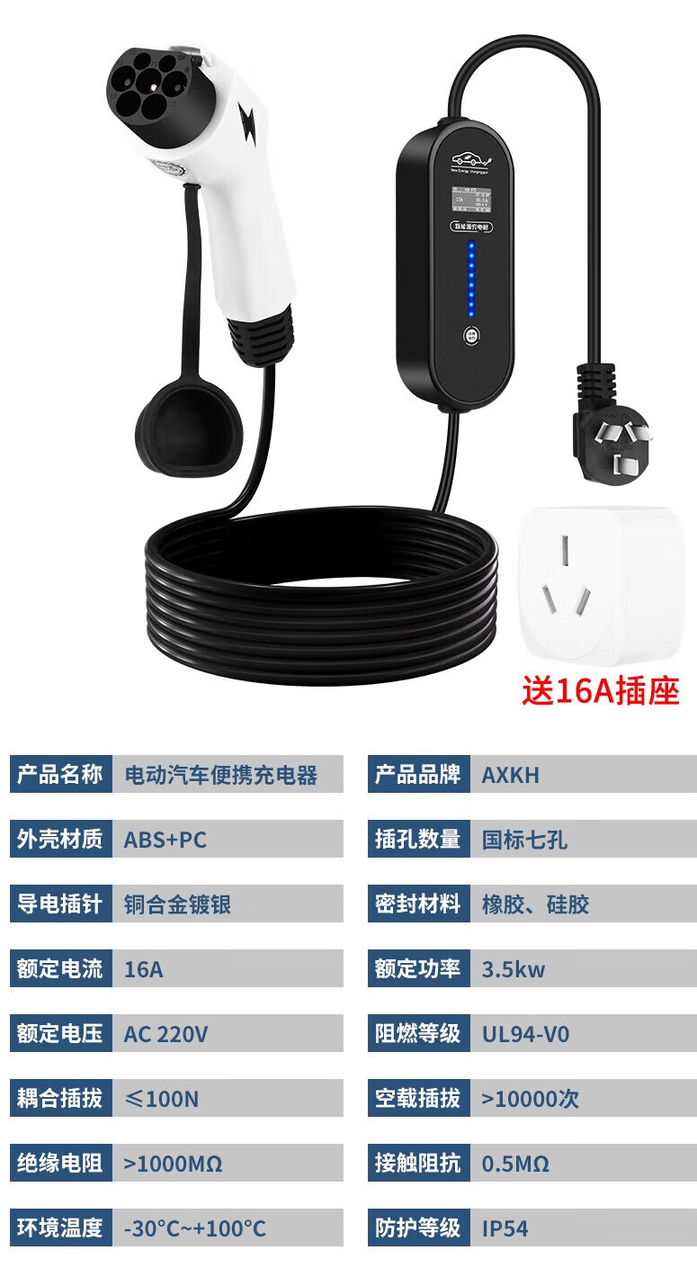 AXKH car-mounted new energy vehicle universal charging gun pile 3.5kw portable 7KW is suitable for BYD Tang, Song, Hanyuan, ev Qin plus Seagull Dolphin Geely Star Wish Standard model two-speed power adjustment/full power cutoff 3 meters