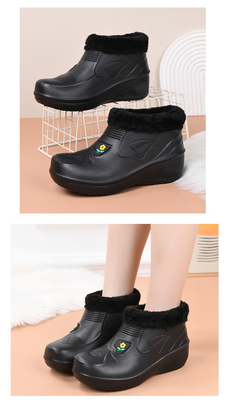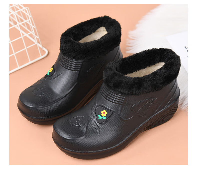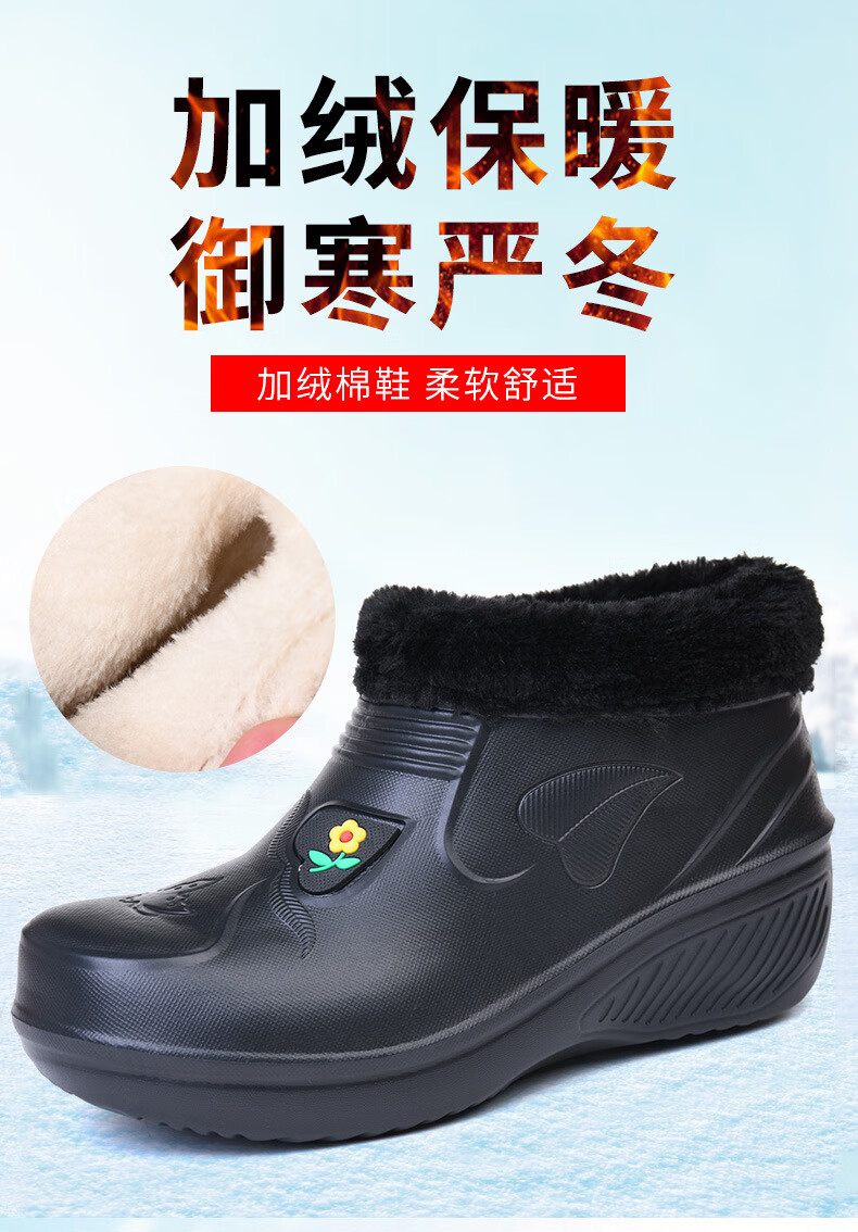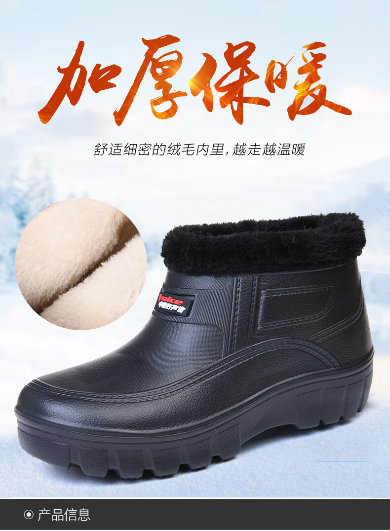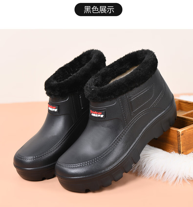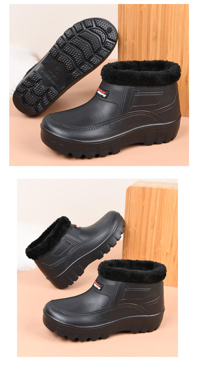 Waterproof cotton shoes for men in winter, lightweight and warm, anti-ski boots, rain boots, kitchen outdoor car wash cold storage work shoes, EVA short boots black - Men's 42, one size too small