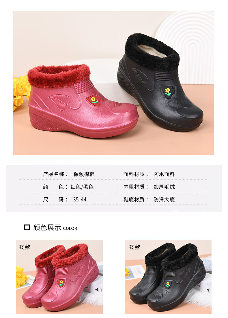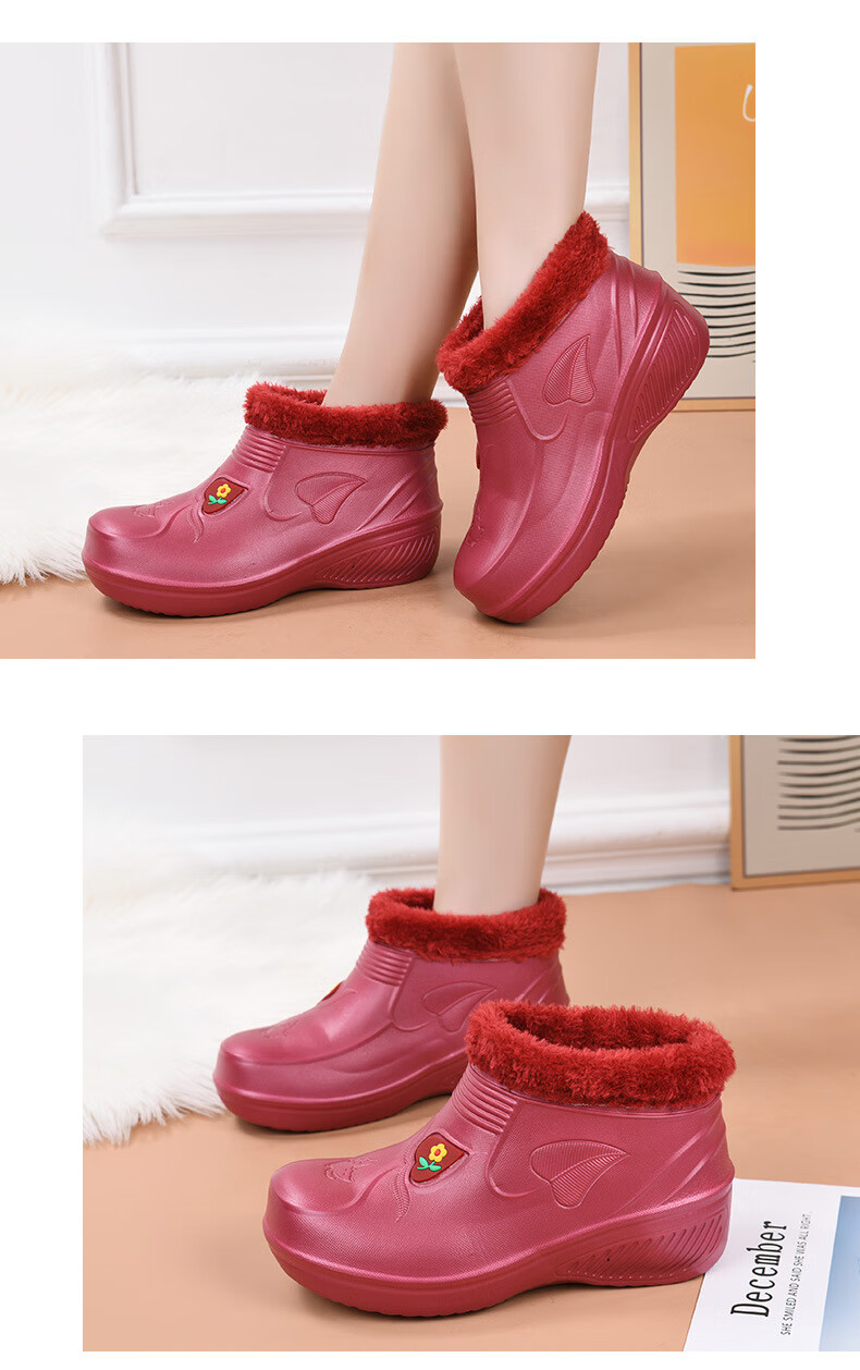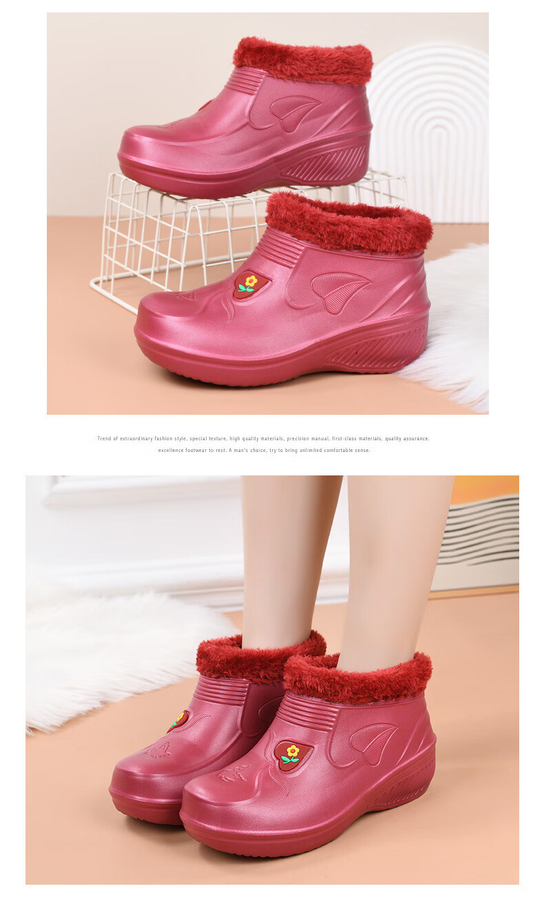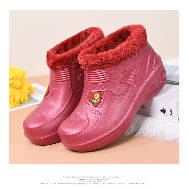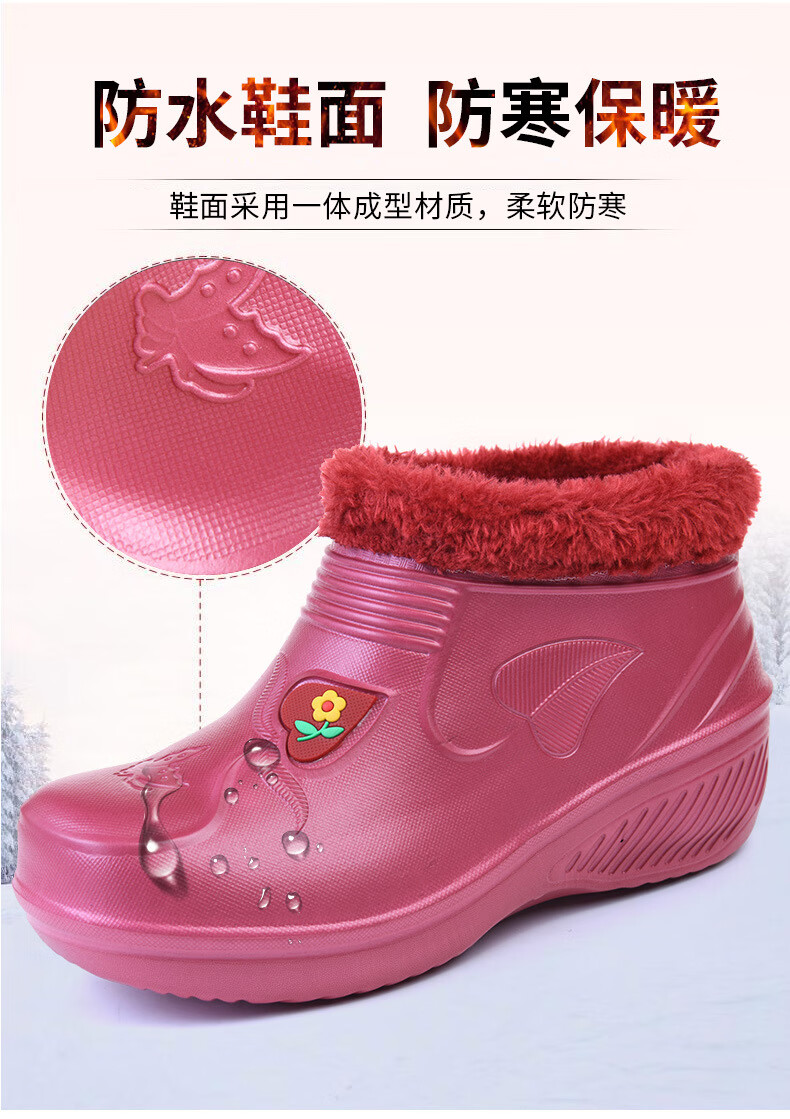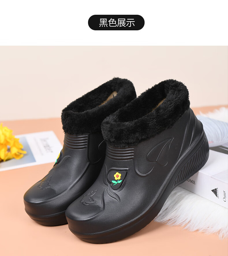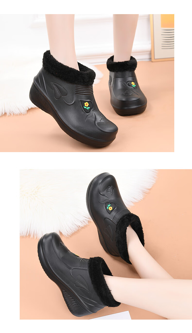Waterproof cotton shoes for men in winter, lightweight and warm, anti-ski boots, rain boots, kitchen outdoor car wash cold storage work shoes, EVA short boots black - Men's 42, one size too small
