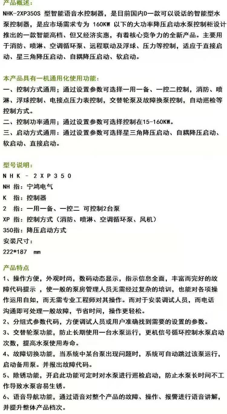 NHK-2XP350S Ninghong intelligent water pump controller star-delta one-use and one-standby water pump control device 2XP350