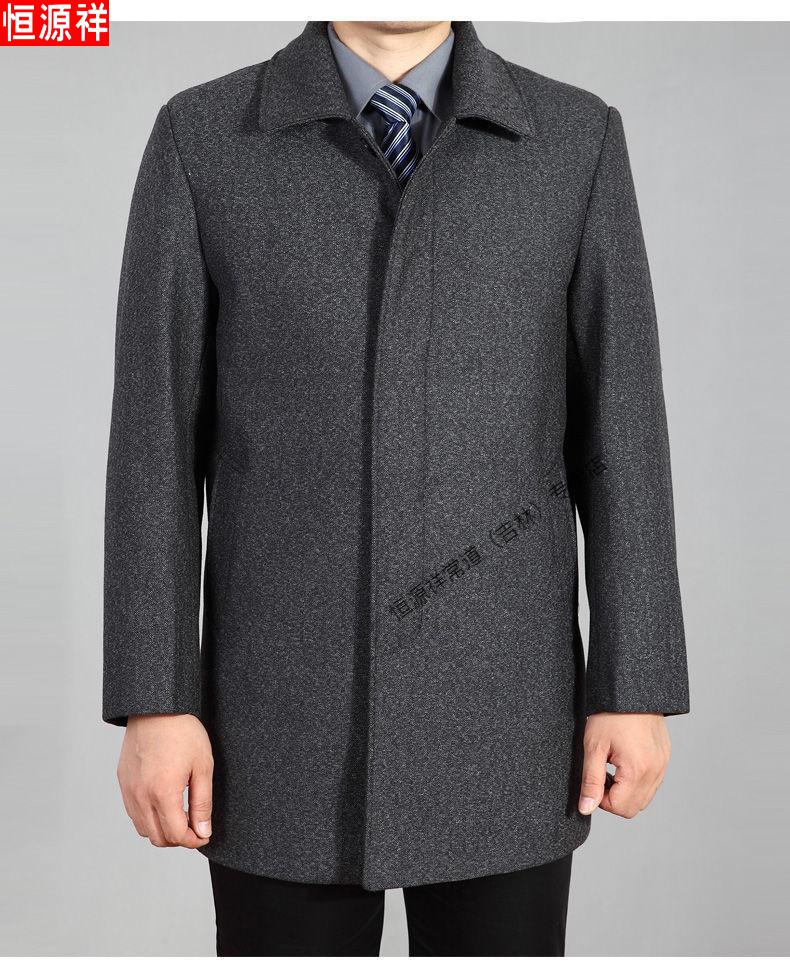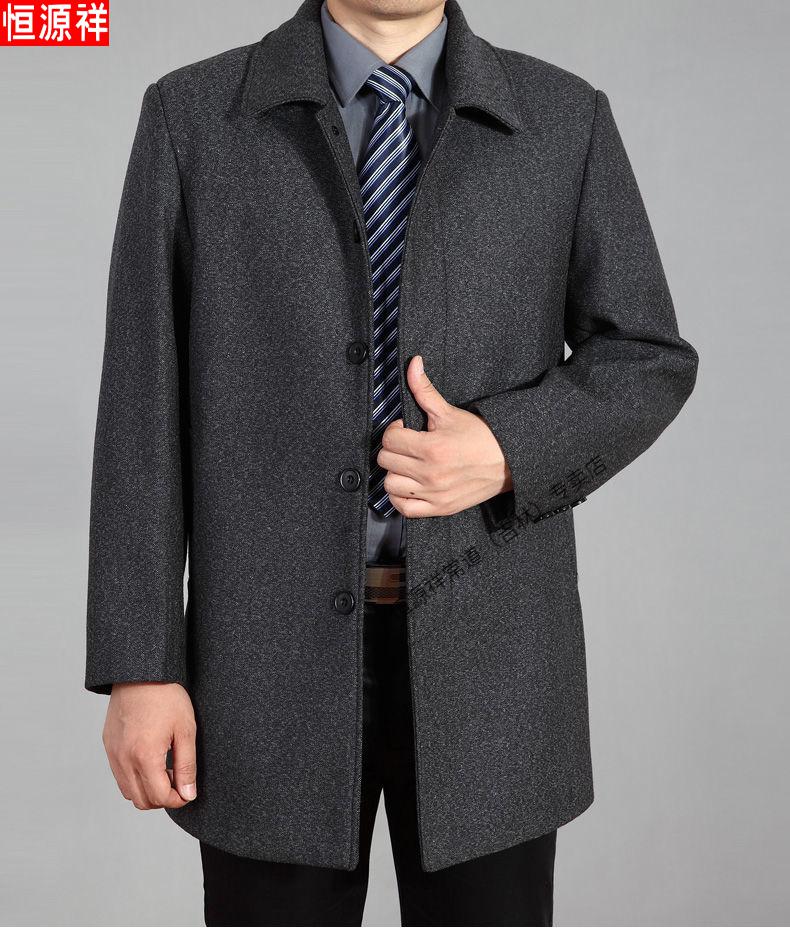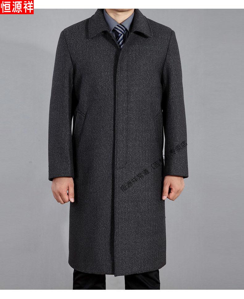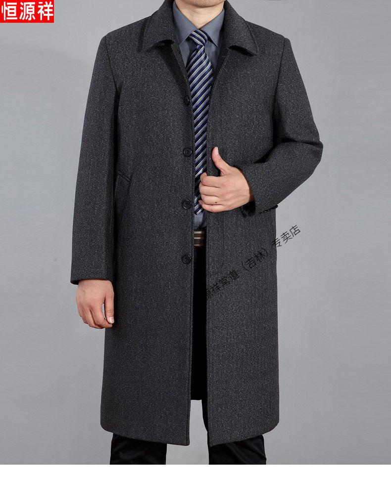 Hengyuanxiang middle-aged and elderly autumn and winter woolen coat long knee-length men's woolen woolen coat thickened dad men's long coat long black medium thick 1310 185/XXL