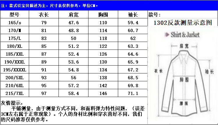 China (cm) 165 / 88-90 170 / 96-98 175 / 108-110 180 / 118-122 185 / 126-130