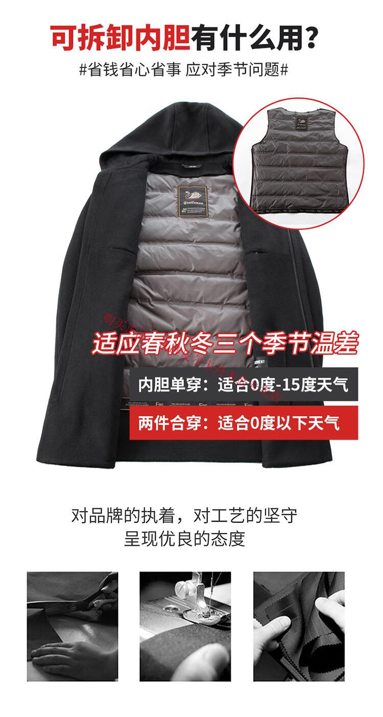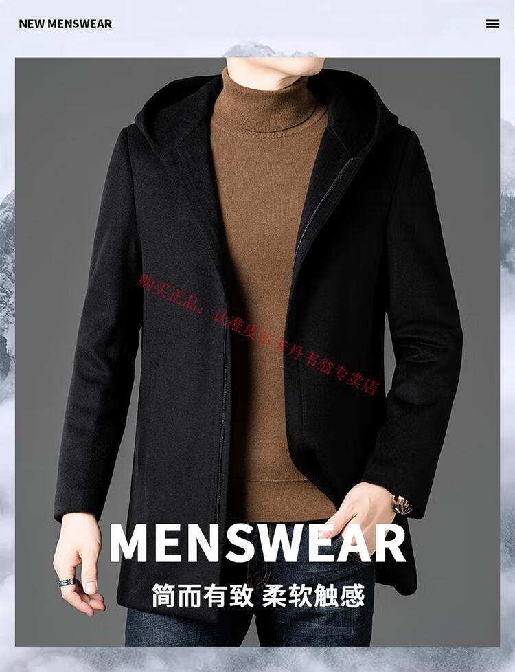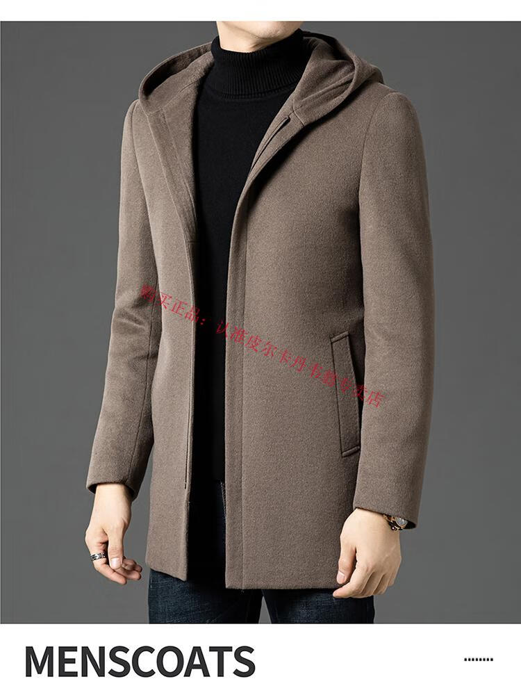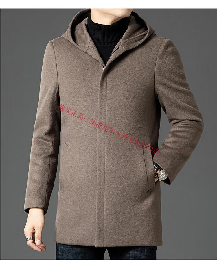 Pierre Cardin Autumn and Winter Men's Casual Hooded Double-sided Wool Coat Autumn and Winter Removable Down Jacket Lined Wool Coat Double-sided Wool-Khaki High-End Down Liner M 170 Recommended 125Jin Jin is equal to less than 0.5kg