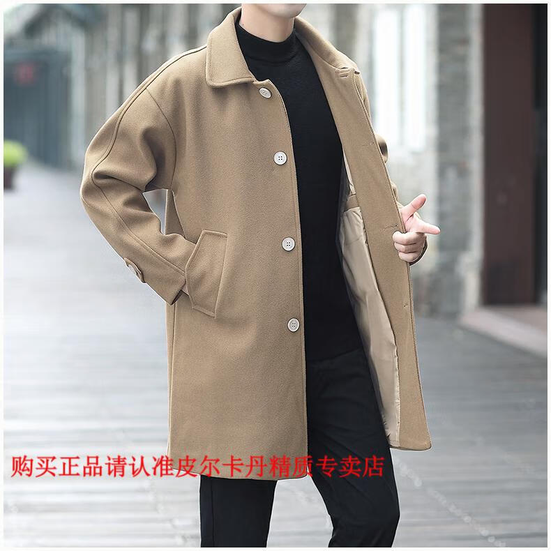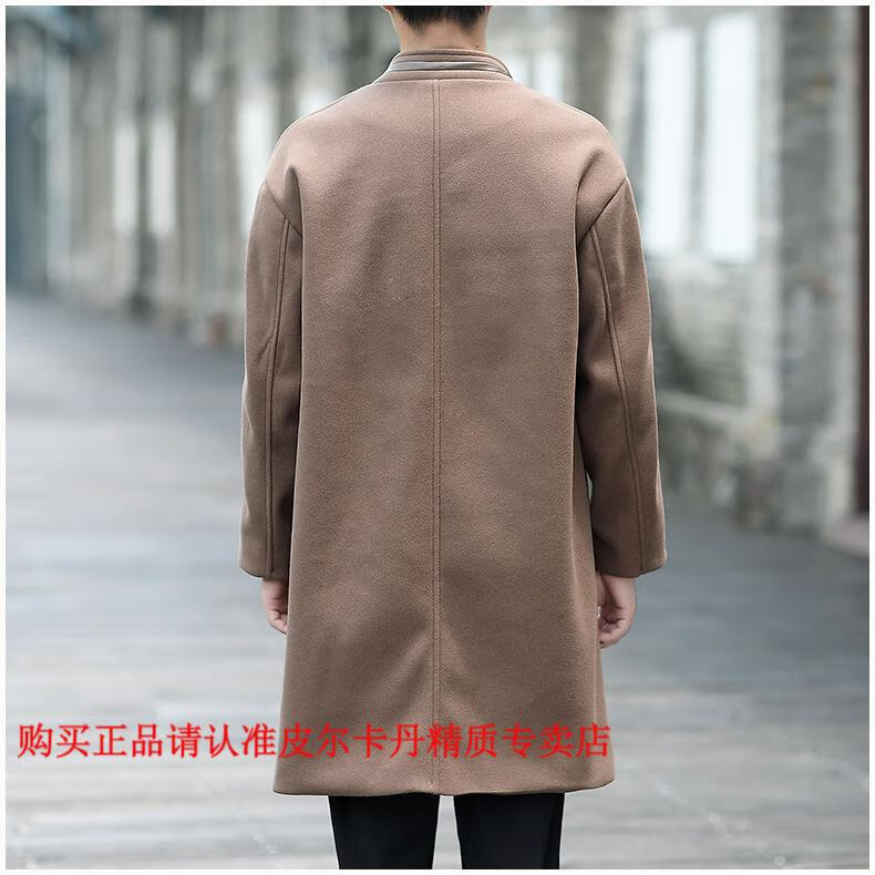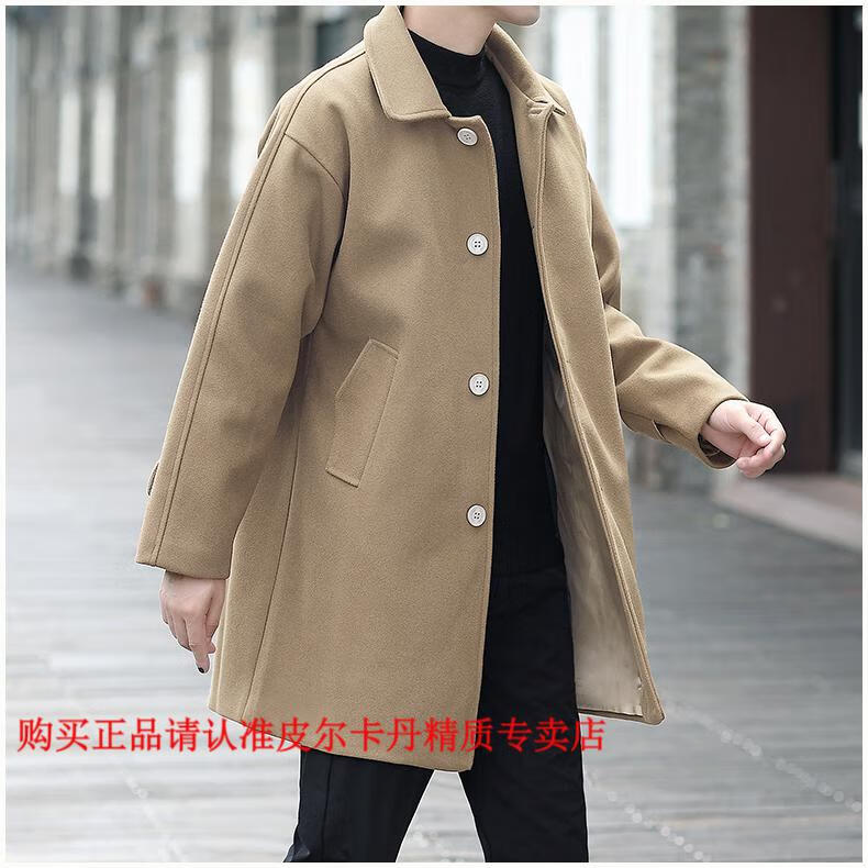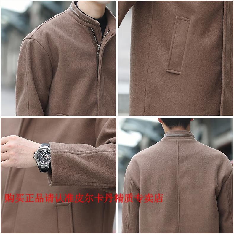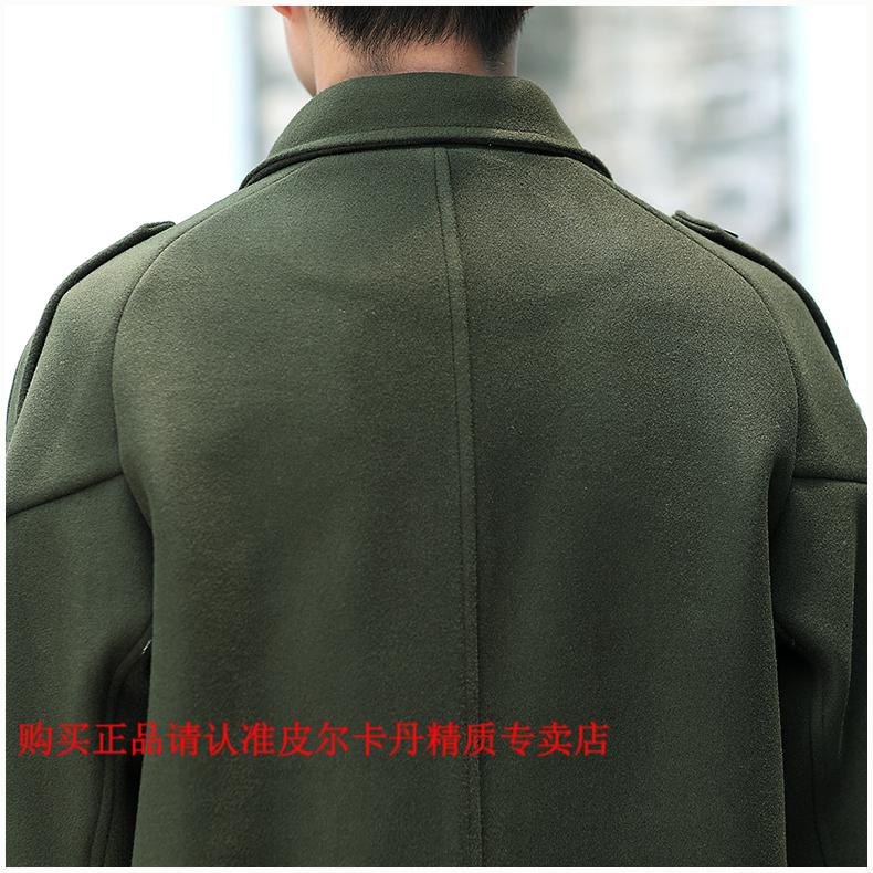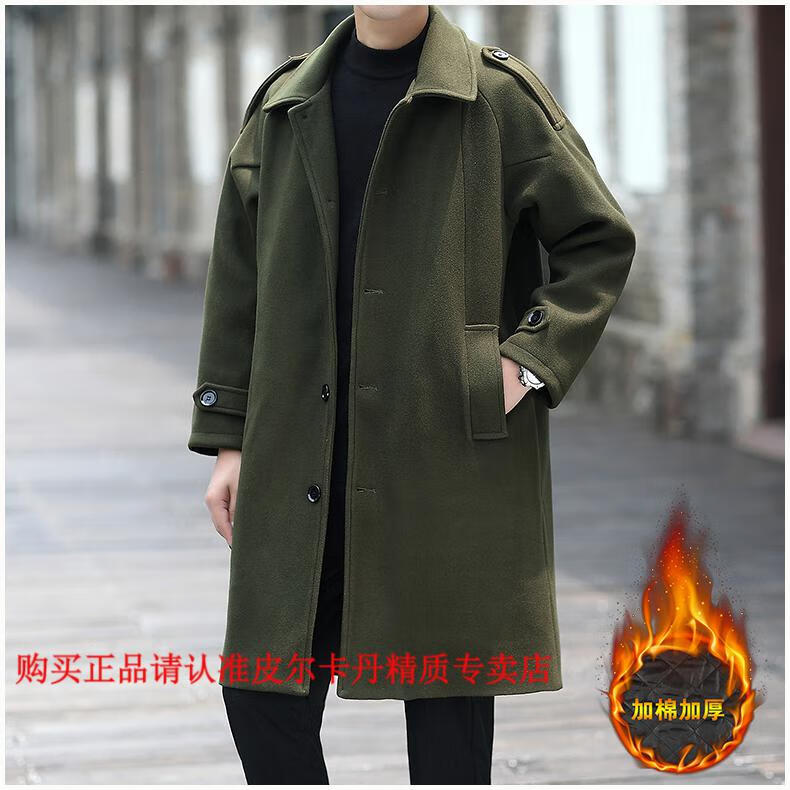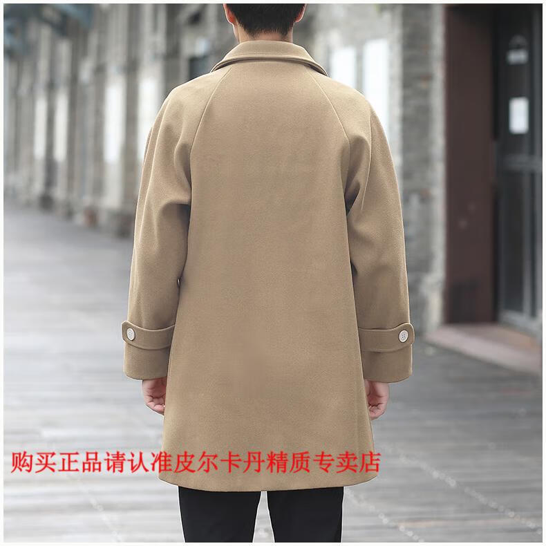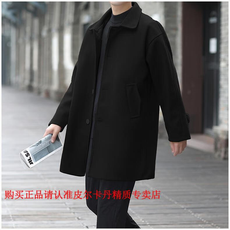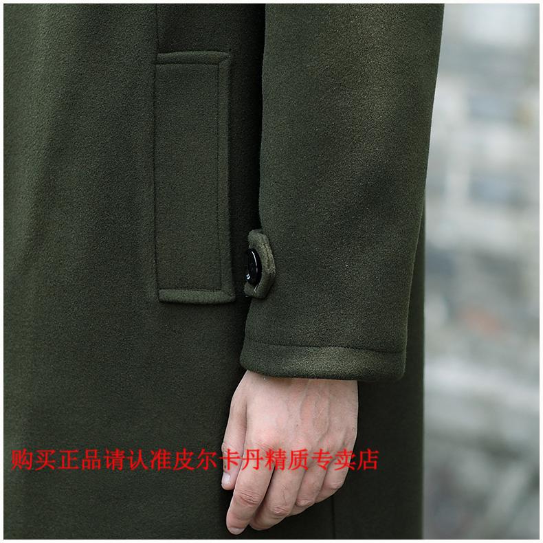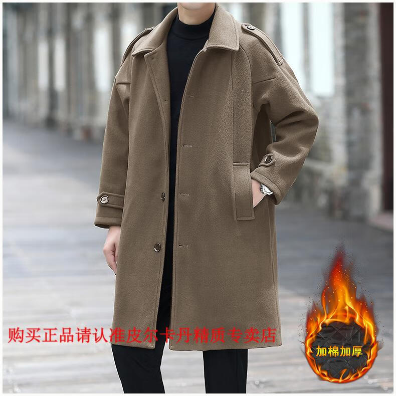 Pierre Cardin autumn and winter new trendy men's thickened mid-length windbreaker casual woolen coat loose and handsome woolen coat cotton black thickened M