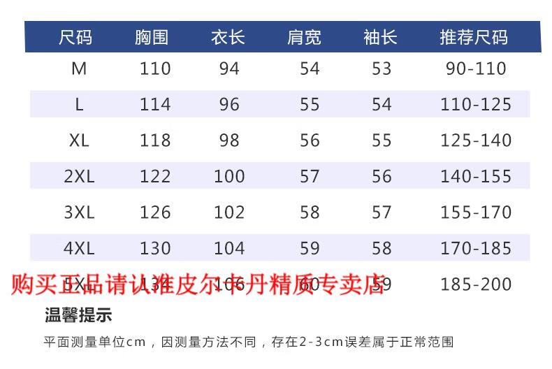 China (cm) 165 / 88-90 170 / 96-98 175 / 108-110 180 / 118-122 185 / 126-130