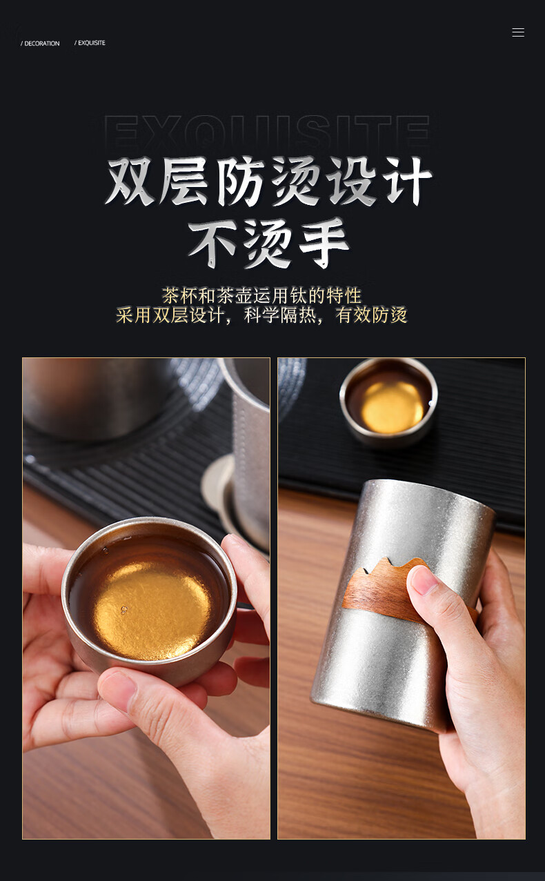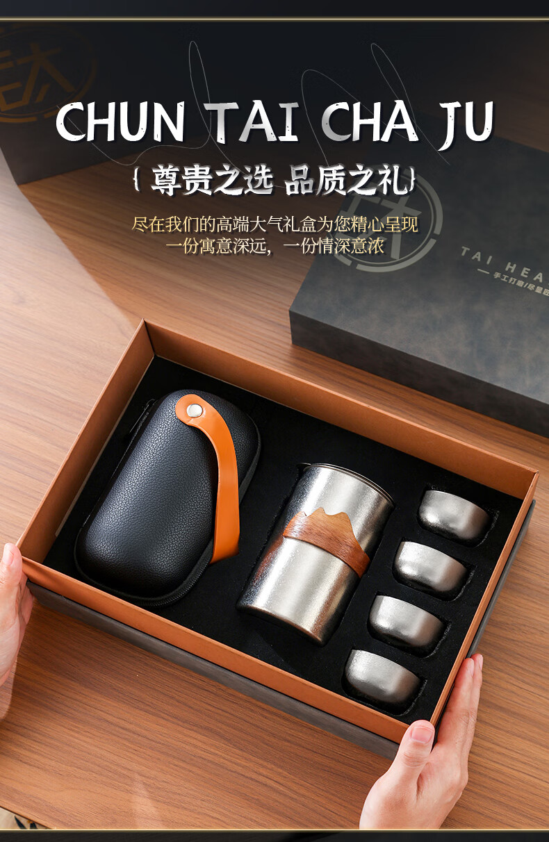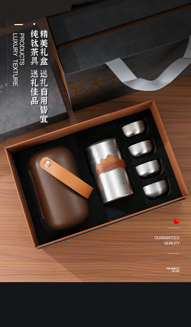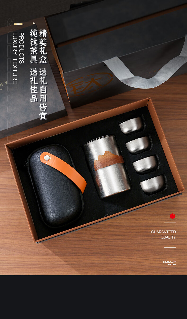 GEEGO pure titanium travel tea set portable quick cup teapot travel tea cup outdoor tea set gift box set gift box packaging teapot + tea cup * 4 + brown storage bag