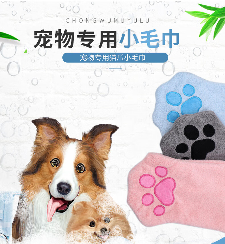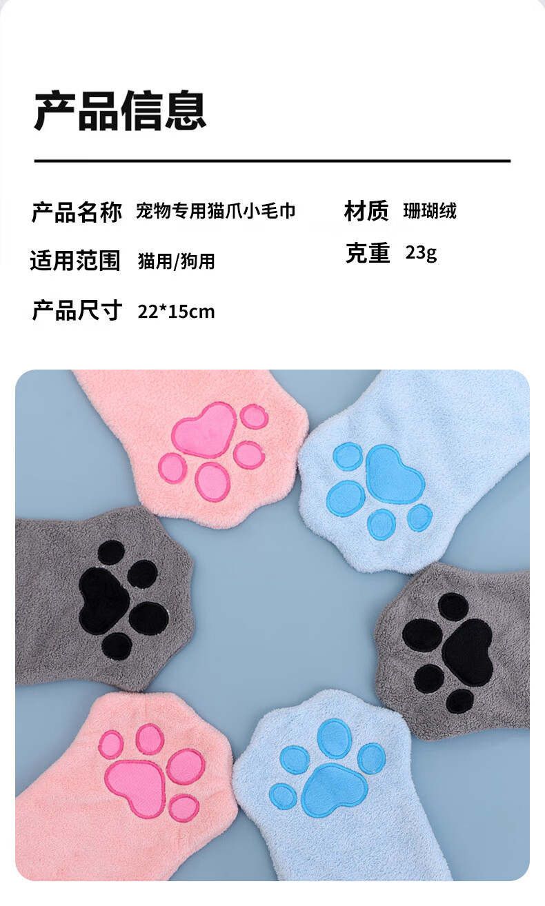 OUOETY pet towel glove type special quick-drying absorbent cleaning towel cat bath towel pet supplies blue one pair 22*15cm