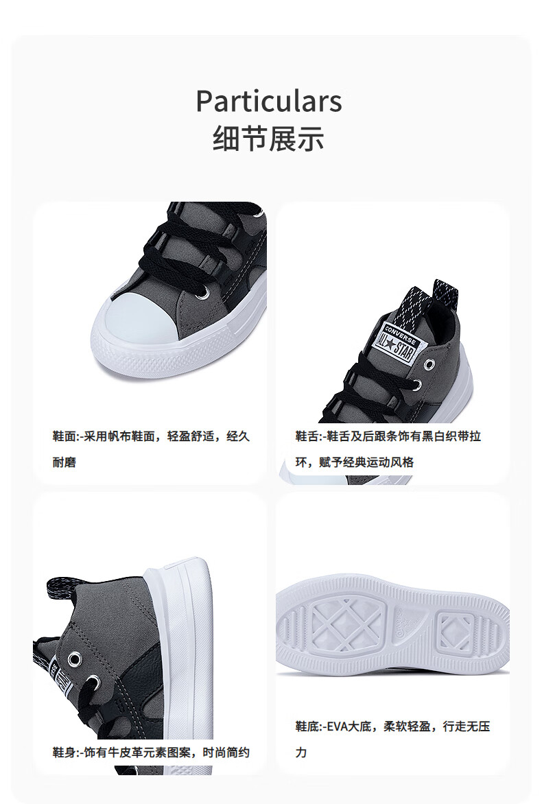 Converse Converse All Star children's shoes for boys and girls low-top canvas shoes winter new children's all-match casual shoes gray 28 recommended foot length 17cm
