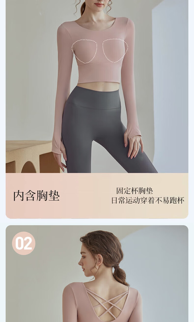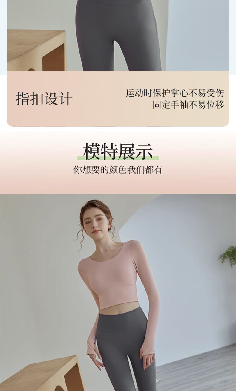 Lu Geli Yoga Wear Women's Autumn and Winter Sports Suit with Breast Pad and Beautiful Back Two-piece Long Sleeve Fitness Pilates Training Suit Pink Gray Yoga Suit L Recommended 105-120 Jin Jin equals 0.5 kg