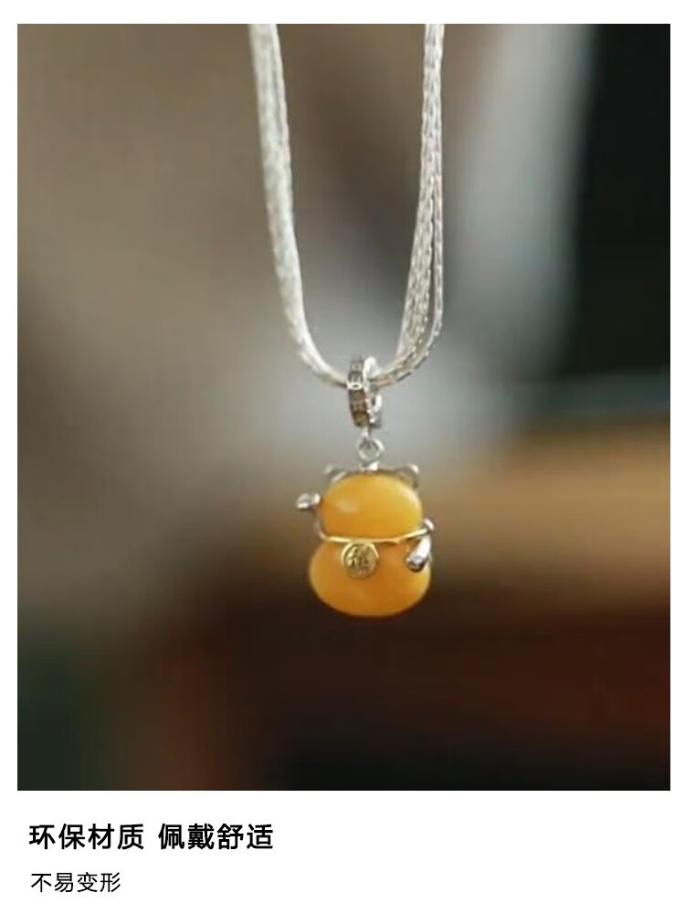 Luoyi 925 silver amber beeswax cat pendant necklace exquisite pendant new Chinese style random buckle pendant clavicle chain beeswax pendant + 925 silver necklace