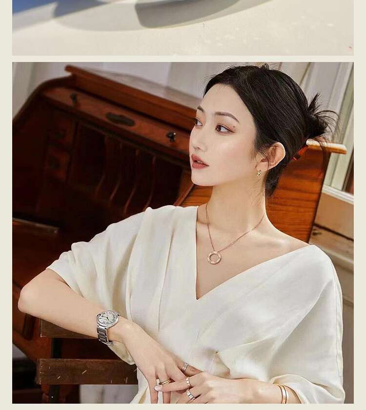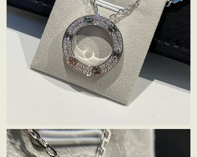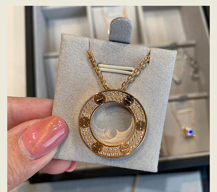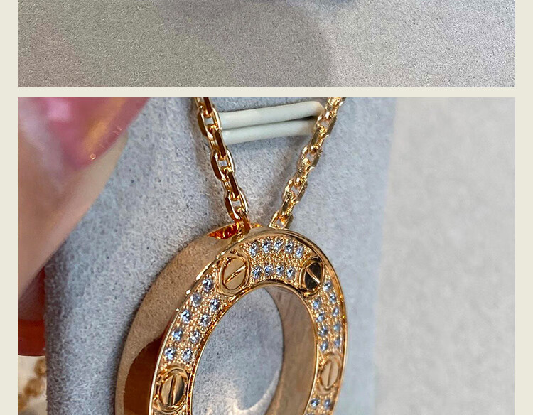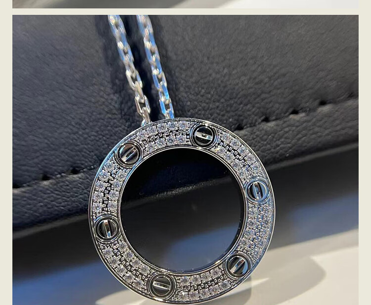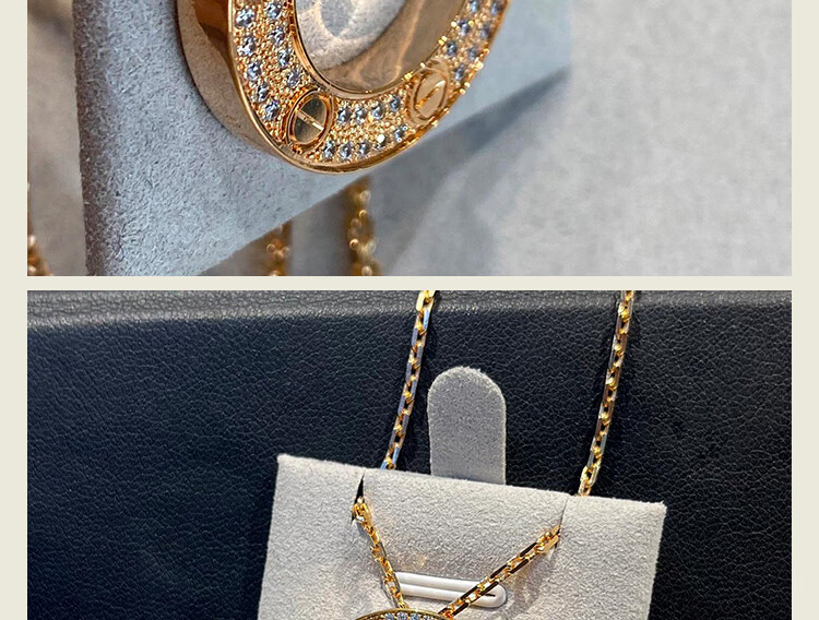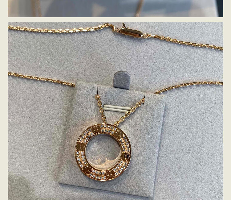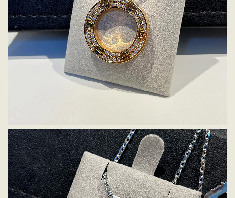 DR-FLVVS 18K gold-plated pancake necklace full of diamonds and rose gold round cake pendant 18K light luxury niche design white rose gold full of diamonds necklace