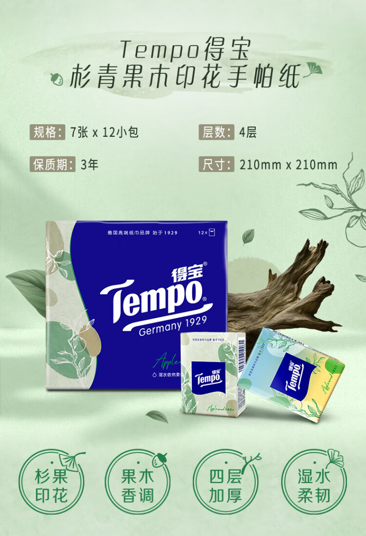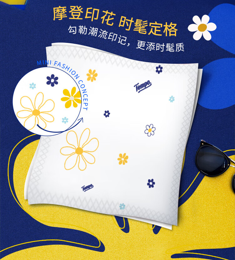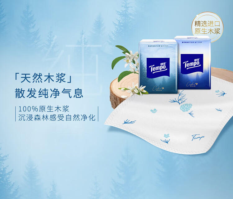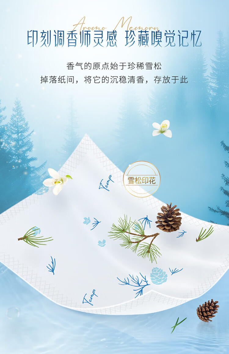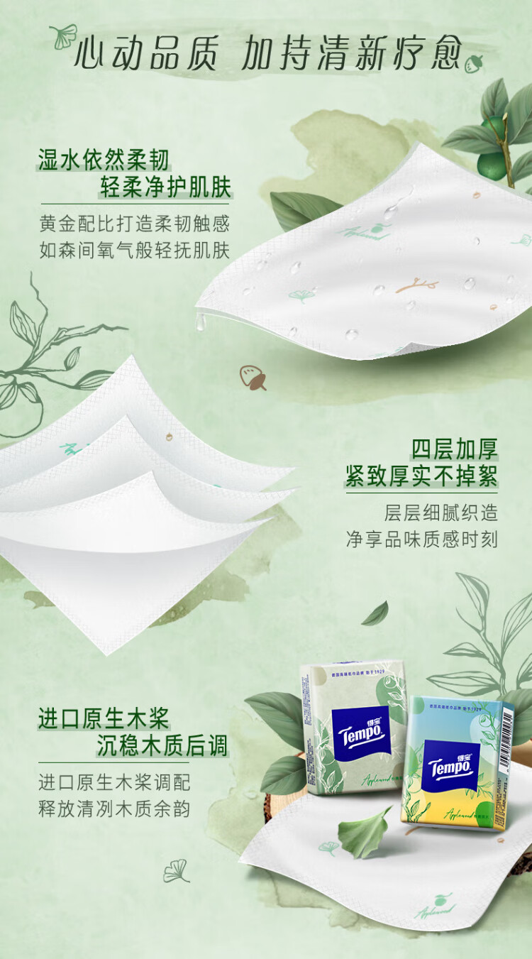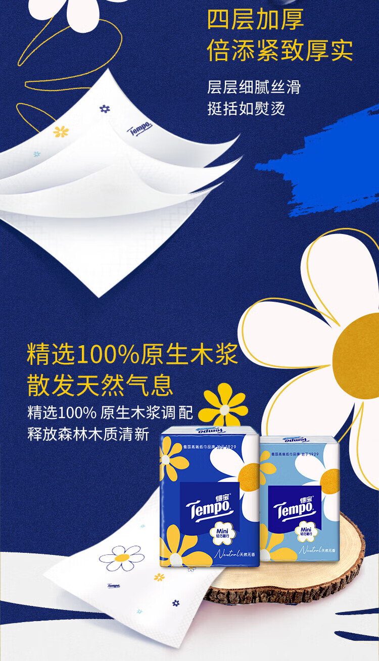 Depot Tempo Depot handkerchief paper mini portable paper towel hand towel four-layer thickened napkin paper cedar scented printed handkerchief paper 4 layers 7 sheets * 12 pack
