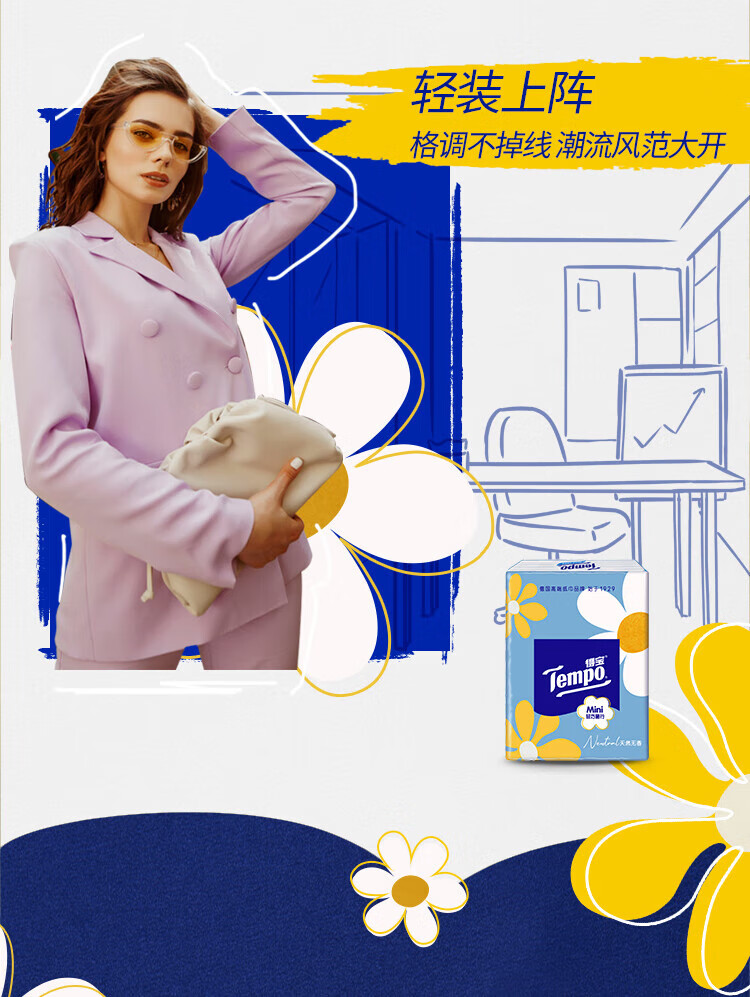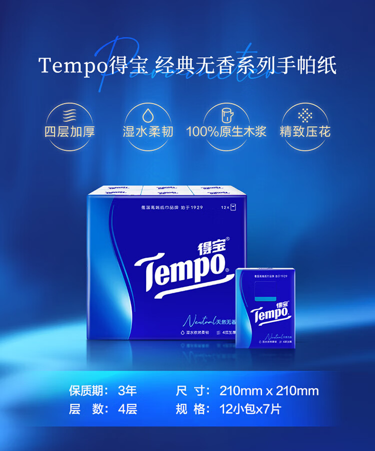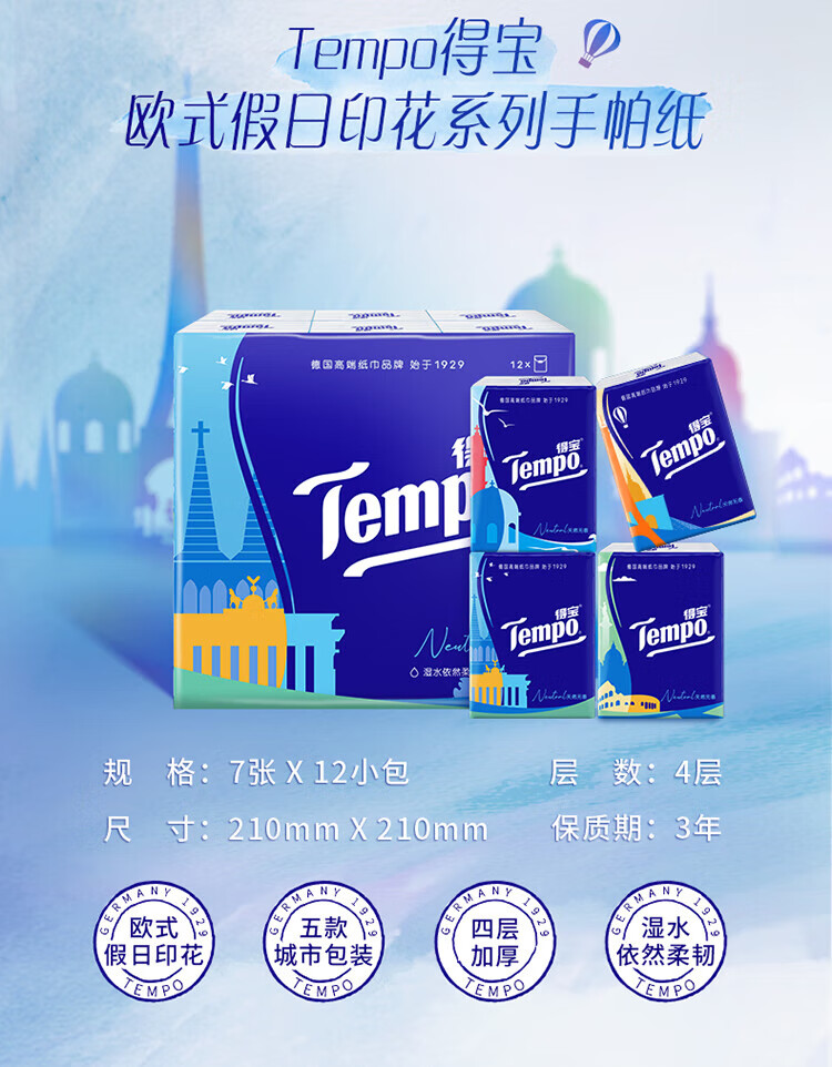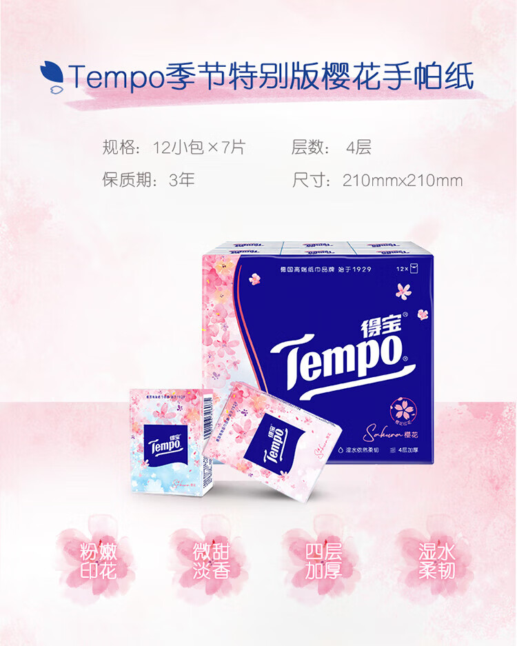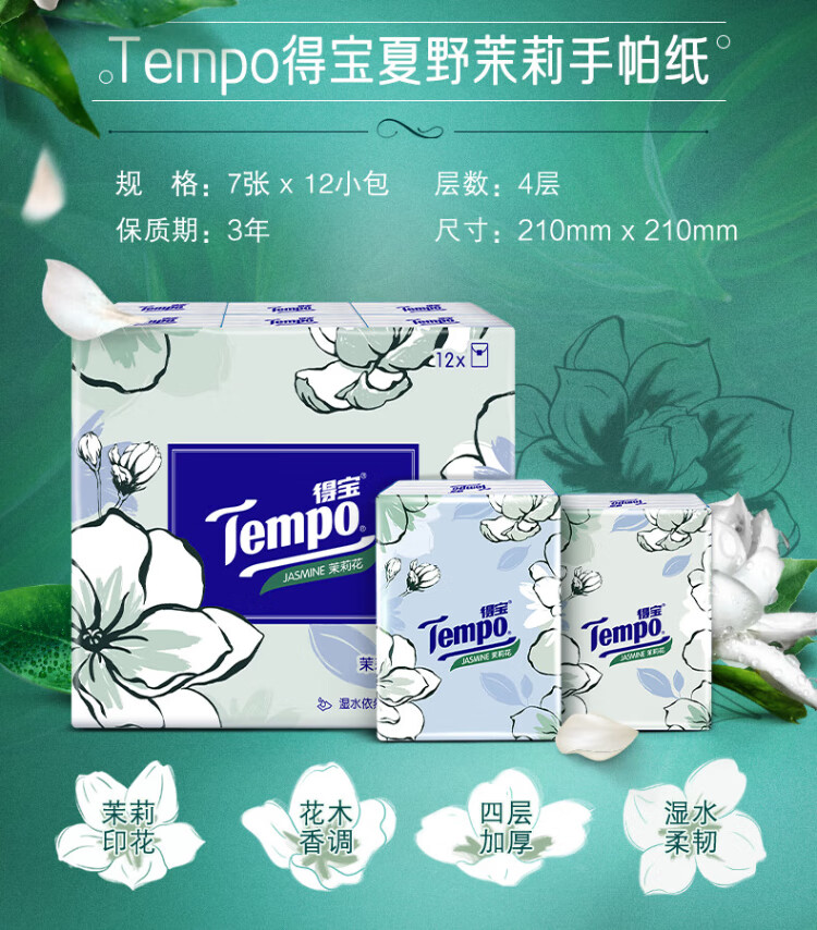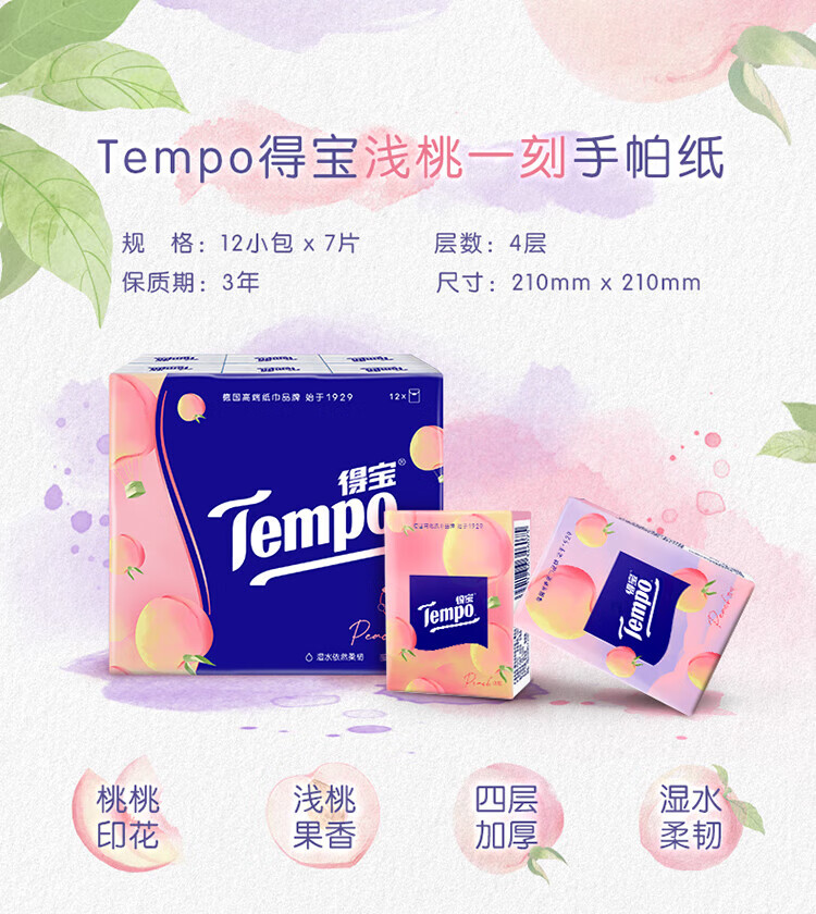 Depot Tempo Depot handkerchief paper mini portable paper towel hand towel four-layer thickened napkin paper cedar scented printed handkerchief paper 4 layers 7 sheets * 12 pack