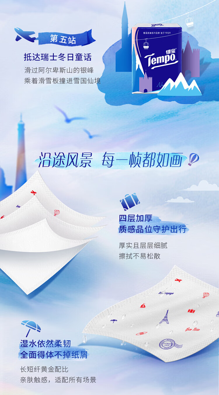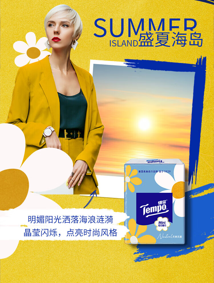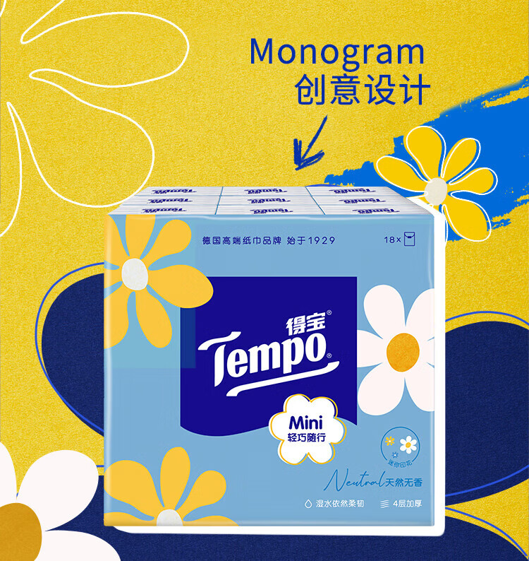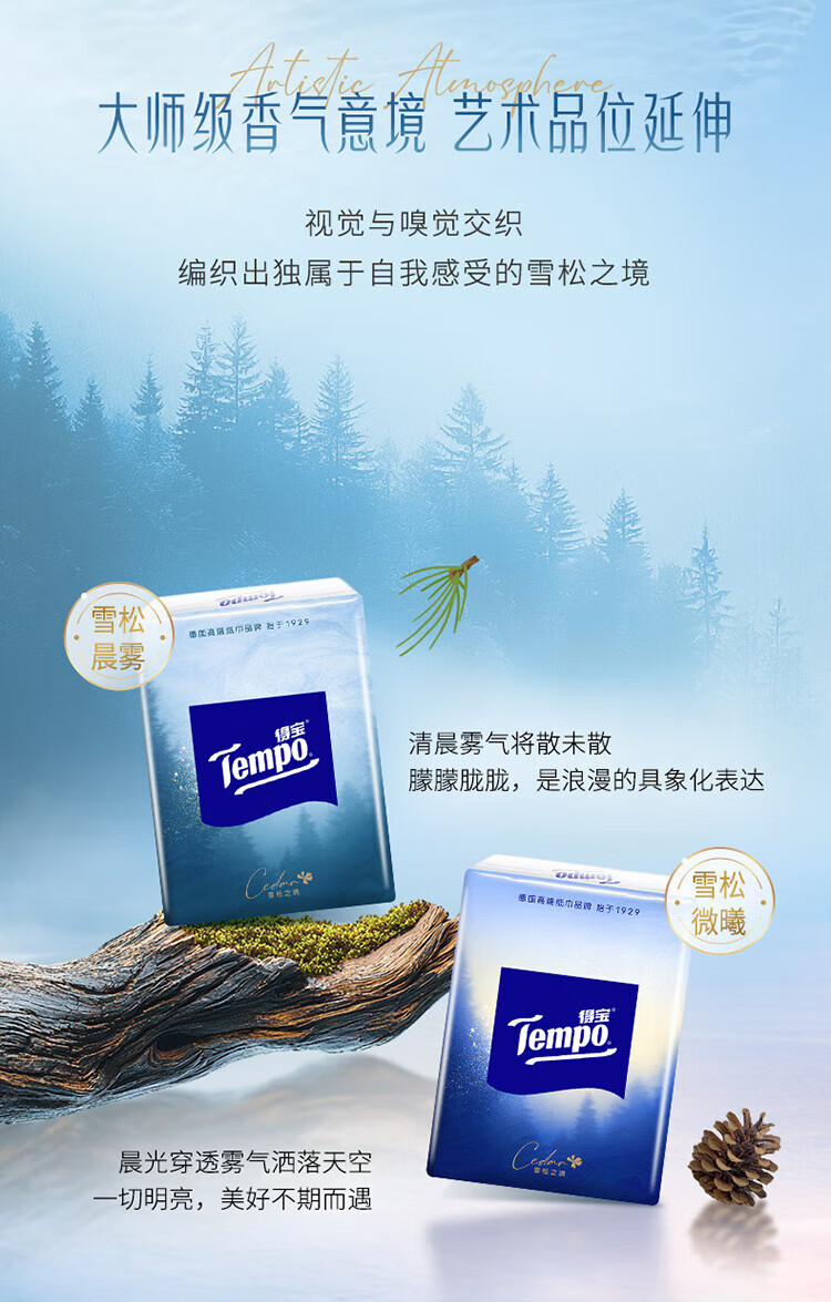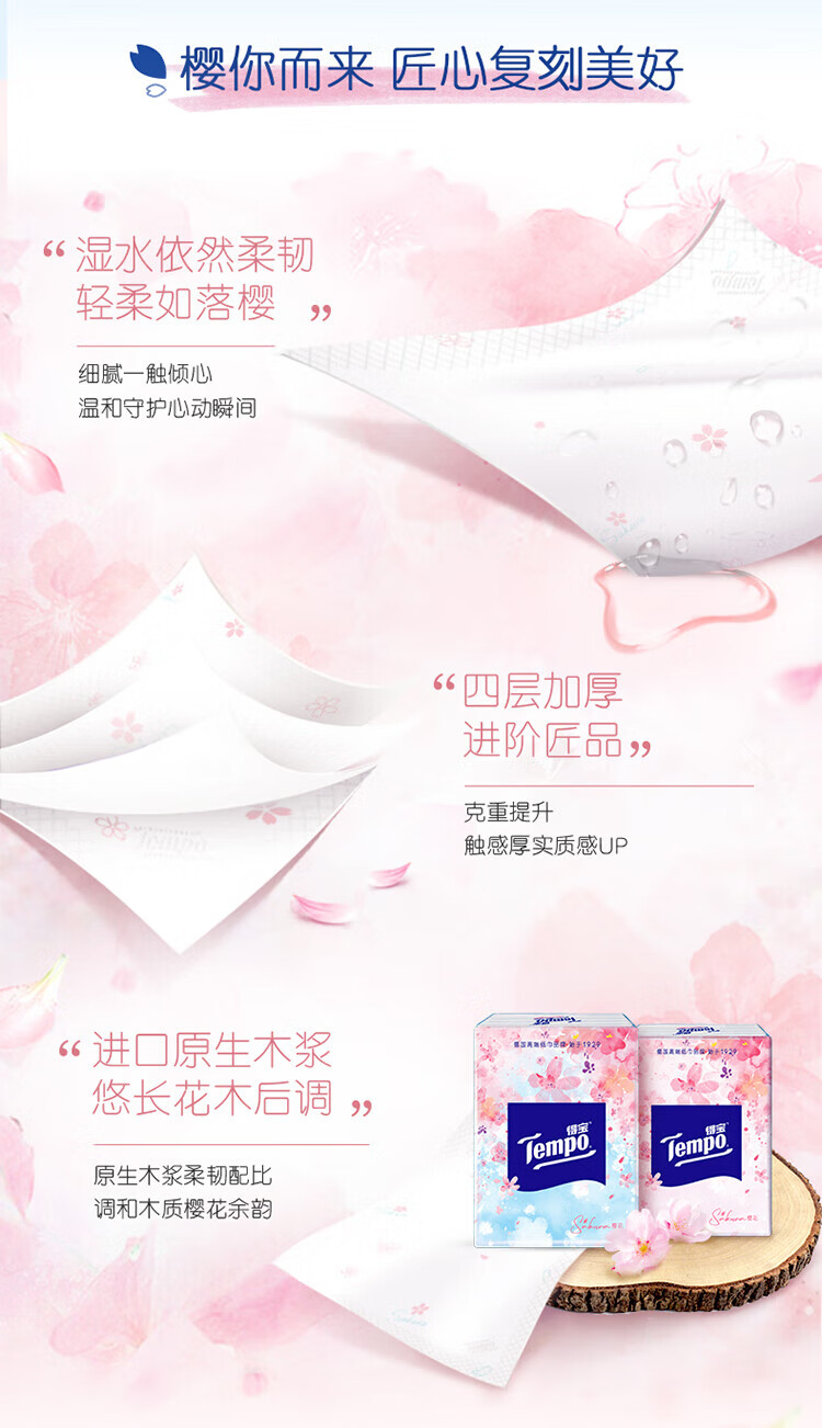 Depot Tempo Depot handkerchief paper mini portable paper towel hand towel four-layer thickened napkin paper cedar scented printed handkerchief paper 4 layers 7 sheets * 12 pack